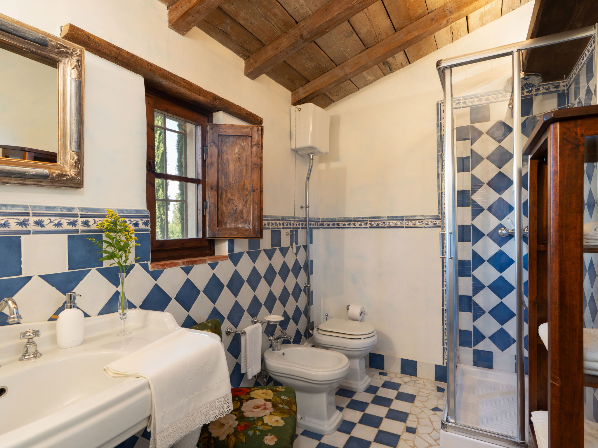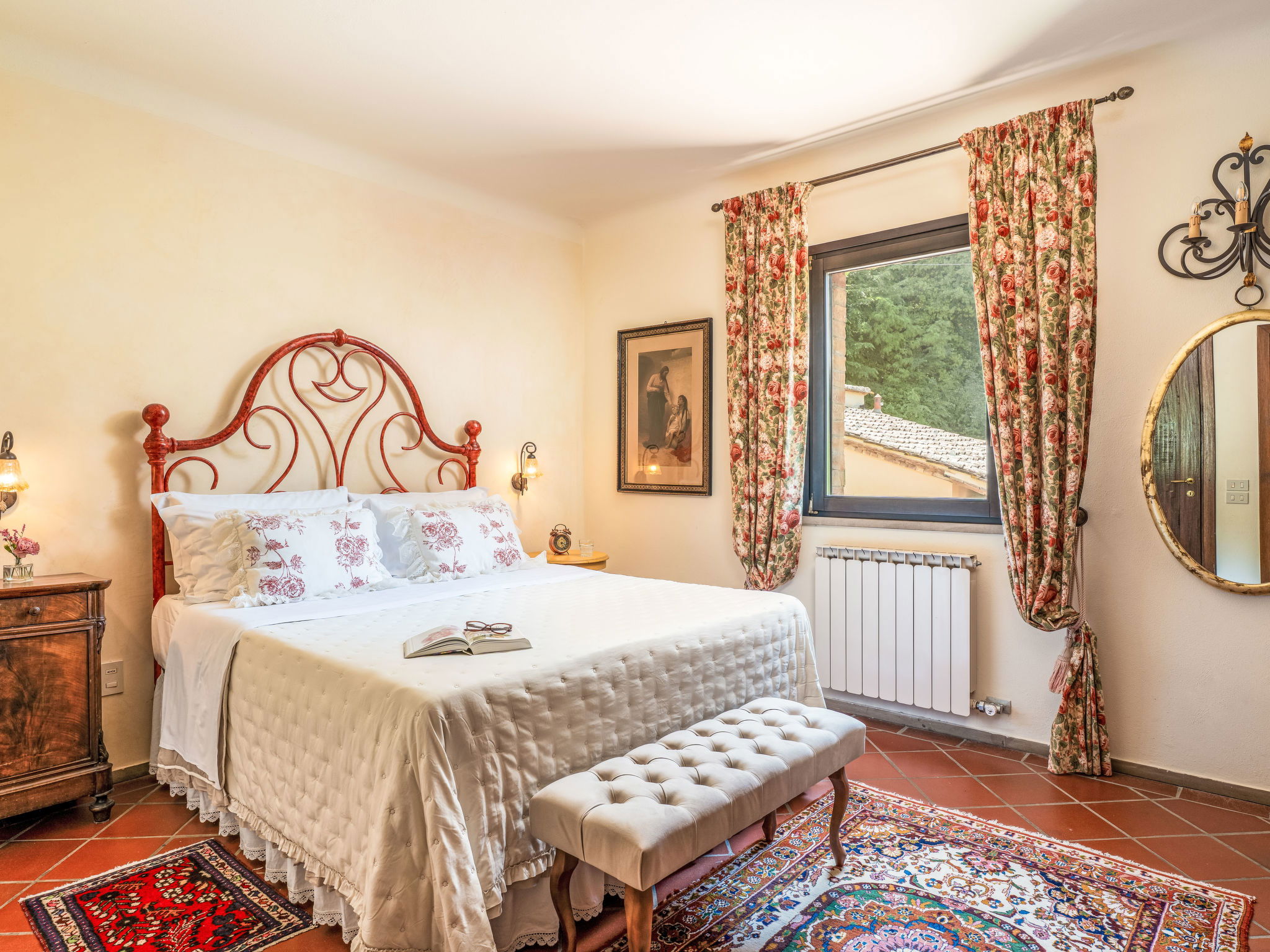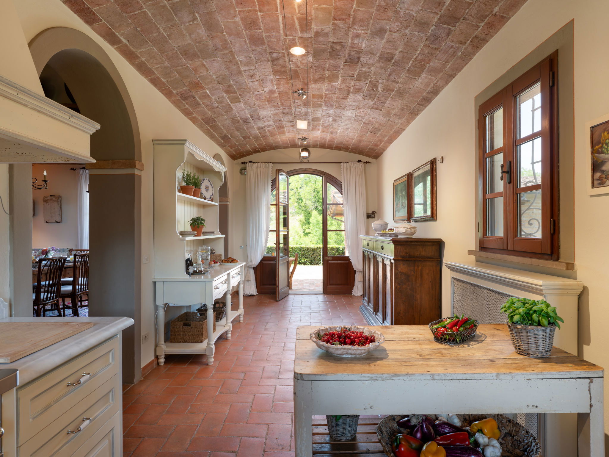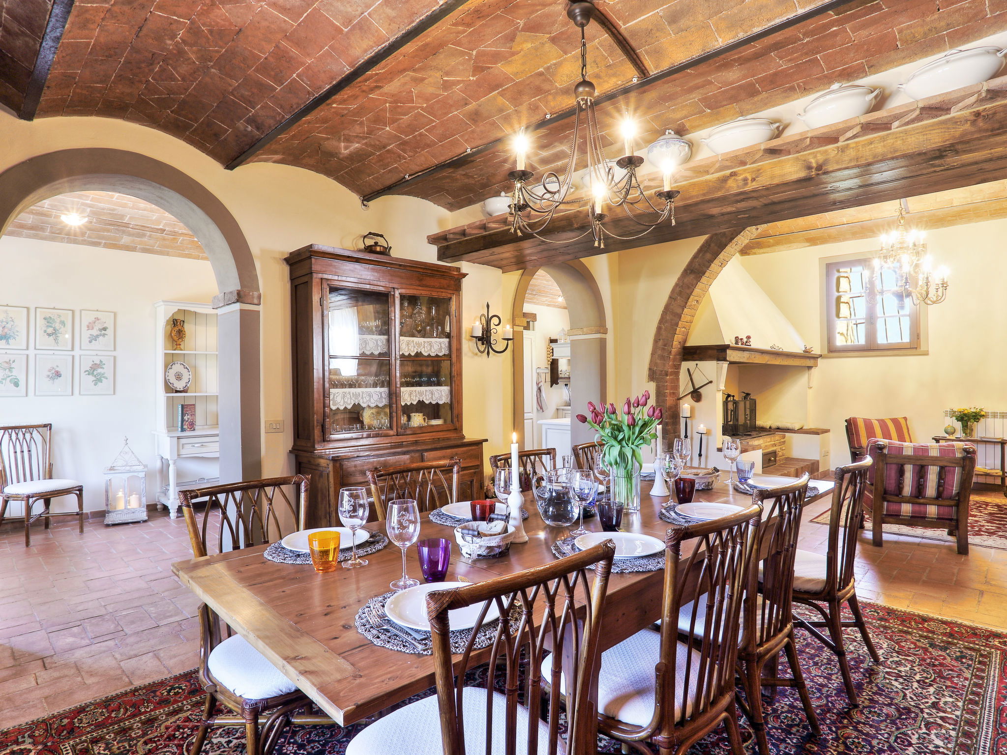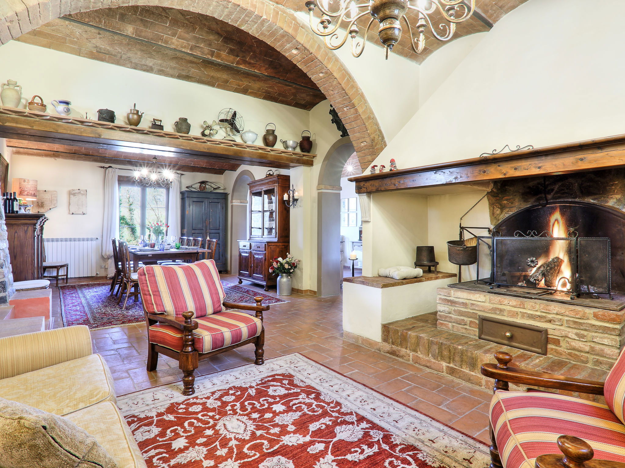 Very beautiful, comfortable villa "Fonte di Pillo", surrounded by fields and vineyards. Property composed of main house and outbuilding 4 km from the centre of Gambassi Terme, 4 km from the centre of Castelfiorentino, 20 km from the centre of San Gimignano, in a quiet position. Private: property 60'000 m2, well-kept garden (not fenced) with lawn and trees, swimming pool (12 x 6 m, depth 150 cm, seasonal availability: 01.May. - 18.Oct.). Outdoor shower, terrace, garden furniture, barbecue, pool maintenance by the owner/gardener. In the house: air conditioning, burglar alarm system. 200 m long motor access (via unmade road). Roofed, parking on the premises. E-charging station. Supermarket 4 km, bus stop 300 m, railway station "Castelfiorentino" 6 km. Golf course (18 hole) 15 km. Nearby attractions: Volterra 30 km, Firenze 40 km, Pisa 60 km, Livorno 70 km. Please note: baby equipment (included). Groups of teenagers on request only.