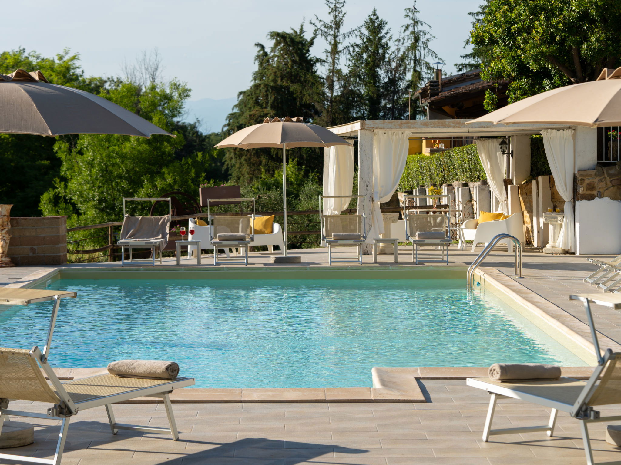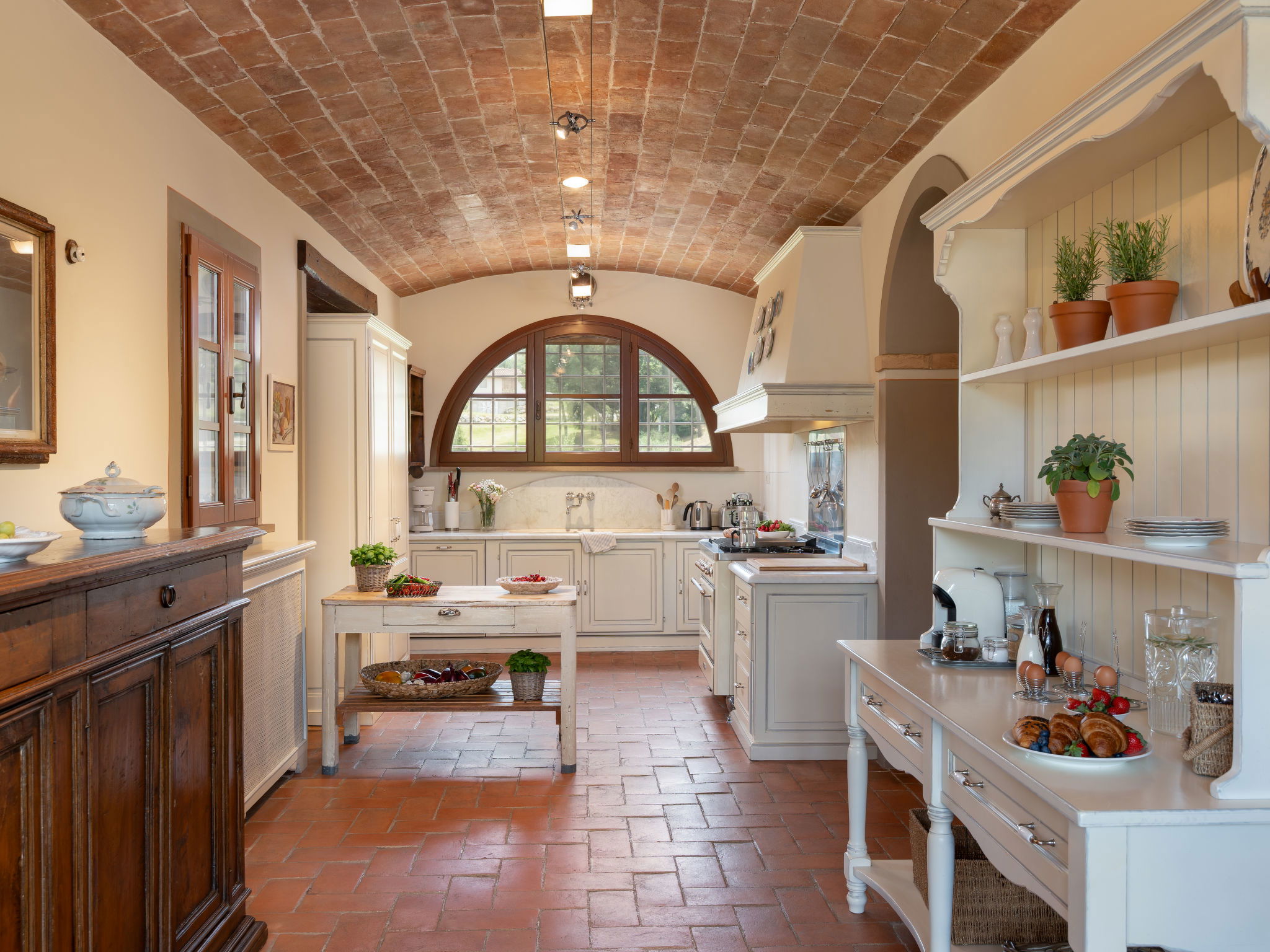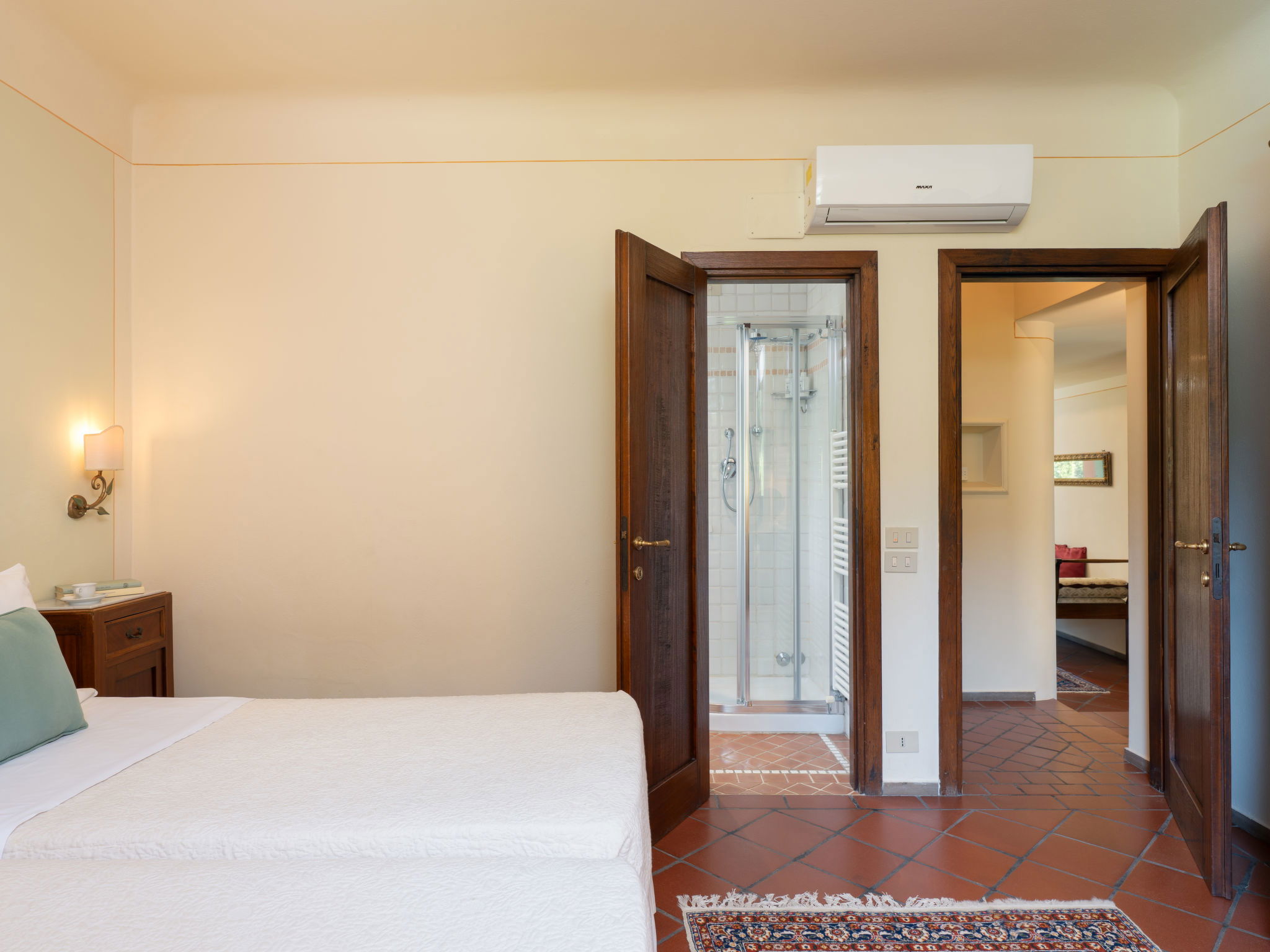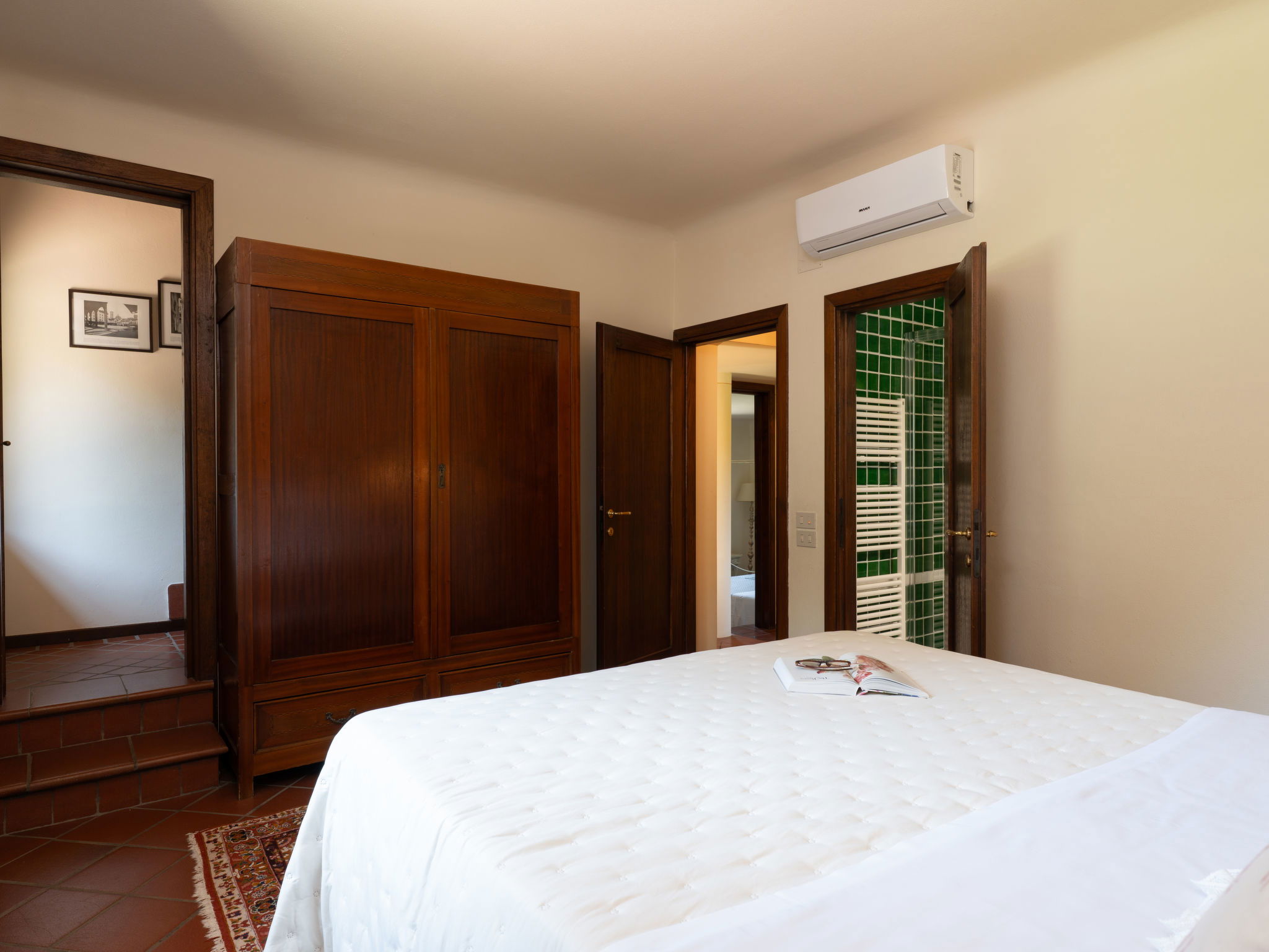 Very beautiful, comfortable villa "Fonte di Pillo", surrounded by fields and vineyards. Property composed of main house and outbuilding 4 km from the centre of Gambassi Terme, 4 km from the centre of Castelfiorentino, 20 km from the centre of San Gimignano, in a quiet position. Private: property 60'000 m2, well-kept garden (not fenced) with lawn and trees, swimming pool (12 x 6 m, depth 150 cm, seasonal availability: 01.May. - 18.Oct.). Outdoor shower, terrace, garden furniture, barbecue, pool maintenance by the owner/gardener. In the house: air conditioning, burglar alarm system. 200 m long motor access (via unmade road). Roofed, parking on the premises. E-charging station. Supermarket 4 km, bus stop 300 m, railway station "Castelfiorentino" 6 km. Golf course (18 hole) 15 km. Nearby attractions: Volterra 30 km, Firenze 40 km, Pisa 60 km, Livorno 70 km. Please note: baby equipment (included). Groups of teenagers on request only.