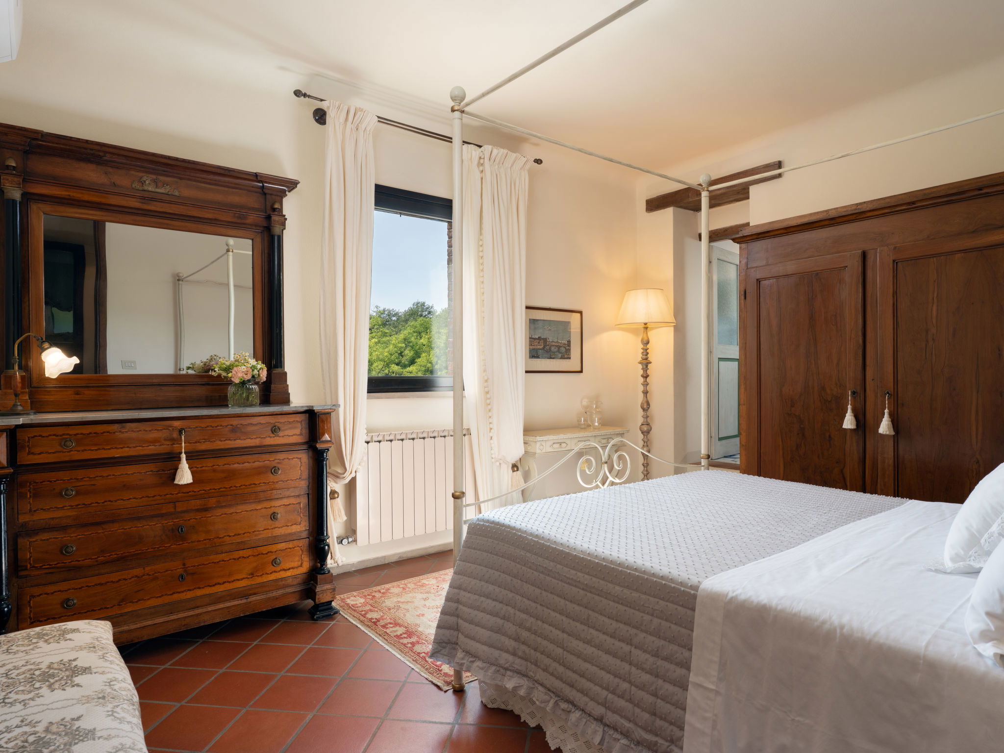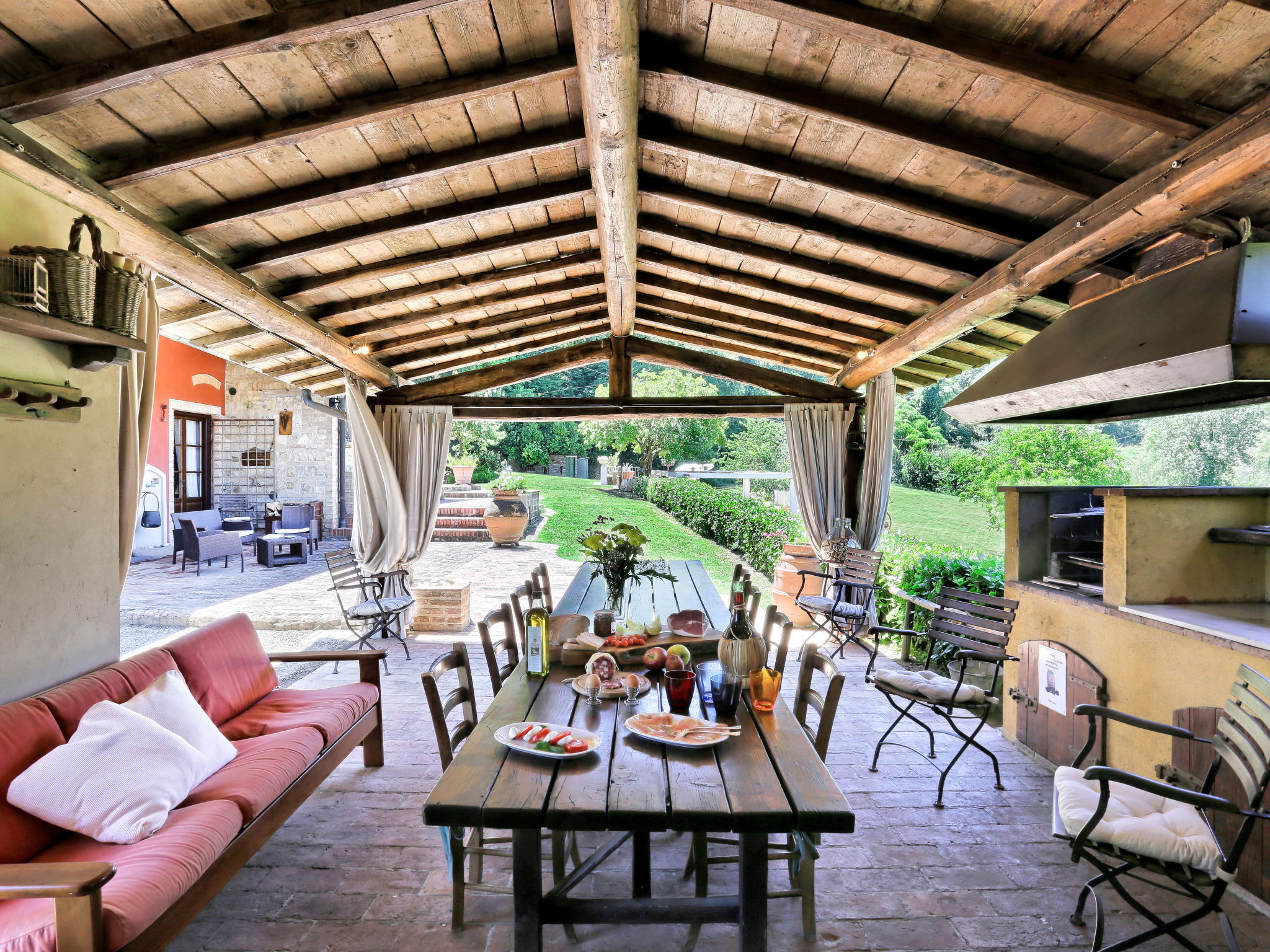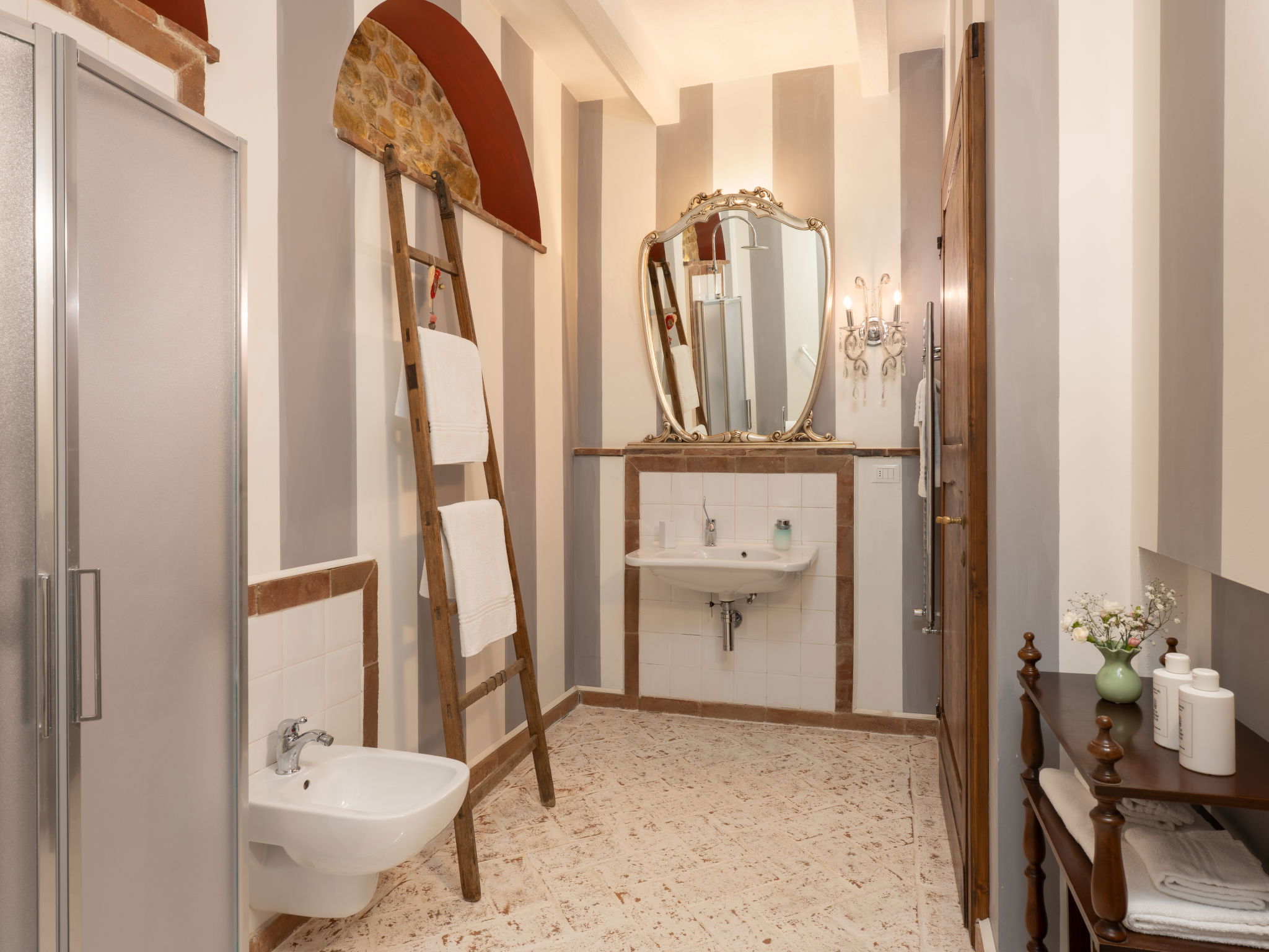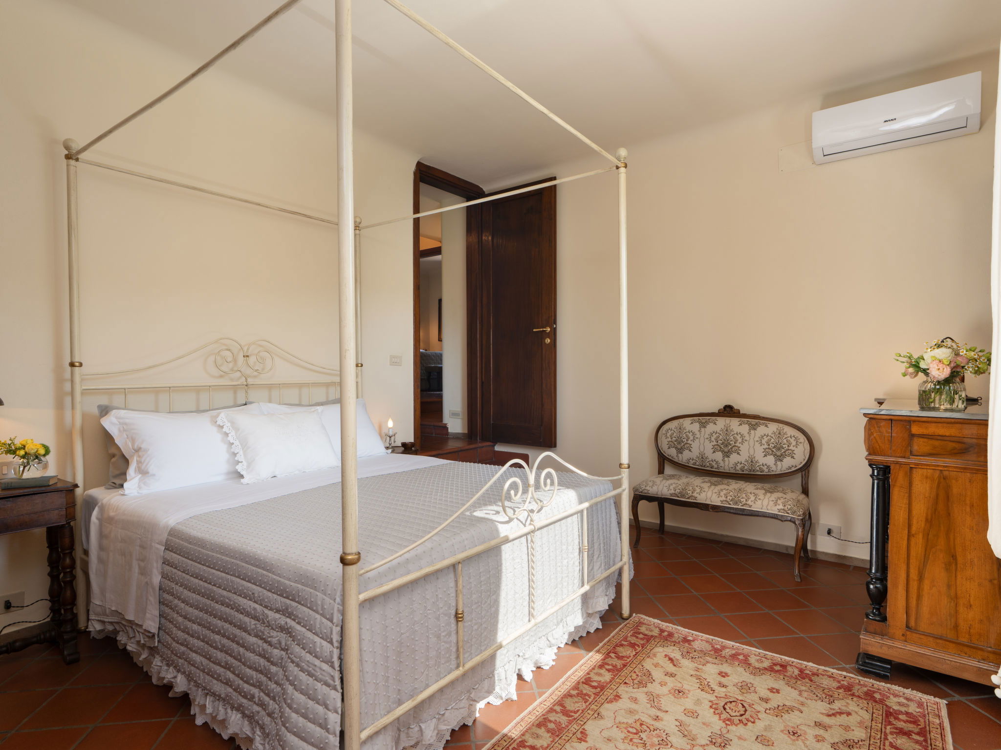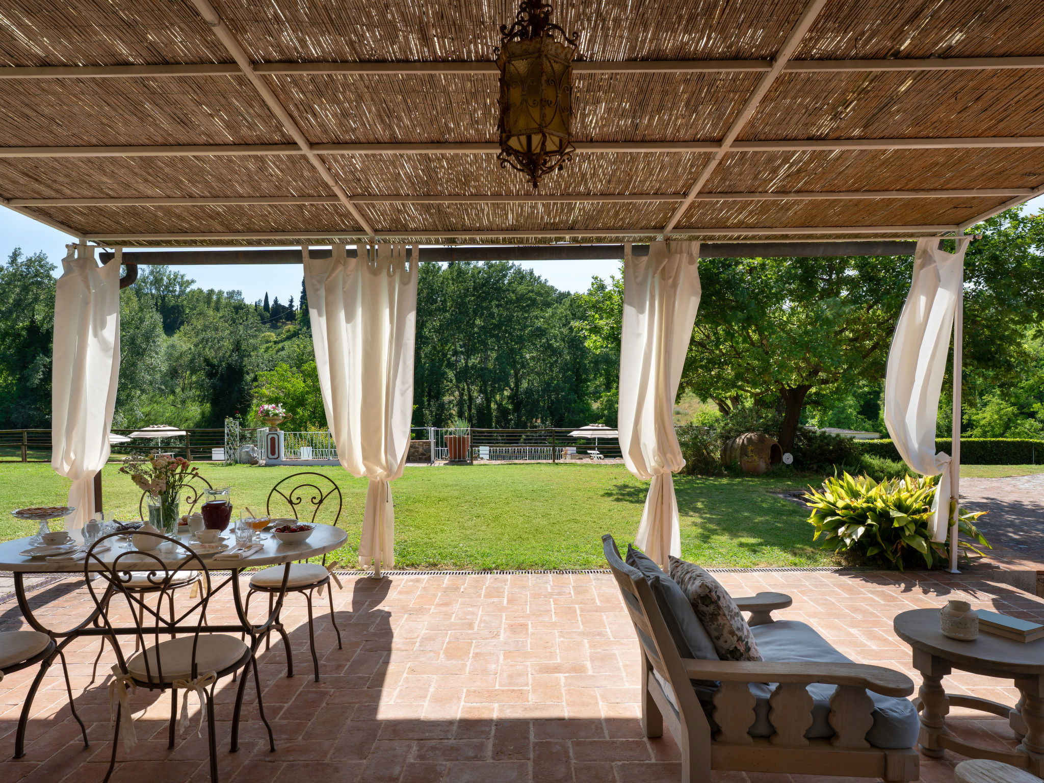 Very beautiful, comfortable villa "Fonte di Pillo", surrounded by fields and vineyards. Property composed of main house and outbuilding 4 km from the centre of Gambassi Terme, 4 km from the centre of Castelfiorentino, 20 km from the centre of San Gimignano, in a quiet position. Private: property 60'000 m2, well-kept garden (not fenced) with lawn and trees, swimming pool (12 x 6 m, depth 150 cm, seasonal availability: 01.May. - 18.Oct.). Outdoor shower, terrace, garden furniture, barbecue, pool maintenance by the owner/gardener. In the house: air conditioning, burglar alarm system. 200 m long motor access (via unmade road). Roofed, parking on the premises. E-charging station. Supermarket 4 km, bus stop 300 m, railway station "Castelfiorentino" 6 km. Golf course (18 hole) 15 km. Nearby attractions: Volterra 30 km, Firenze 40 km, Pisa 60 km, Livorno 70 km. Please note: baby equipment (included). Groups of teenagers on request only.