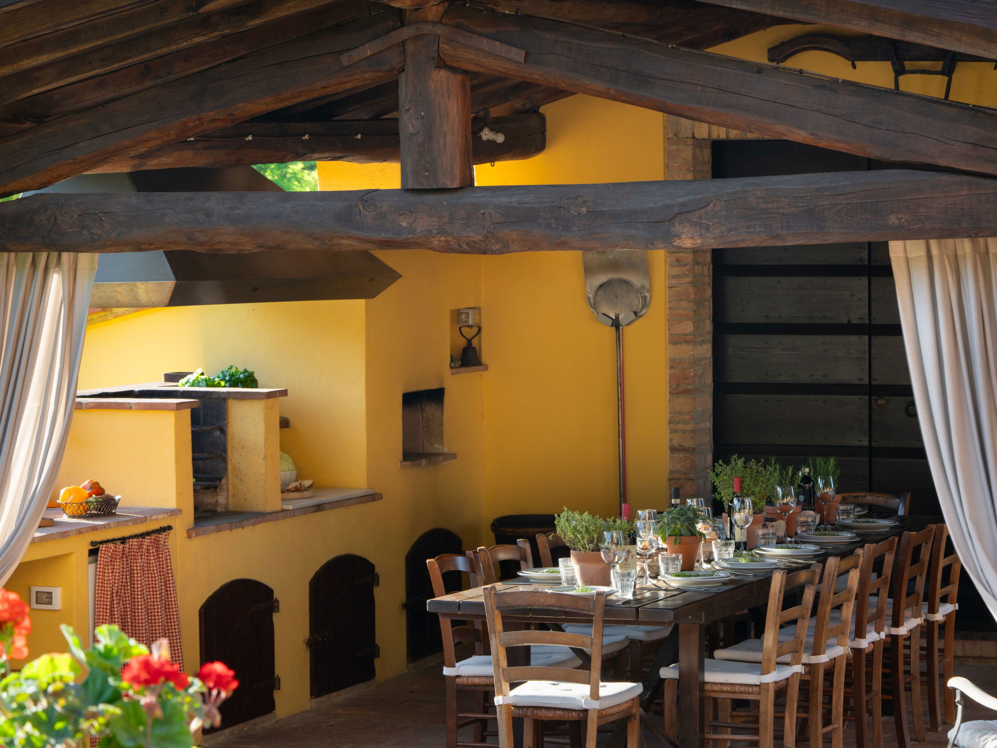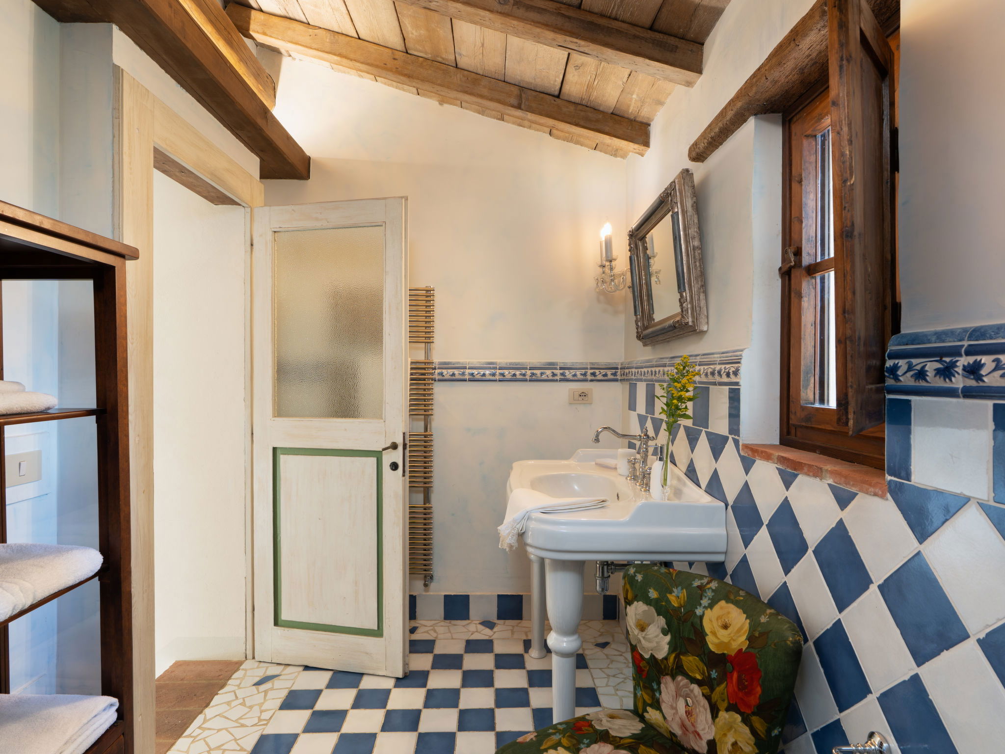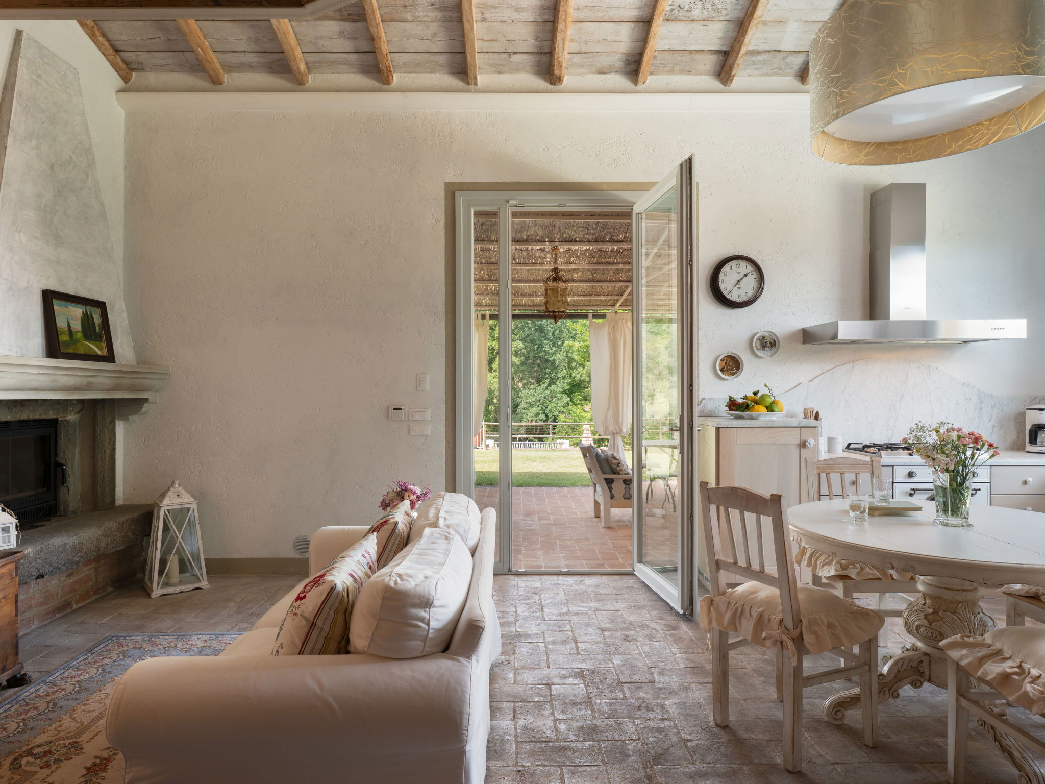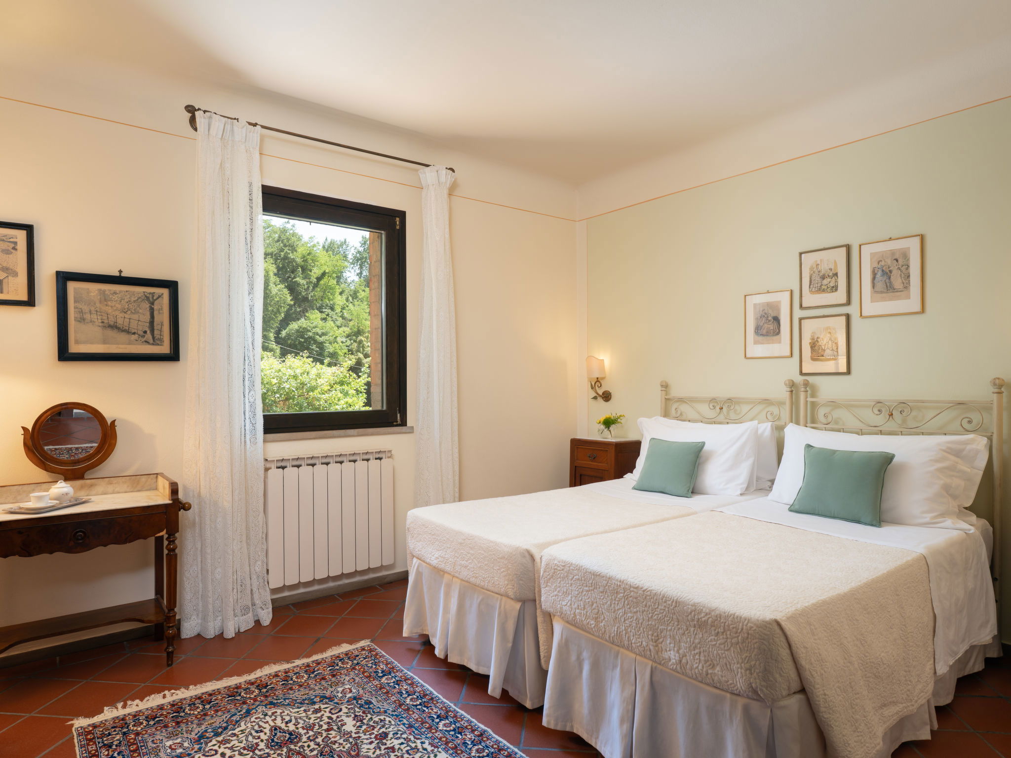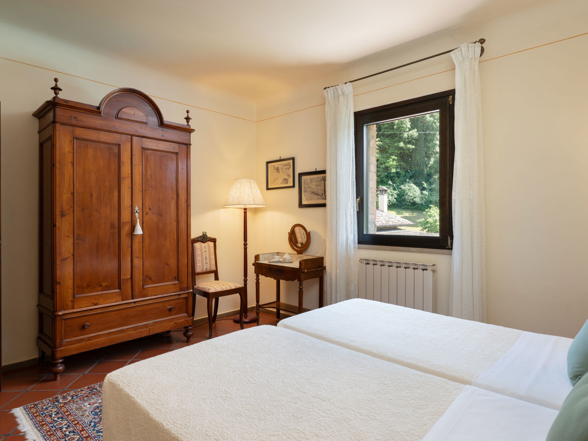 Very beautiful, comfortable villa "Fonte di Pillo", surrounded by fields and vineyards. Property composed of main house and outbuilding 4 km from the centre of Gambassi Terme, 4 km from the centre of Castelfiorentino, 20 km from the centre of San Gimignano, in a quiet position. Private: property 60'000 m2, well-kept garden (not fenced) with lawn and trees, swimming pool (12 x 6 m, depth 150 cm, seasonal availability: 01.May. - 18.Oct.). Outdoor shower, terrace, garden furniture, barbecue, pool maintenance by the owner/gardener. In the house: air conditioning, burglar alarm system. 200 m long motor access (via unmade road). Roofed, parking on the premises. E-charging station. Supermarket 4 km, bus stop 300 m, railway station "Castelfiorentino" 6 km. Golf course (18 hole) 15 km. Nearby attractions: Volterra 30 km, Firenze 40 km, Pisa 60 km, Livorno 70 km. Please note: baby equipment (included). Groups of teenagers on request only.