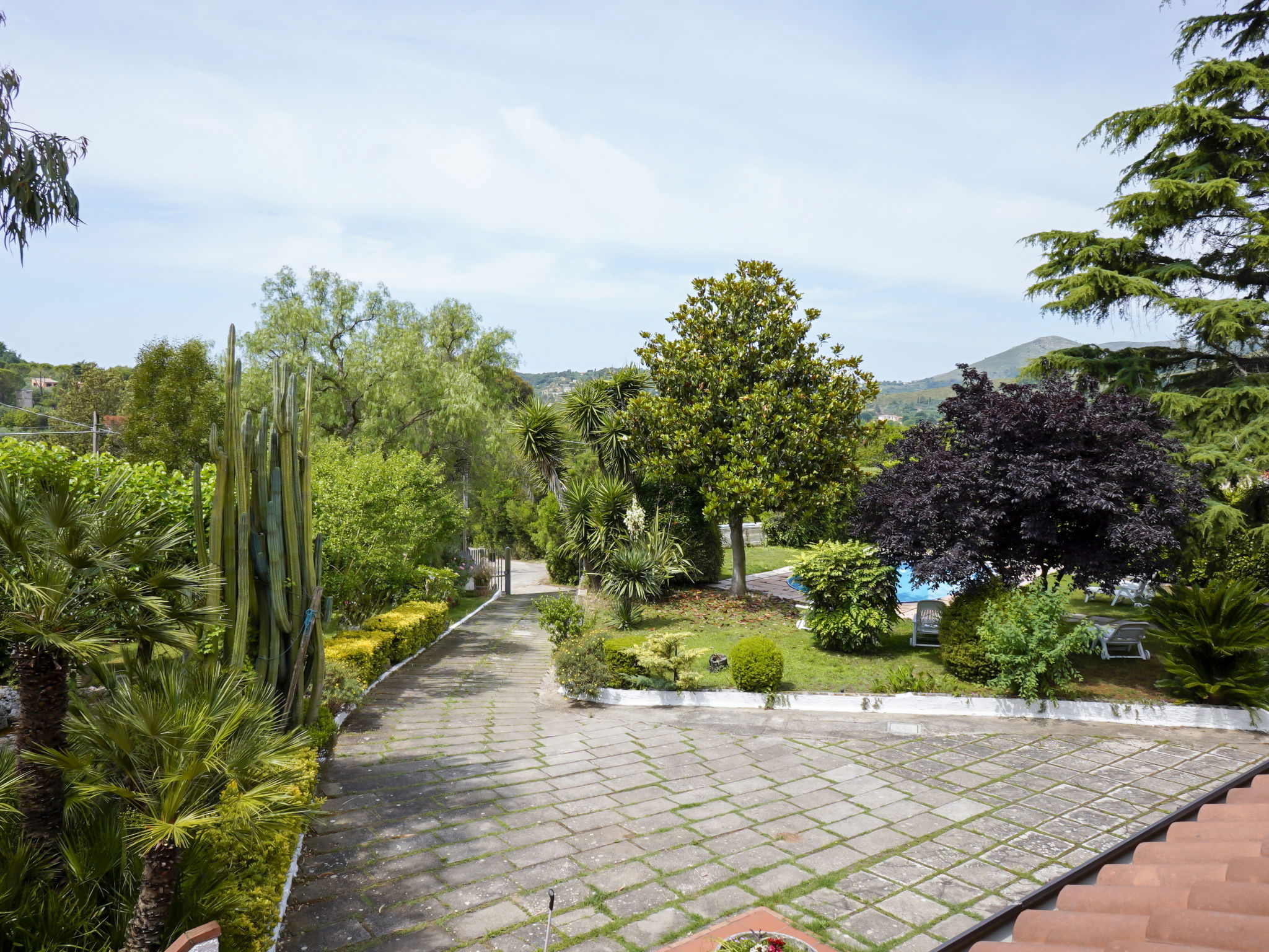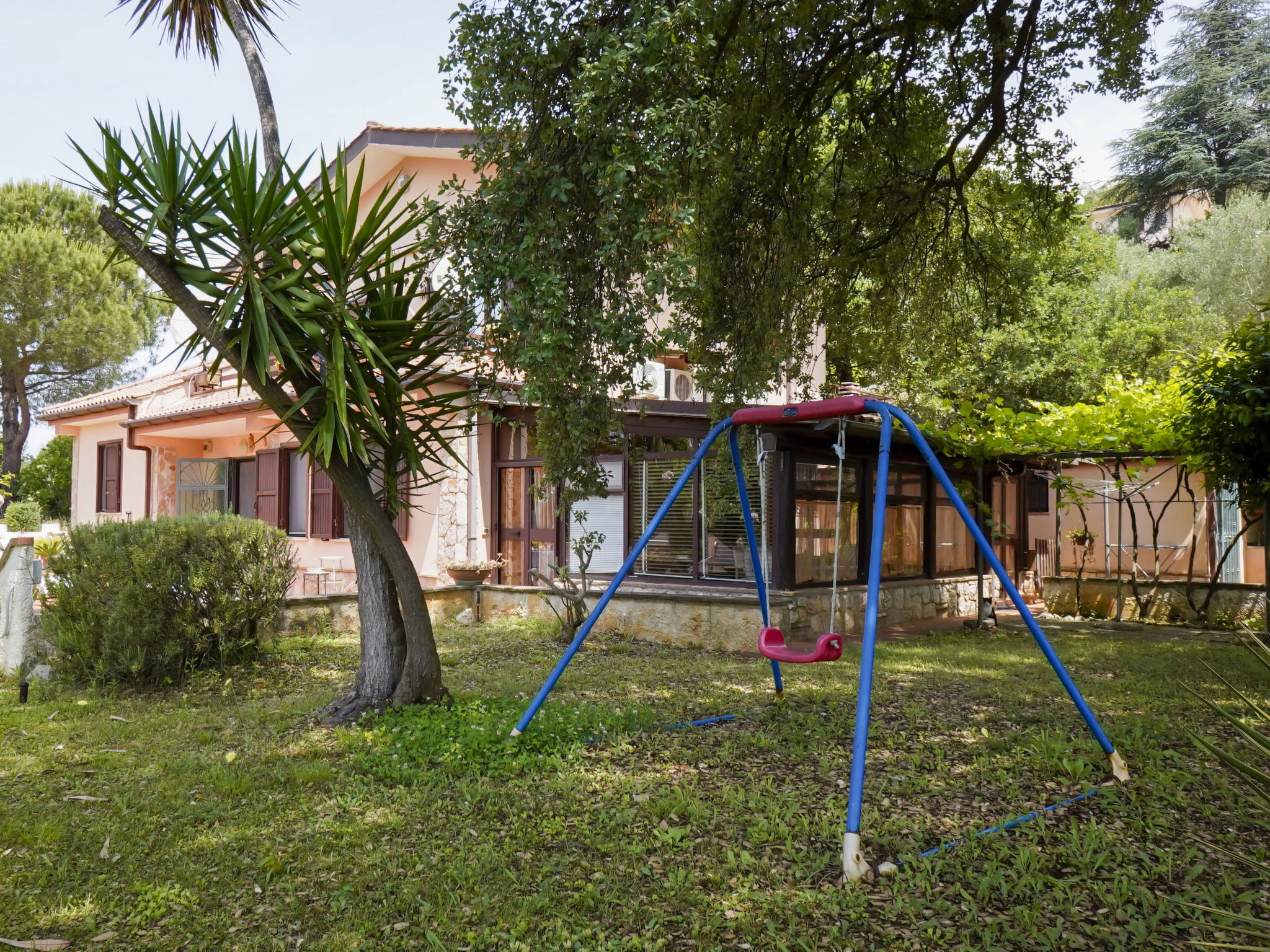 Comfortable villa "Sunny", 2 storeys, surrounded by trees. 5 km from the centre of Itri, in a quiet, sunny, elevated position, 9 km from the sea, 9 km from the beach. Private: property 2'500 m2 (fenced), park 1'200 m2 (fenced), beautiful, well-kept garden with wildlife garden and flowers, swimming pool kidney shaped (8 x 4 m, depth 150 cm, seasonal availability: 01.Jun. - 30.Sep.). Outdoor shower, garden furniture, barbecue, barbecue house, parking on the premises. Shop 5 km, grocery 5 km, supermarket 5 km, restaurant 5 km, bus stop 5 km, railway station "Itri" 5 km, indoor swimming pool 15 km. Nearby attractions: Formia 15 km, Gaeta 18 km, Sperlonga 24 km. Please note: car recommended. Groups of teenagers on request only. Animals in the neighbourhood.
