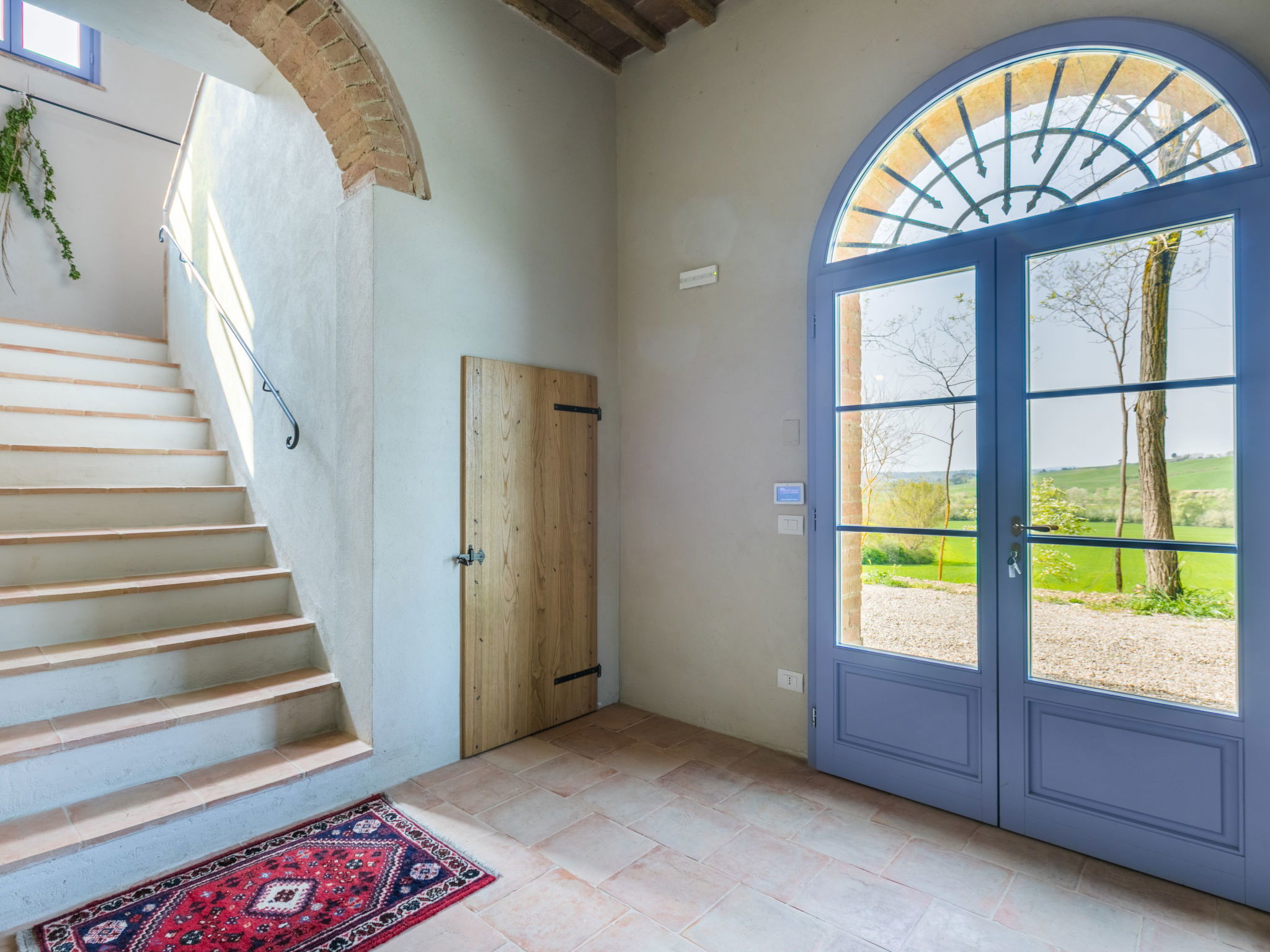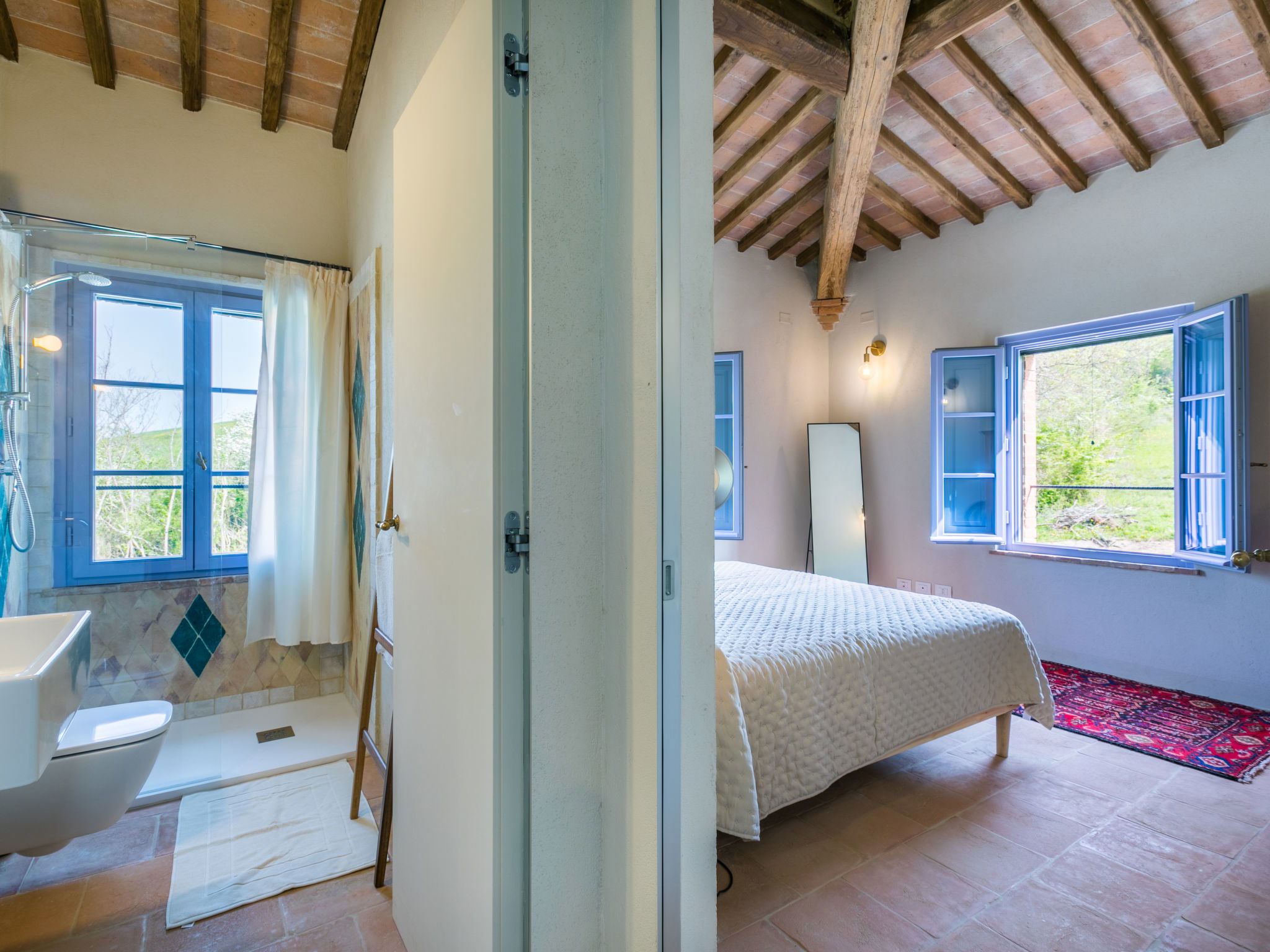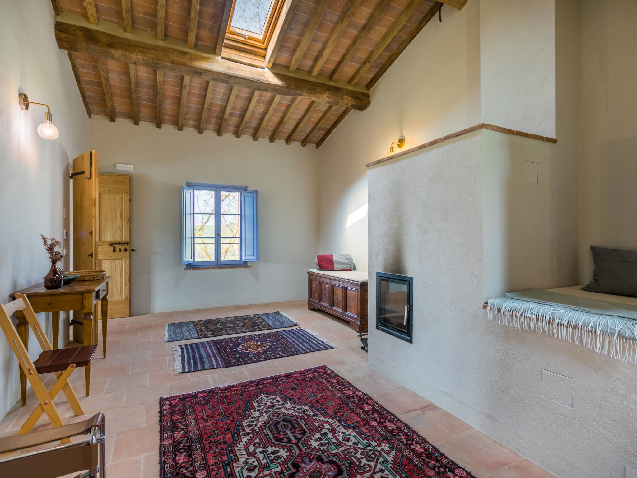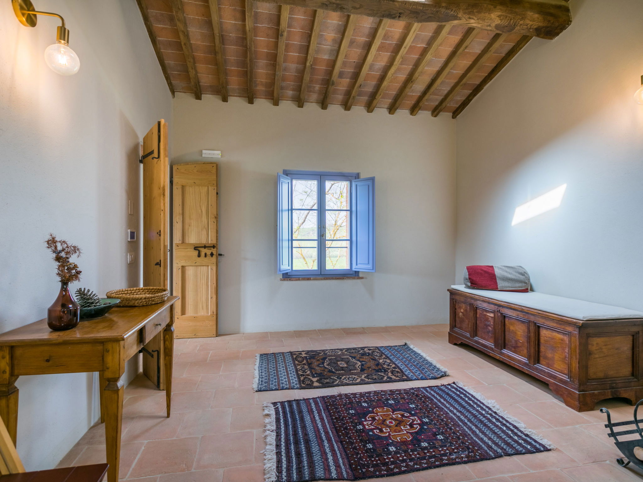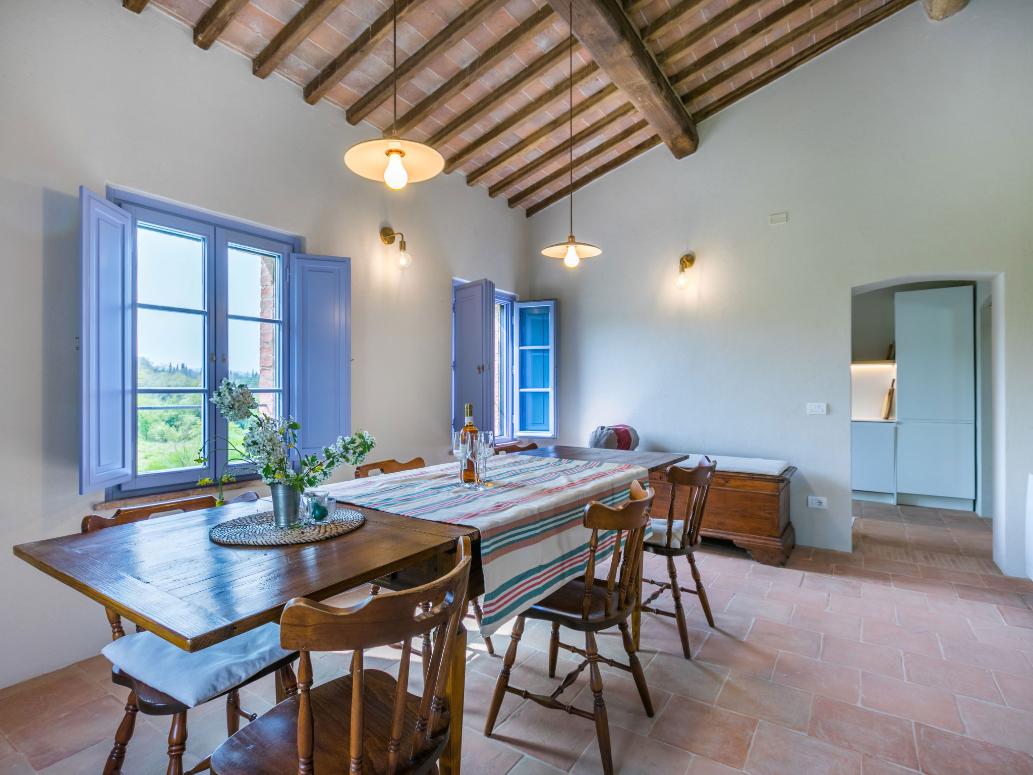 "Podere Vetricella", 6-room villa 200 m2 on 2 levels. Spacious and bright, fully renovated in 2023, very tasteful and stylish furnishings: entrance hall with air conditioning. Living room with air conditioning. Exit to the garden. 1 double bedroom with shower/WC and air conditioning. Upper floor: open living room with open-hearth fireplace and TV (flat screen), air conditioning. Dining room. 2 double bedrooms, each room with air conditioning. 1 room with 2 beds (80 cm), air conditioning. Kitchen (oven, dishwasher, 4 induction hot plates, toaster, kettle, microwave, freezer, electric coffee machine). 2 showers/WC. Natural stone floors. Comfortable furnishings in the country house style. Patio roofed, garden. Terrace furniture, barbecue, deck chairs, covered balcony, box-room. Very beautiful panoramic view of the countryside. Facilities: washing machine, iron, mosquito net, children's high chair, baby cot for up to 2 year olds, hair dryer, logs (extra). Internet (WiFi, free). Parking at the house. Please note: non-smokers only. Maximum 1 pet/ dog allowed. Private entrance. The pool mentioned in the description is for private use. IT052003C2DT335LM2