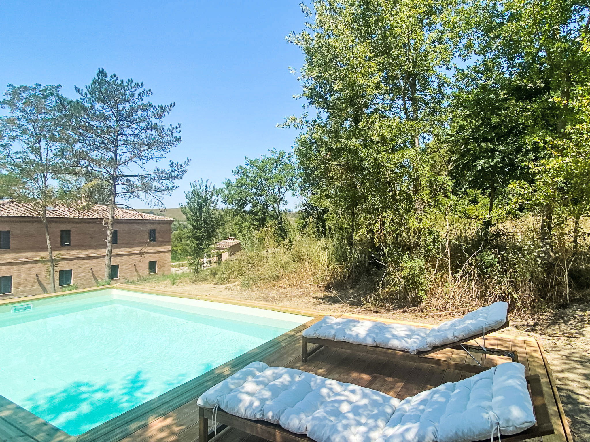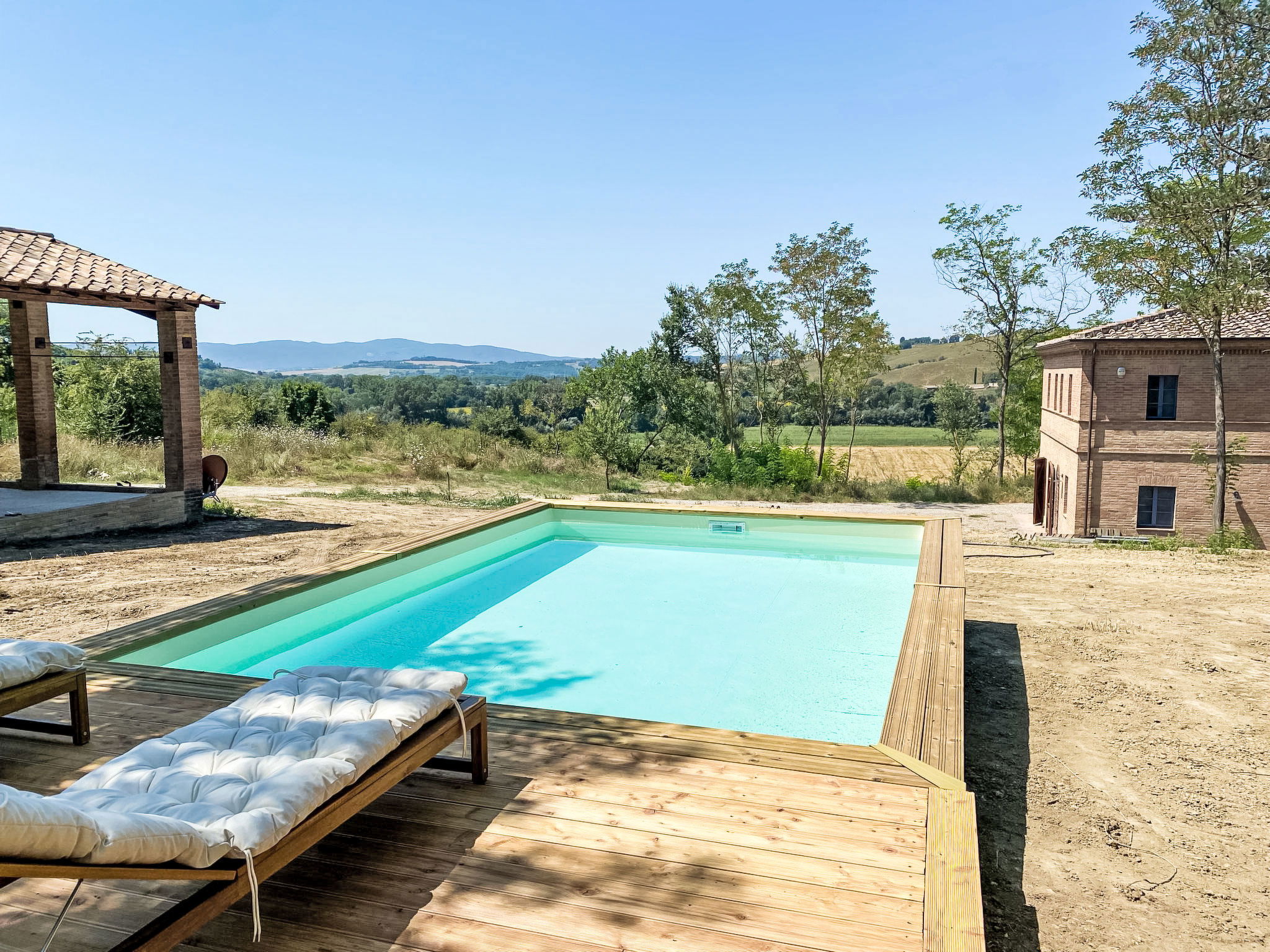 Buonconvento 15 km from Montalcino: Comfortable cottage "Podere Vetricella", detached, renovated in 2023, surrounded by meadows and fields. 4 km from the centre of Buonconvento, in a secluded, sunny position, in the countryside. Private: natural state property, swimming pool (above ground) (3 x 6 m, seasonal availability: 20.May. - 15.Oct.). Patio, terrace, garden furniture, barbecue. 300 m long bumpy motor access to the grounds. Parking at the house. Shop 4 km, grocery 4 km, supermarket 4 km, restaurant 4 km, bakery 4 km, bus stop "Buonconvento" 4 km, railway station "Buonconvento" 4 km, thermal baths "Rapolano T" 24 km. Nearby attractions: Monte Oliveto Maggiore 5 km, Montalcino 15 km, Siena 32 km, Pienza 30 km, Montepulciano 42 km. Please note: car recommended. Baby equipment (included). Groups of teenagers on request only. Owner uses some rooms in the house.