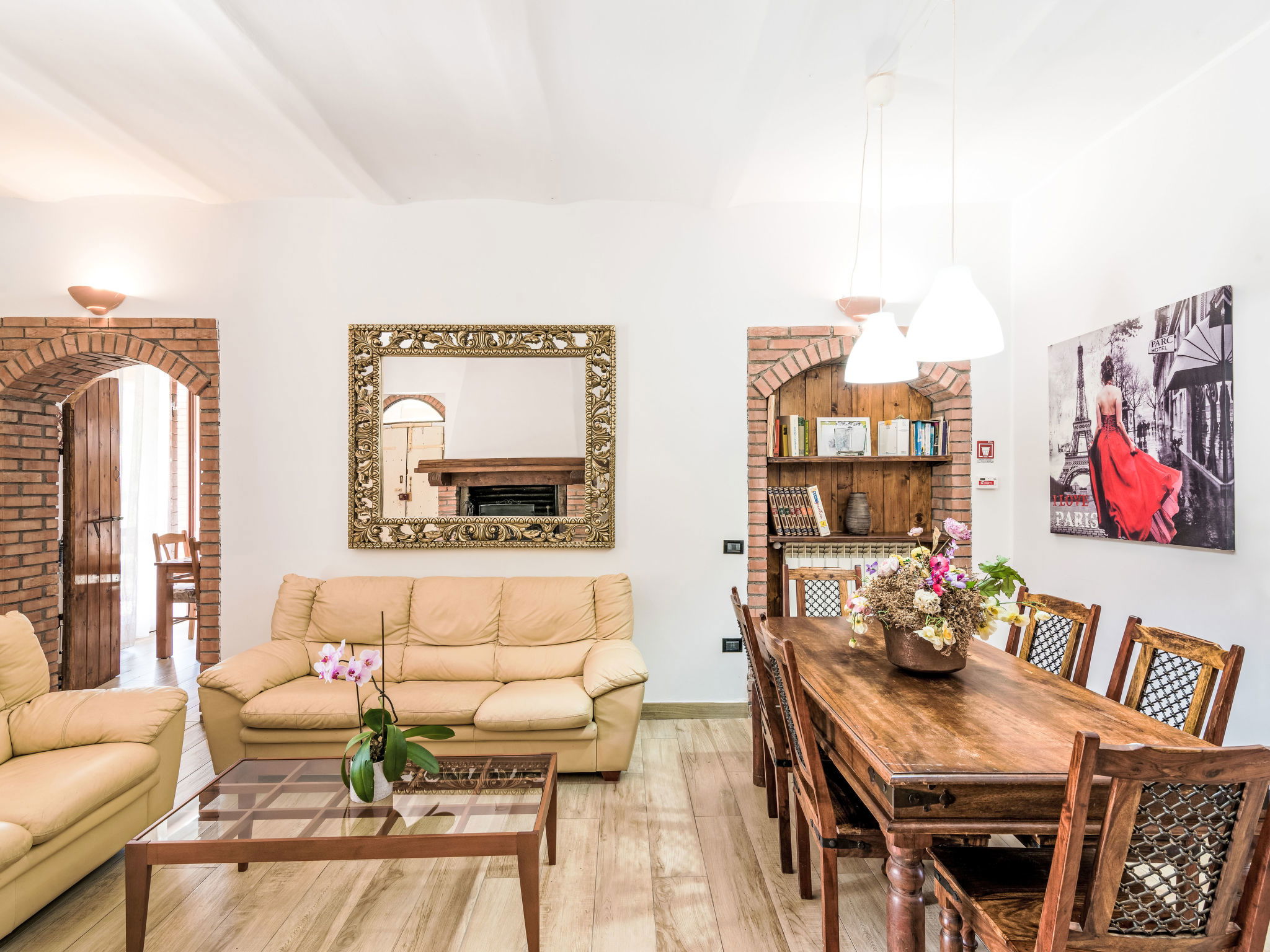 "Casa Domenico 2", 3-room apartment 80 m2. Comfortable and rustic furnishings: living/dining room with 1 double sofabed, open-hearth fireplace, dining table and TV. Exit to the garden, to the veranda. 1 room with 1 double bed. Exit to the garden. 1 room with 1 double bed. Exit to the garden. Open kitchen (dishwasher, 4 gas rings, toaster, freezer, electric coffee machine). Shower/bidet/WC. Gas heating. Terrace roofed, patio, garden. Terrace furniture, deck chairs (2). Very beautiful view of the countryside and the resort. Facilities: mosquito net, baby cot for up to 2 year olds, hair dryer. Internet (WiFi, free). Suitable for families. Maximum 1 pet/ dog allowed. IT056036B5I8WRKDXI