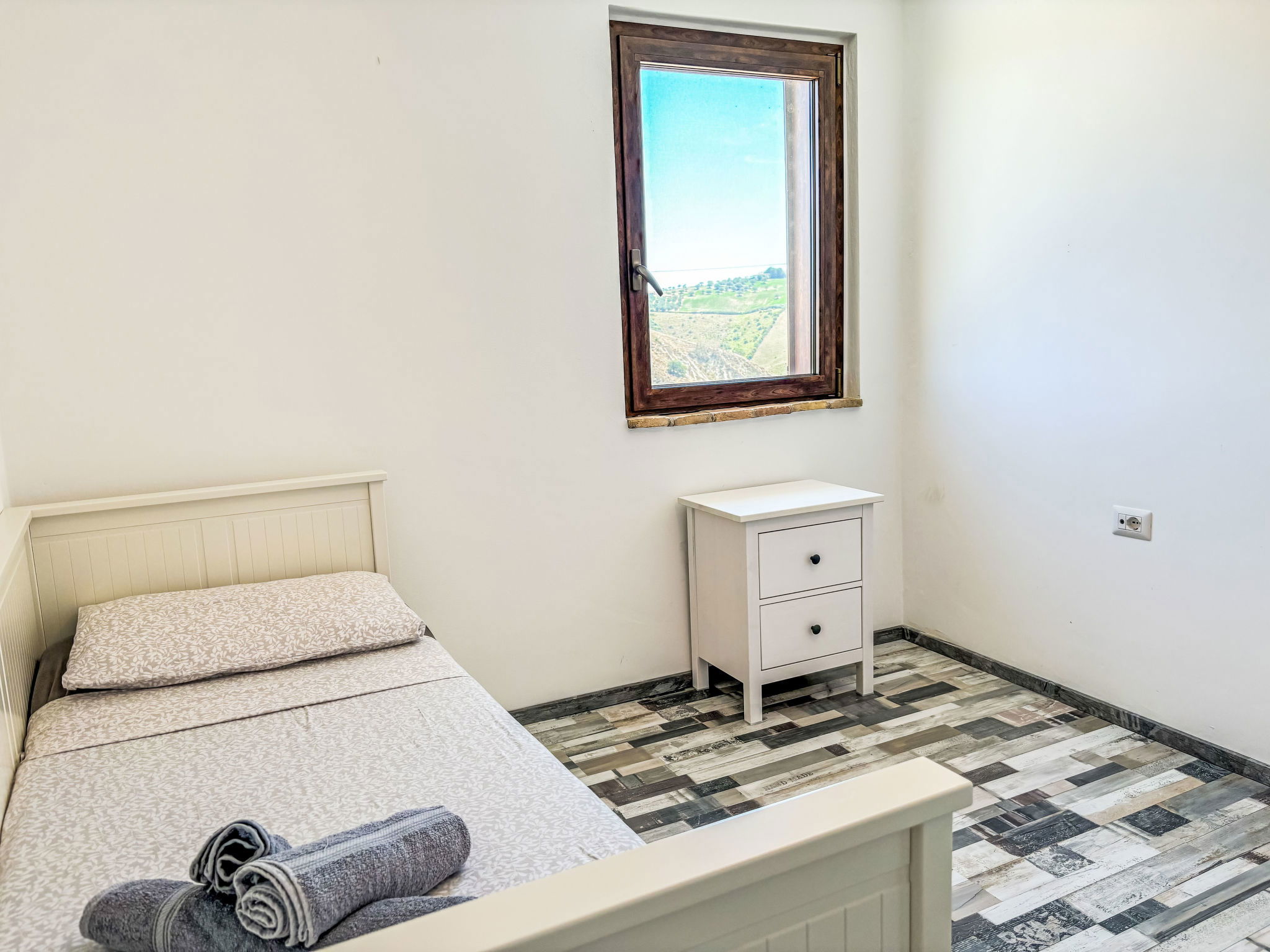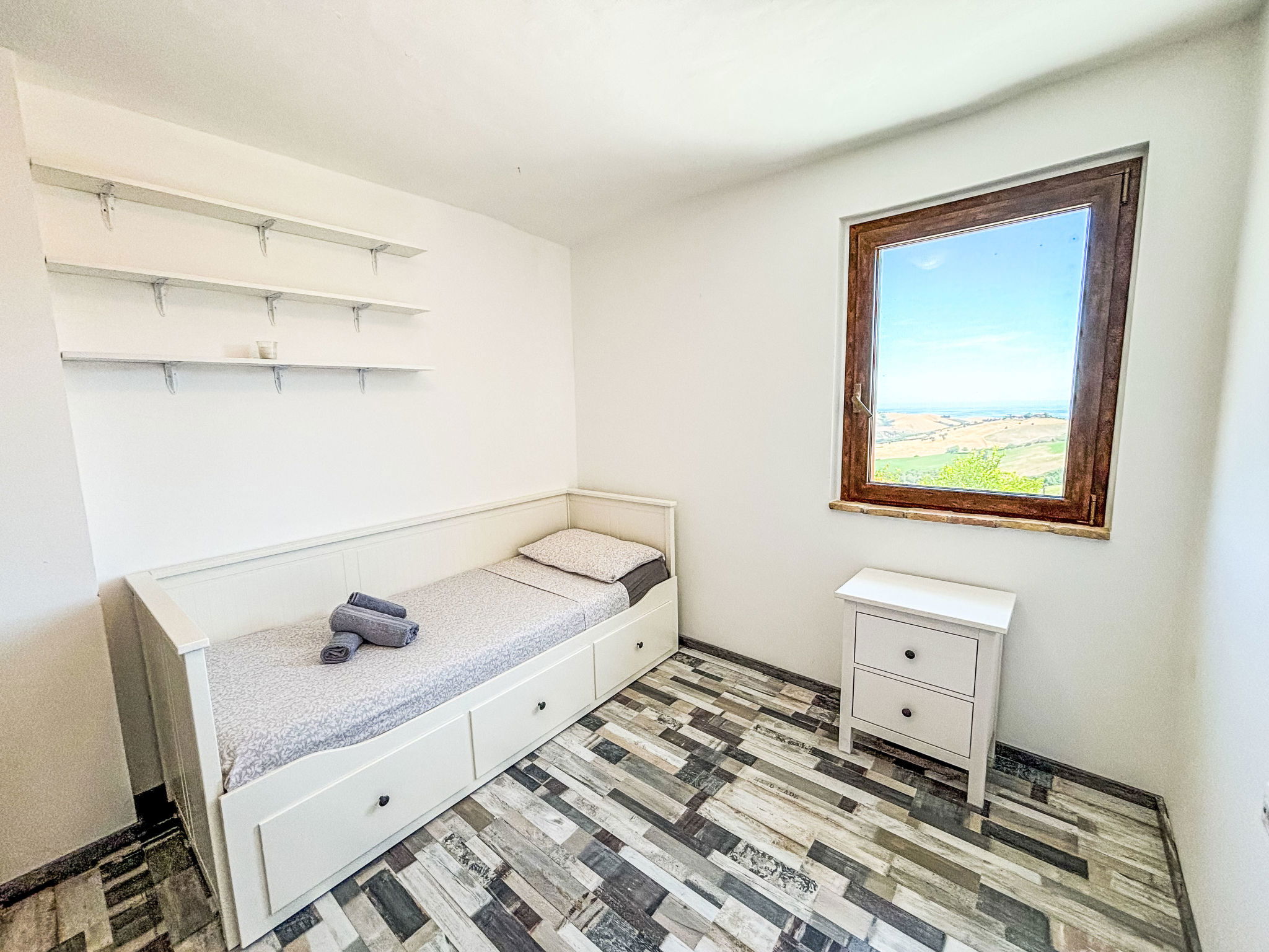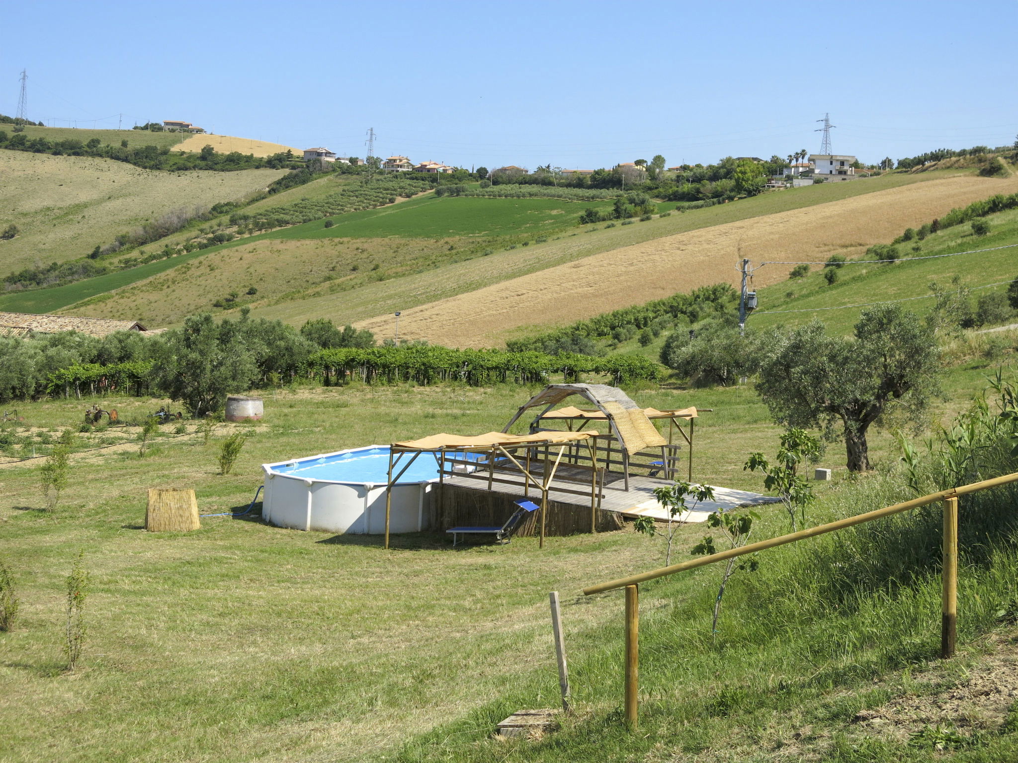 Very beautiful, rustic, comfortable country house "Serrani", renovated in 2018, surrounded by meadows and fields. 2 houses in the residence. 4 apartments in the residence. 8 km from the centre of Roseto degli Abruzzi, 13 km from the centre of Giulianova, 17 km from the centre of Pineto, in a secluded, sunny position on a slope, 6 km from the sea, in the countryside. For shared use: natural state property 5 ha, beautiful terraced garden, 5'000 m2 (not fenced) with plants and trees, orchard, lawn for sunbathing, swimming pool (above ground) (10 x 5 m, depth 130 cm, seasonal availability: 01.Jun. - 28.Sep.). Patio, arbour, pergola, garden furniture, barbecue. In the complex: hot tub (extra). Washing machine (for shared use). 100 m long bumpy motor access to the house. Stepped path to the house. Parking on the premises. Shop 1 km, supermarket 8 km, bus stop 500 m, railway station "Roseto degli Abruzzi" 8 km, sandy beach 6 km. Local sale of farm products. Please note: Additional accommodations can be booked.