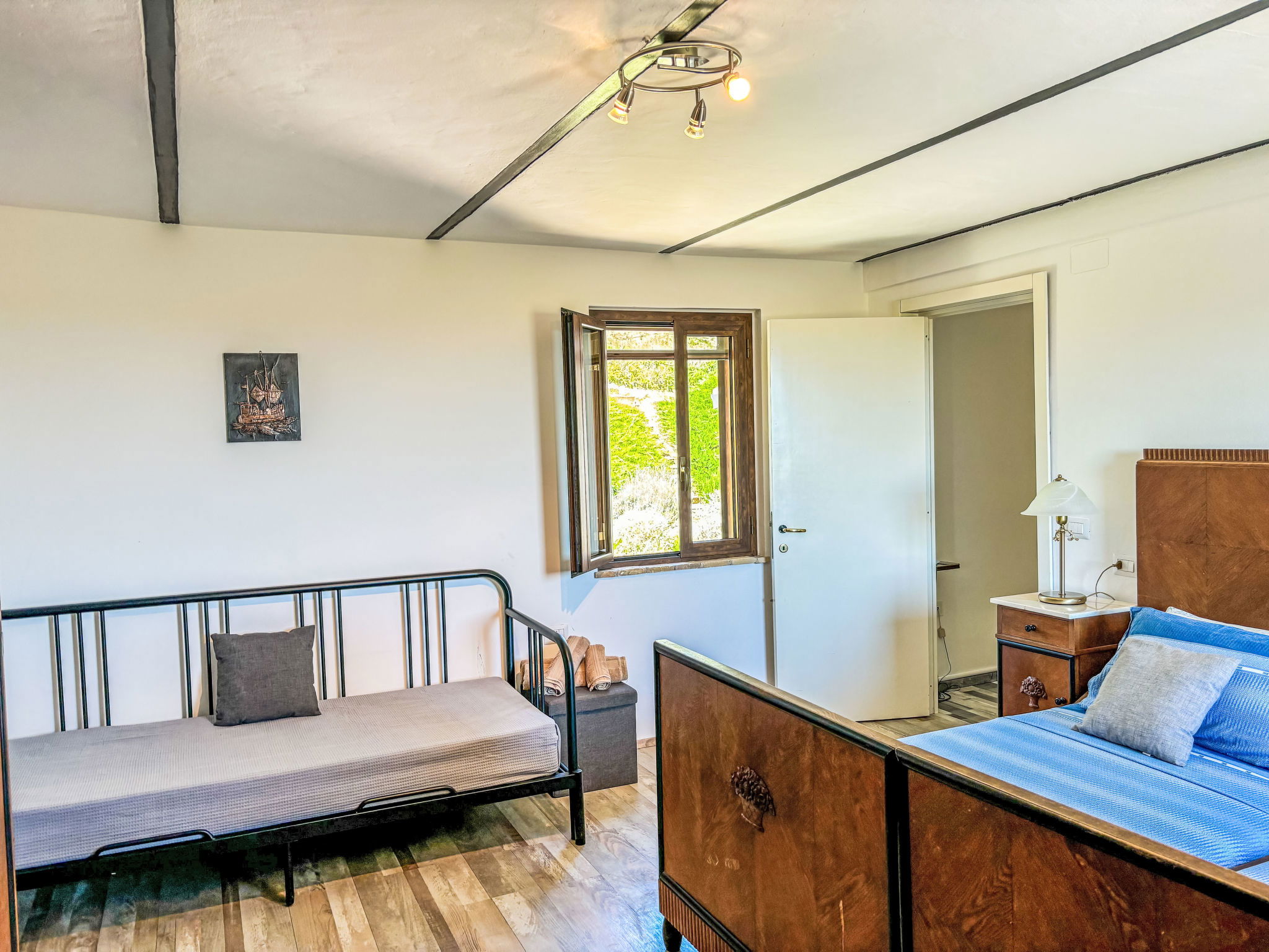 "Extravagante ", 4-room apartment 85 m2 on 1st floor. Bright, beautiful and modern furnishings: living/dining room with dining table, satellite TV and tiled stove. Exit to the terrace. 1 room with 1 french bed (160 cm), electric heating and air conditioning. 1 room with 1 double bed and 1 pull-out bed (2 pers.), electric heating and air conditioning. 1 room with 1 pull-out bed (2 pers.). Open kitchen (oven, dishwasher, 5 gas rings, toaster, freezer, grill, electric coffee machine). 2 showers/WC. Terrace. Terrace furniture. Marvellous panoramic view of the countryside and the ocean. Facilities: mosquito net. Internet (WiFi, free). Please note: non-smokers only. Maximum 1 pet/ dog allowed. IT067037B5QVBYIHQI