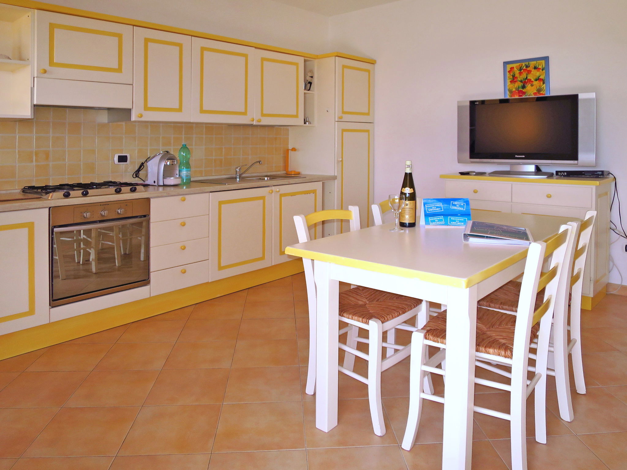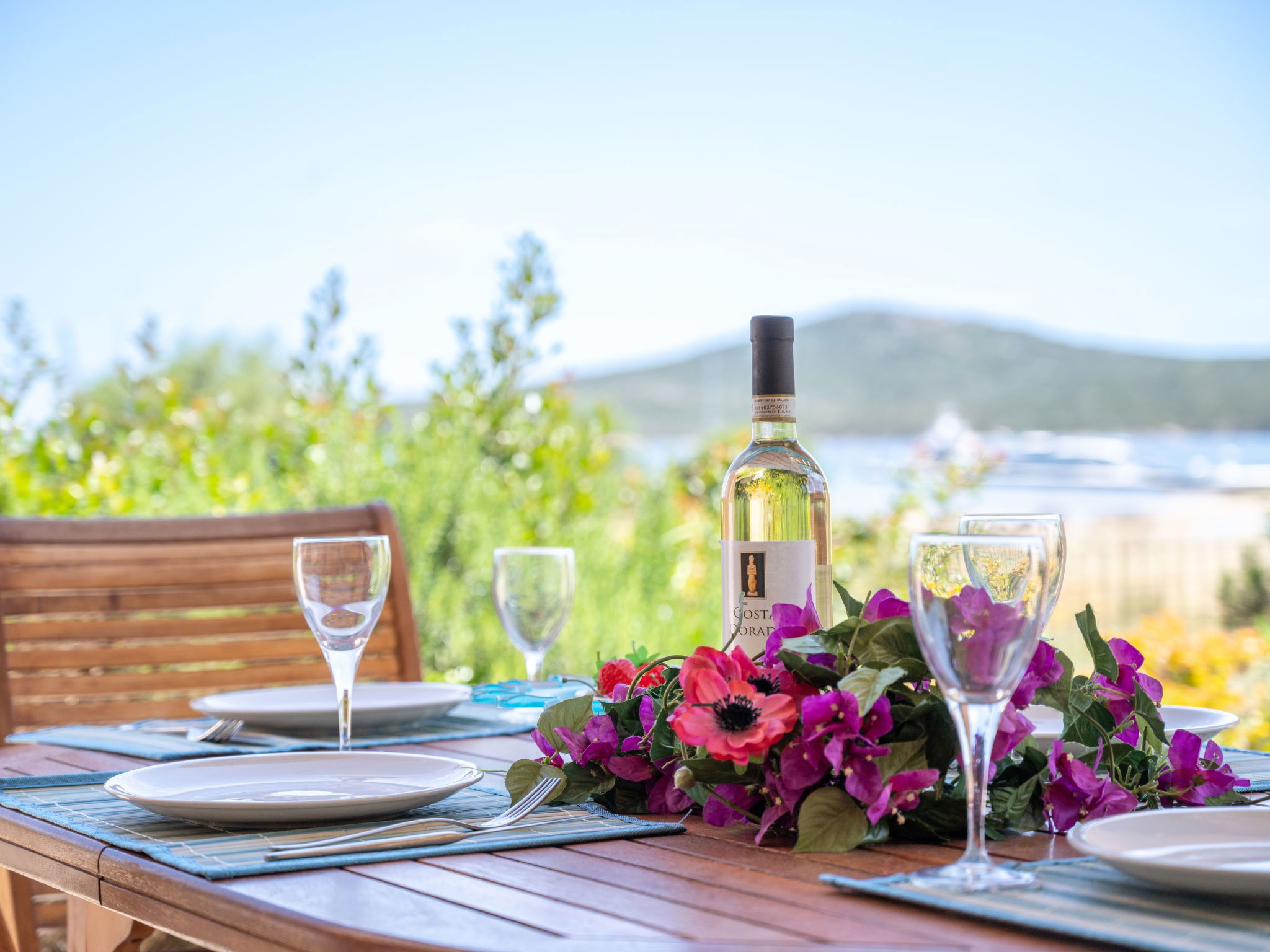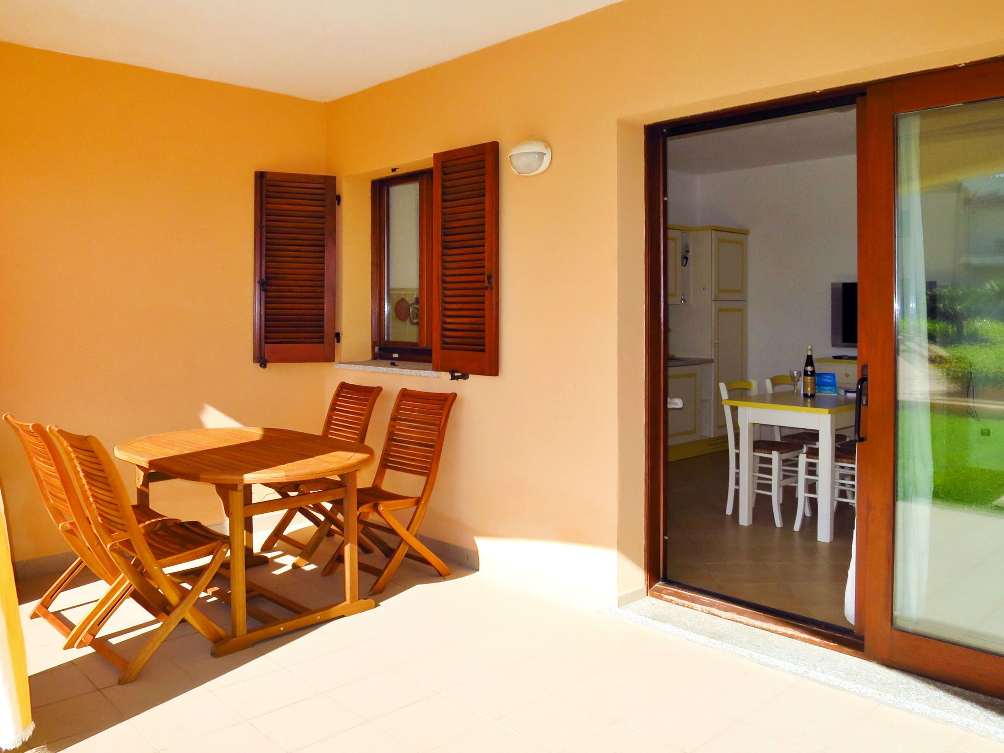 "I Mirti di Porto Pozzo ", 2-room apartment 45 m2, on the ground floor. Bright, comfortable furnishings: living/sleeping room with 1 double sofabed, dining table and satellite TV. 1 room with 1 double bed. Open kitchen (oven, 4 gas rings, toaster, electric coffee machine). Shower/bidet/WC. Air-conditioning. Terrace 15 m2. Terrace furniture. Beautiful view of the sea and the countryside. Facilities: washing machine, children's high chair, baby cot for up to 2 year olds, hair dryer. Internet (WiFi, free). Garage (extra) (1 car). Please note: non-smokers only. Maximum 1 pet/ dog allowed.