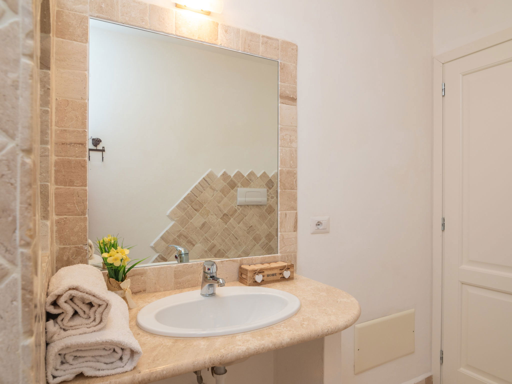Beautiful resort "Il Fjordo", 2 storeys, built in 2015. 40 apartments in the residence. 200 m from the centre of Porto Pozzo, 12 km from the centre of Santa Teresa, 13 km from the centre of Palau, on a slope, 600 m from the sea. For shared use: swimming pool kidney-shaped (16 x 8 m, seasonal availability: 15.May. - 15.Oct.). Parking on the premises. Grocery 250 m, supermarket 500 m, restaurant 300 m, bar 250 m, 5 minute walk to the centre, bus stop 260 m, ferry "Olbia" 50 km, sandy beach "Conca Verde" 6 km pebble beach "Porto Pozzo" 400 m. Marina, surf school, sailing school, children's playground 600 m. Nearby attractions: Parco naturale Arcipelago Maddalena, Faro di Capo Testa, Complesso Nuragico di Lu Brandali, Complesso nuragico di Cabu Abbas, Kite surf Porto Pollo. The photo is just an example.