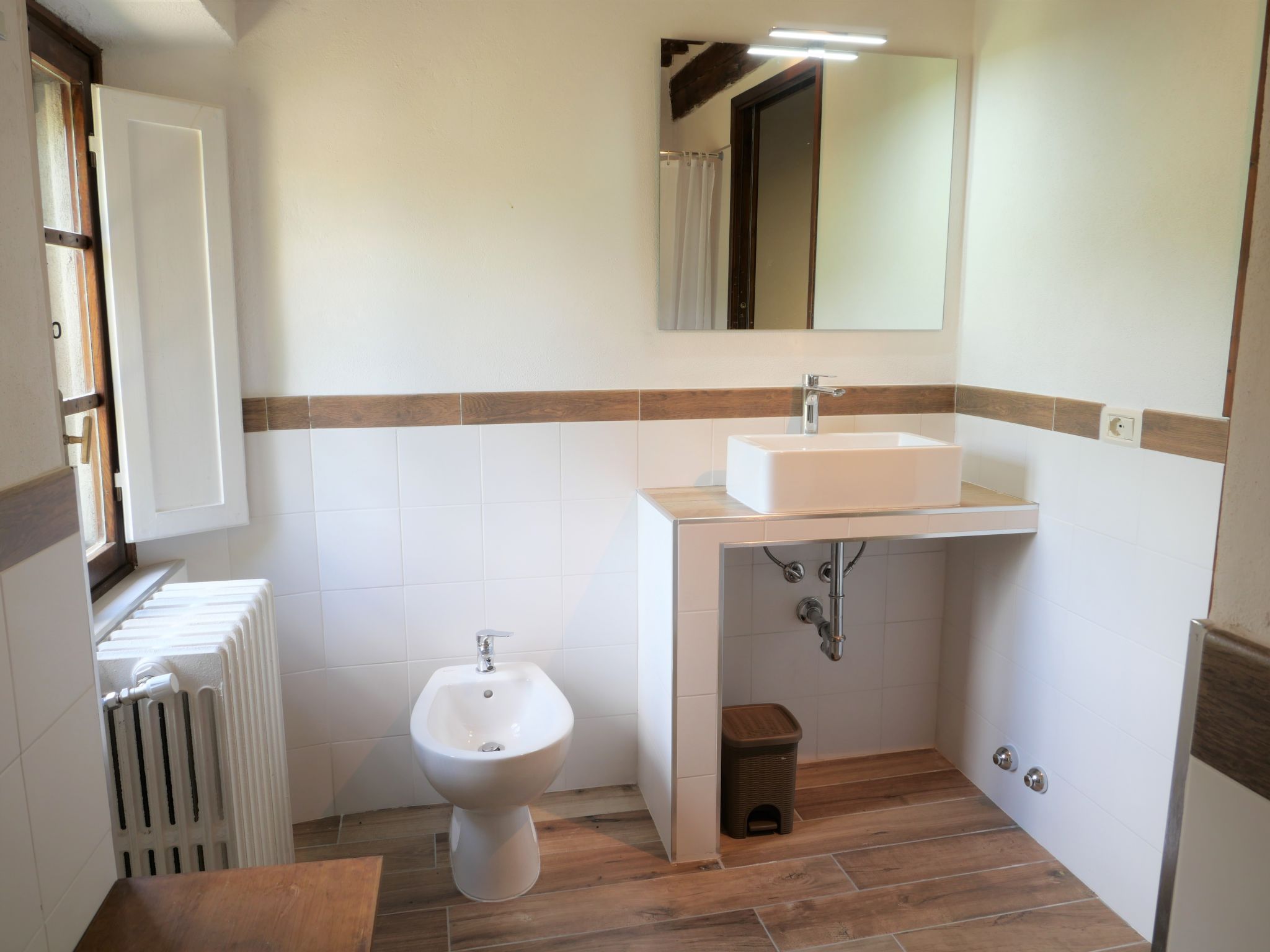 Beautiful, historical large working farm "Tenuta di Peruzzo", from the 18th century, surrounded by trees and vineyards. 10 apartments in the residence. 3.5 km from the centre of Sassofortino, 4 km from the centre of Roccatederighi, in a secluded, quiet, sunny position, 35 km from the sea, in the countryside. For shared use: park 450 ha, garden (not fenced) with plants and trees, pond, swimming pool (12 x 6 m, depth 150 cm, seasonal availability: 15.May. - 15.Oct.). Shower/WC in the pool area, children's pool, outdoor shower, table tennis, children's playground. Heating available only from 22.Oct. - 15.Apr.. Motor access (500 m via unmade road). Parking on the premises. Shop 3.5 km, supermarket 7 km, restaurant 3 km, bar 3.5 km, bus stop 3 km, ferry "Piombino" 60 km, sandy beach "Follonica" 36 km. Golf course (18 hole) 28 km, walking paths from the house 20 m. Nearby attractions: Roccastrada 16 km, Grosseto 30 km, Castiglione della Pescaia 42 km, Siena 60 km. Please note: car recommended. On the estate animal husbandry. The owner lives on the same property.