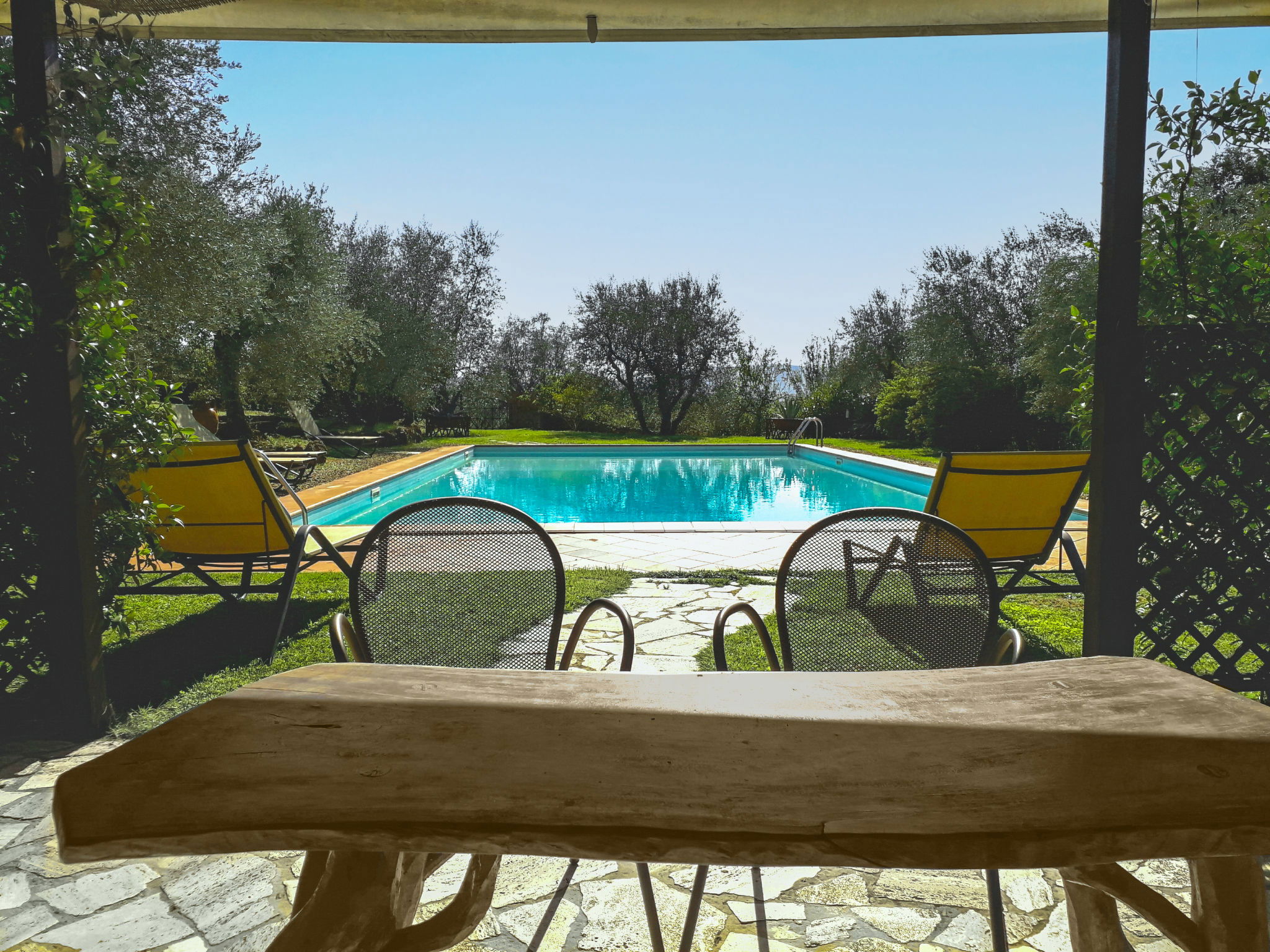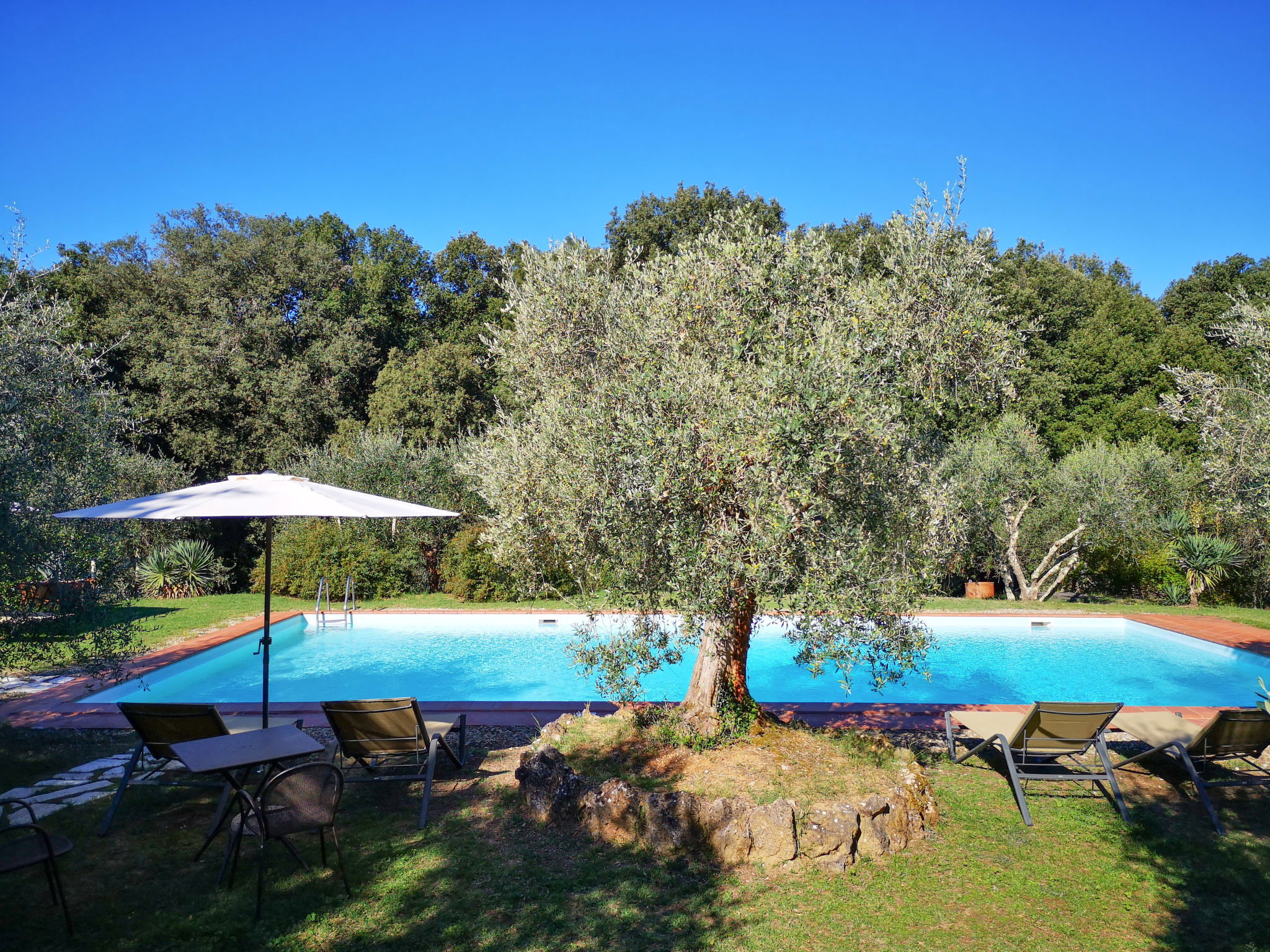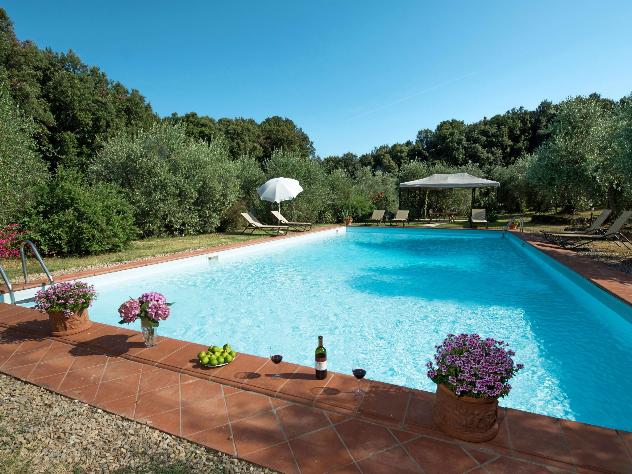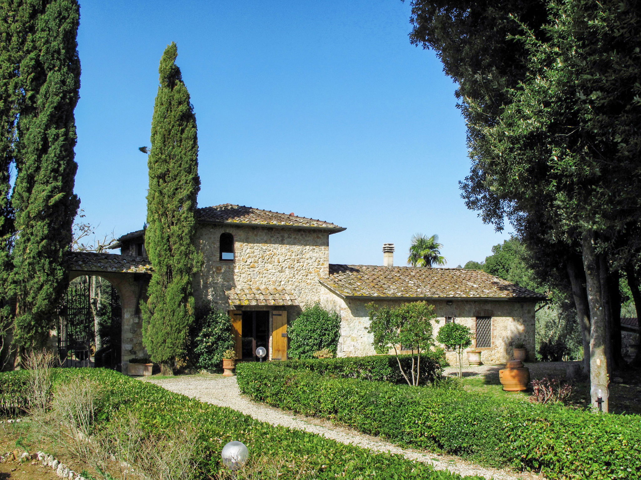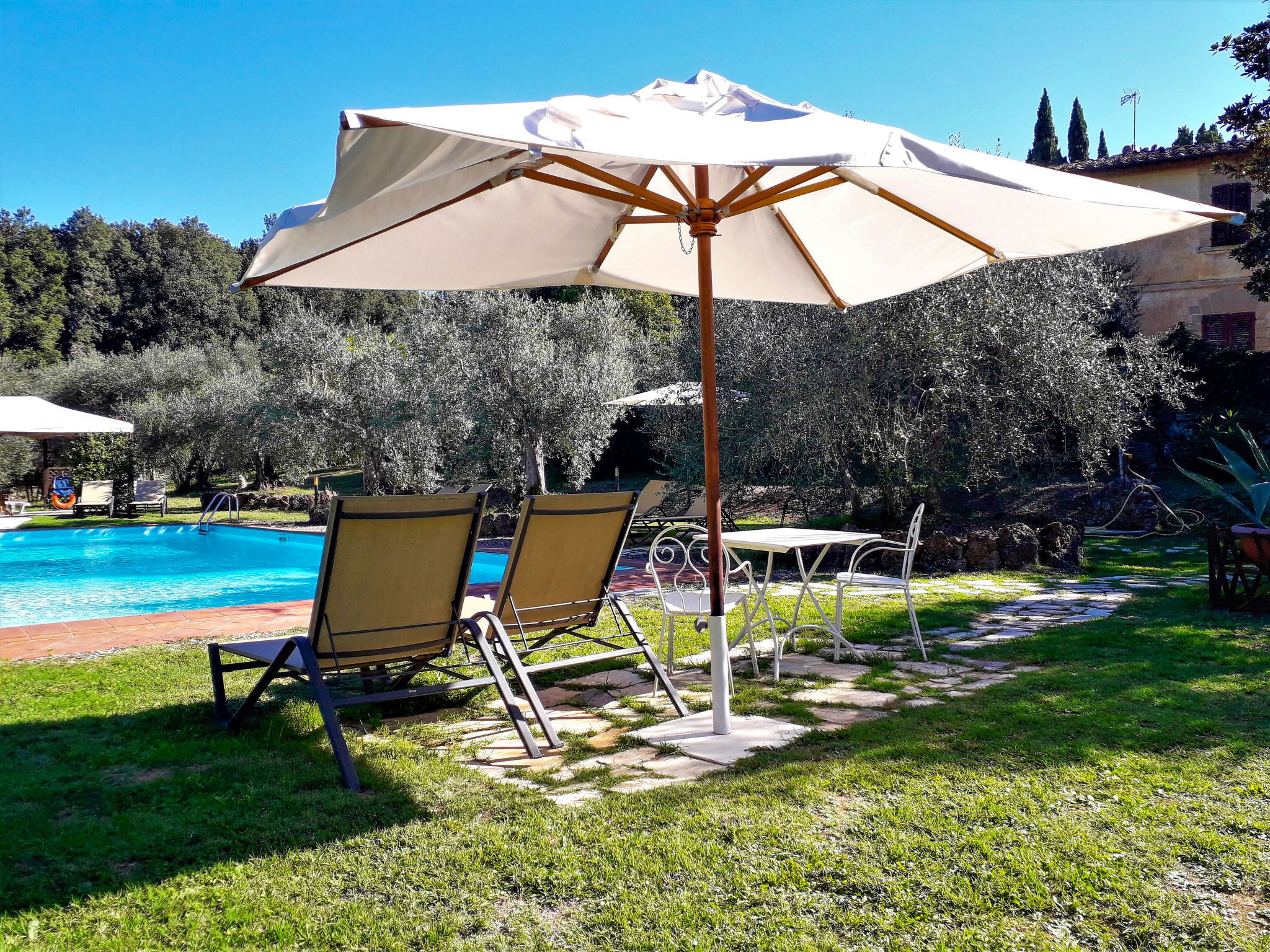Montecagnano 12 km from Siena: Beautiful agricultural estate "Bellaria", 2 storeys, detached, surrounded by trees. 4 houses in the residence. 4 apartments in the residence. 12 km from the centre of Siena, 1.1 km from the centre of Montecagnano, outside the resort, 67 km from the centre of Firenze, in a secluded position, 92 km from the sea. For shared use: beautiful terraced garden, 3 ha (fenced) with plants and trees, natural garden, orchard, swimming pool fenced (15 x 7 m, depth 100 - 250 cm, seasonal availability: 15.May. - 30.Sep. pool opening hours: 09:00-19:00). Outdoor shower. In the complex: washing machine (for shared use, extra). 1.7 km long motor access (via unmade road). Parking on the premises. Supermarket 8 km, bus stop 1.7 km, sandy beach "Marina di Cecina" 92 km. Local sale of farm products. Please note: the owner lives in the same residence. The owner has a dog.