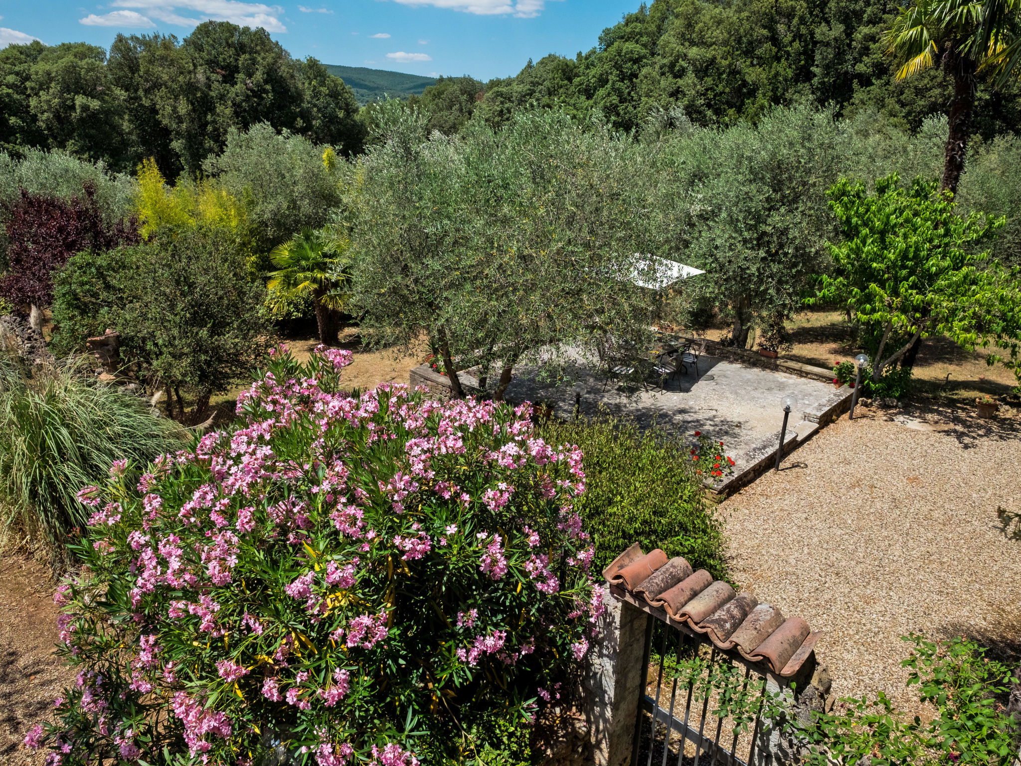 "Il Boschetto", 3-room house 100 m2, on the ground floor. Object suitable for 4 adults. Rustic and tasteful furnishings: living/dining room with open-hearth fireplace, dining table, kitchen corner and air conditioning. Exit to the garden. 2 rooms, each room with 1 double bed (160 cm), air conditioning. Exit to the garden. Small, open kitchen (oven, dishwasher, 4 gas rings, toaster, kettle, freezer, electric coffee machine). 2 showers/bidet/WC. Gas heating (extra), air-conditioning (extra). Comfortable furnishings in the country house style. Terrace, large garden. Terrace furniture, barbecue (portable), box-room. Beautiful view of the garden, the countryside and the forest. Facilities: children's high chair, baby cot. Internet (WiFi, free). Parking at the house. Please note: non-smokers only. Maximum 1 pet/ dog allowed. Fire extinguisher. IT052032B5DIG46BEY