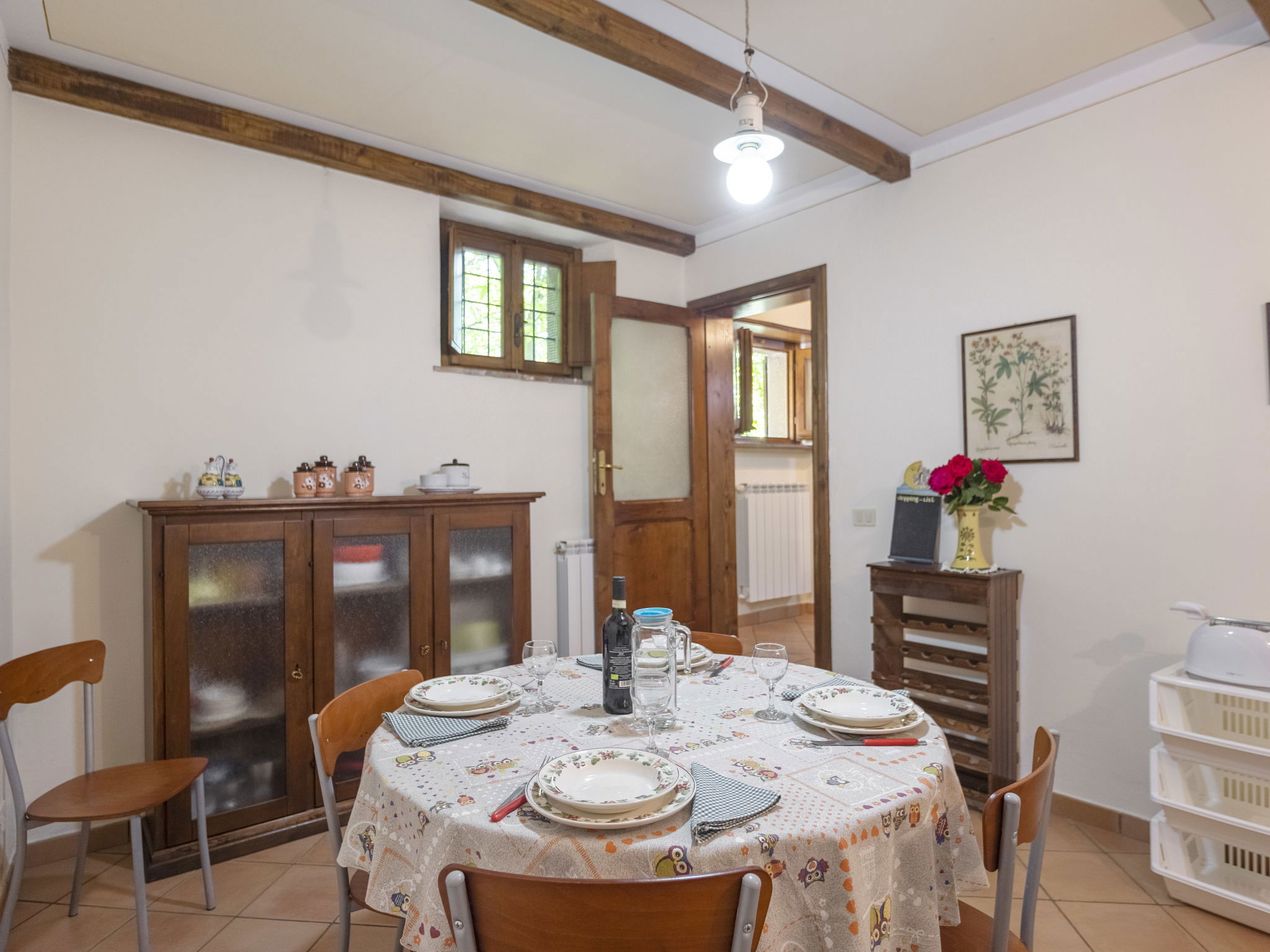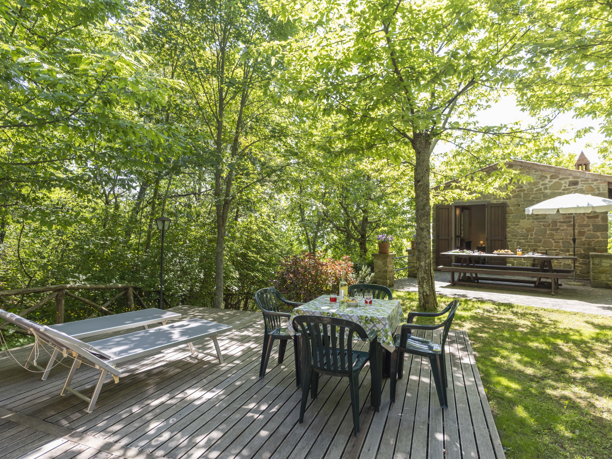 "rustico" cottage "Cottage Contadina", 800 m a.s.l.. 6 km from the centre of Cortona, in a secluded position, 30 km from the lake, in the woods. Private: property 1'000 m2 (fenced), terraced garden trees, natural garden, meadow, swimming pool (above ground) (6 x 3 m, seasonal availability: 01.May. - 30.Sep.). Outdoor shower, terrace (30 m2), garden furniture, pool maintenance by the owner/gardener. 3 km long motor access (500 m via unmade road, mountain road). Stepped path to the house. Parking at the house at 100 m. Shop 4 km, supermarket 5 km, railway station "Castiglion Fiorentino" 15 km, bathing lake "Lago Trasimento" 30 km. Golf course (9 hole) 20 km. Nearby attractions: Arezzo 32 km, Firenze 100 km, Siena 80 km, Perugia 40 km, Valdichiana Outlet Village 32 km. A bubble room is available in the garden to be booked before arrival and paid on site (extra).