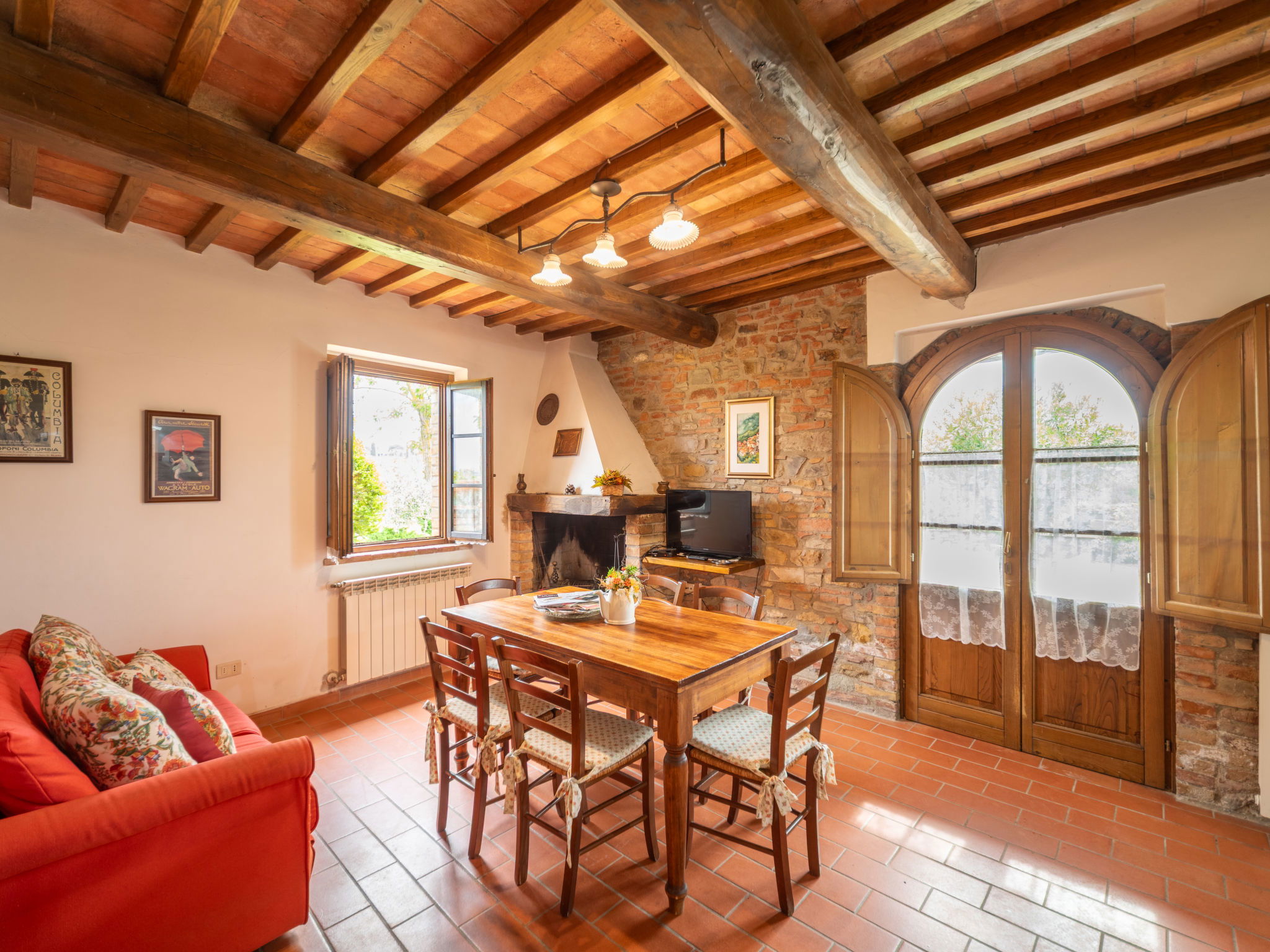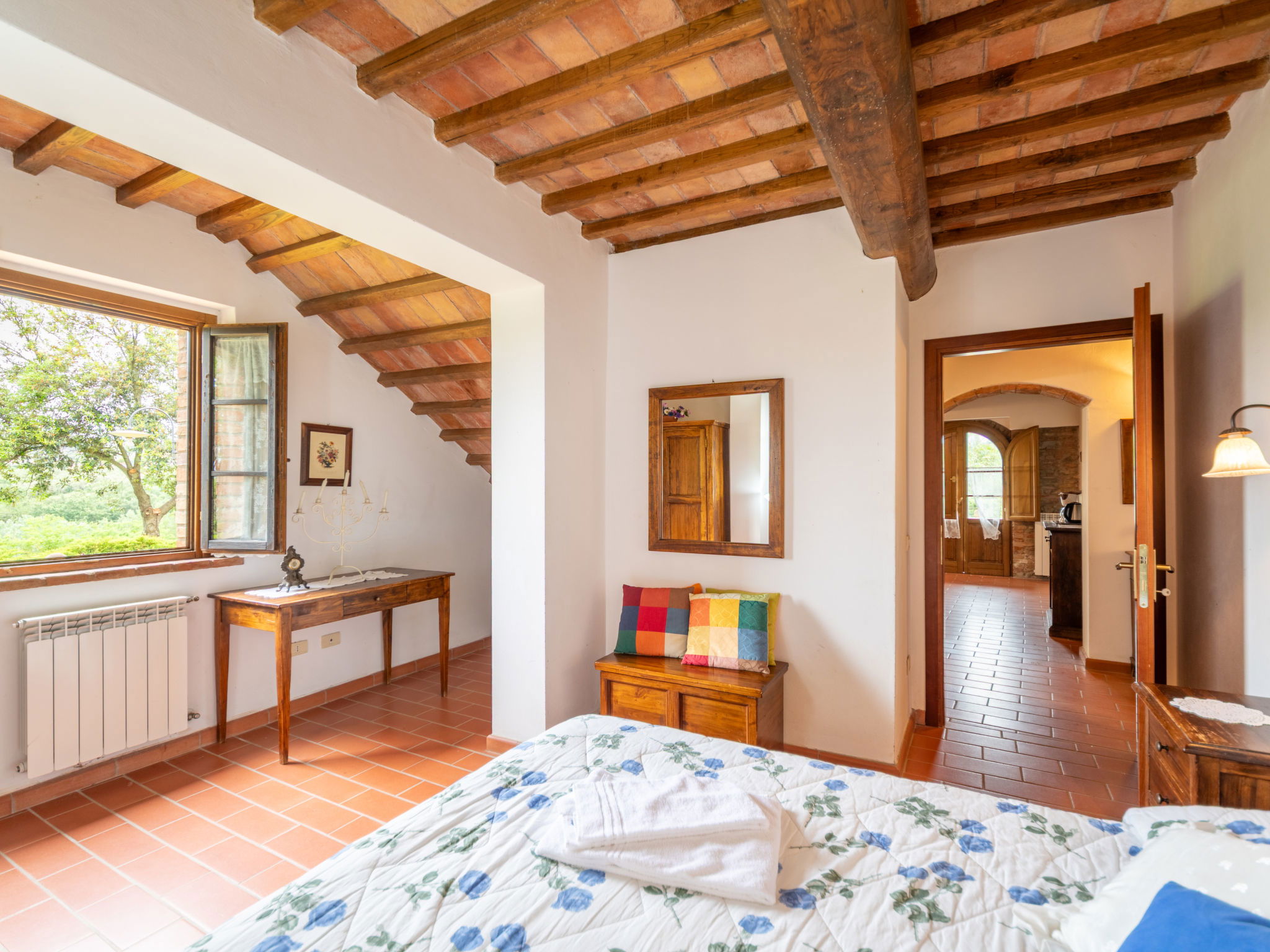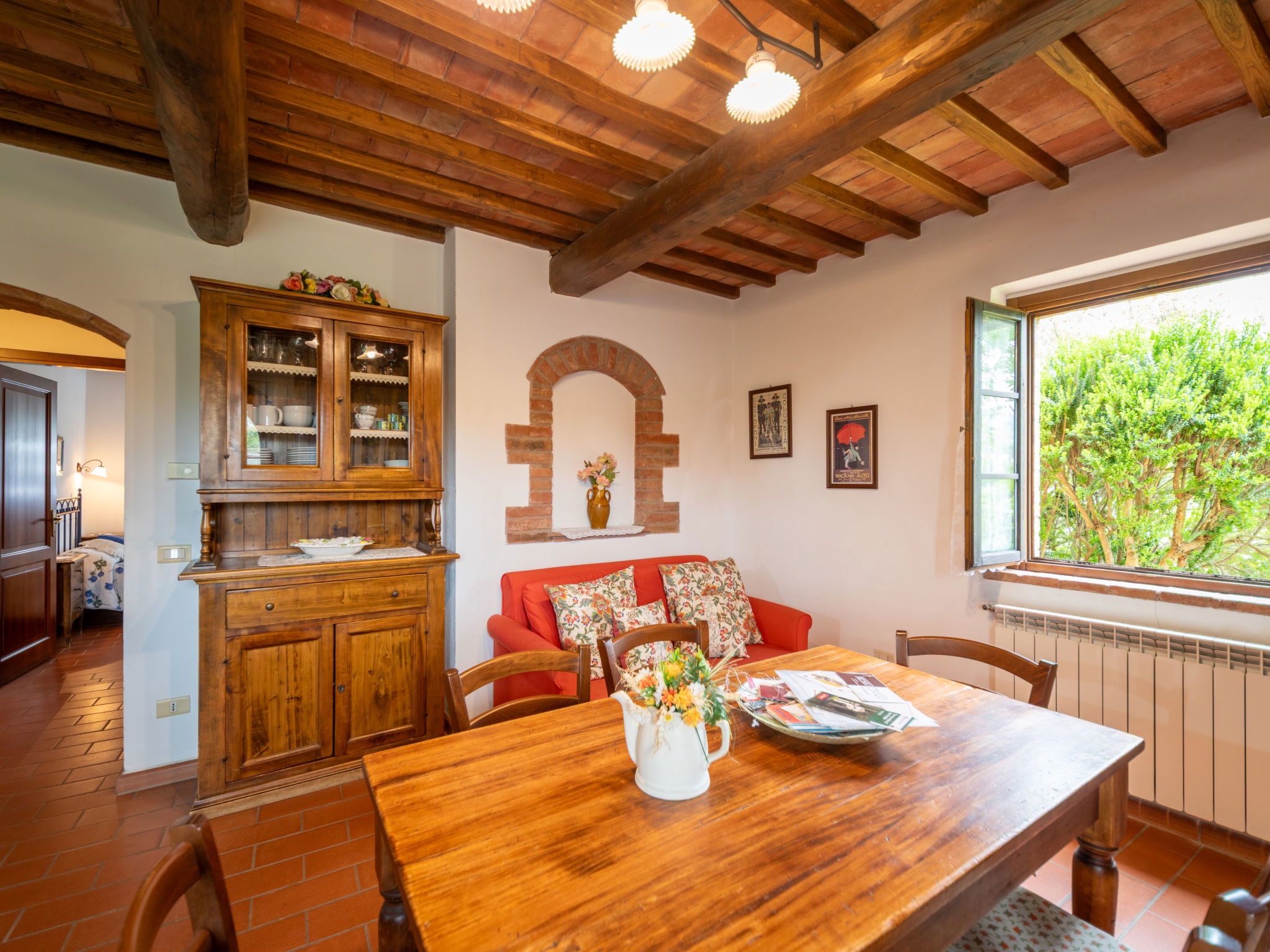 Montaione 19 km from San Gimignano: Agriturismo Casa Bacceli is divided into 7 apartments, one of which is occupied by the owner. The agroturismo is situated on a hill approx. 2 km from the centre of Montaione, in an oasis of peace and tranquility. An ideal place for relaxing holiday walking in the open air and in the Tuscan countryside - a perfect base for visiting the art cities in the region such as Volterra approx. 20 km, Siena and Lucca approx. 50 km, the Etruscan beaches approx. 60 km. Large working farm "Baccelli". 7 apartments in the property. 2 km from the centre of Montaione, 15 km from the centre of San Gimignano, 50 km from the centre of Firenze, in a secluded, quiet, sunny position on top of a hill. For shared use: garden (fenced), swimming pool (15 x 9 m, depth 120 - 200 cm, seasonal availability: 27.Apr. - 28.Sep.). Garden furniture, barbecue. In the complex: WiFi, central heating system, heating to be paid on the spot, heating available only from 01.Nov. - 07.Apr.. Motor access to the house (800 m via unmade road). Parking at the house. Shop 2 km, grocery 2 km, supermarket 2 km, bus stop 2 km, railway station "Castelfiornetino" 12 km. Golf course (18 hole) 17 km, tennis 5 km. Nearby attractions: Certaldo 19 km, San Miniato 30 km, San Casciano in Val di Pesa 40 km, Colle Val d'Elsa 40 km. WI-FI in the pool area and garden.
