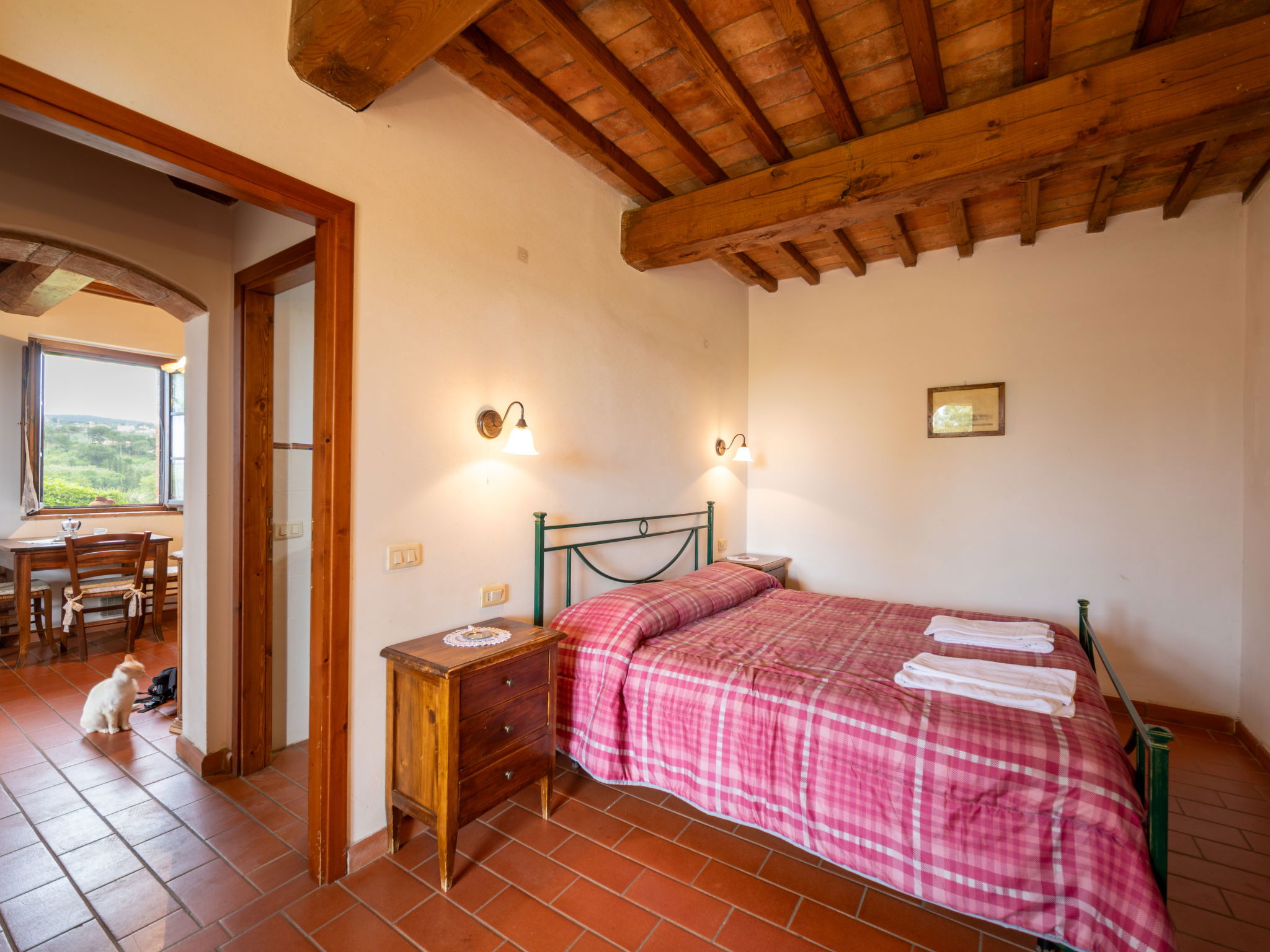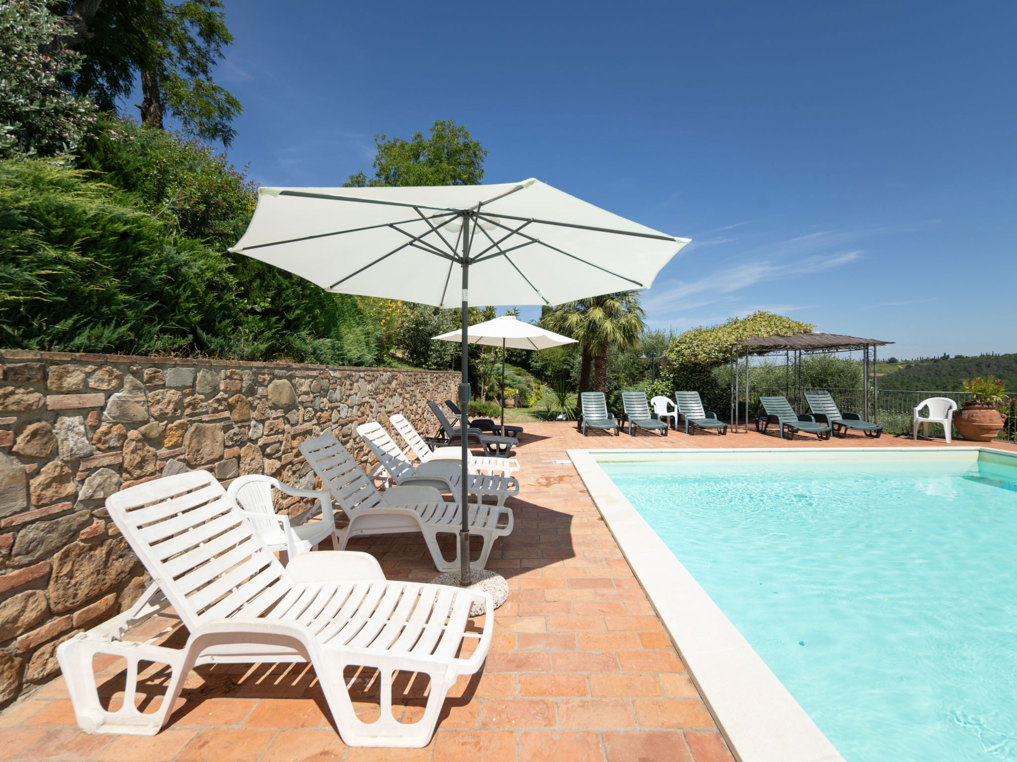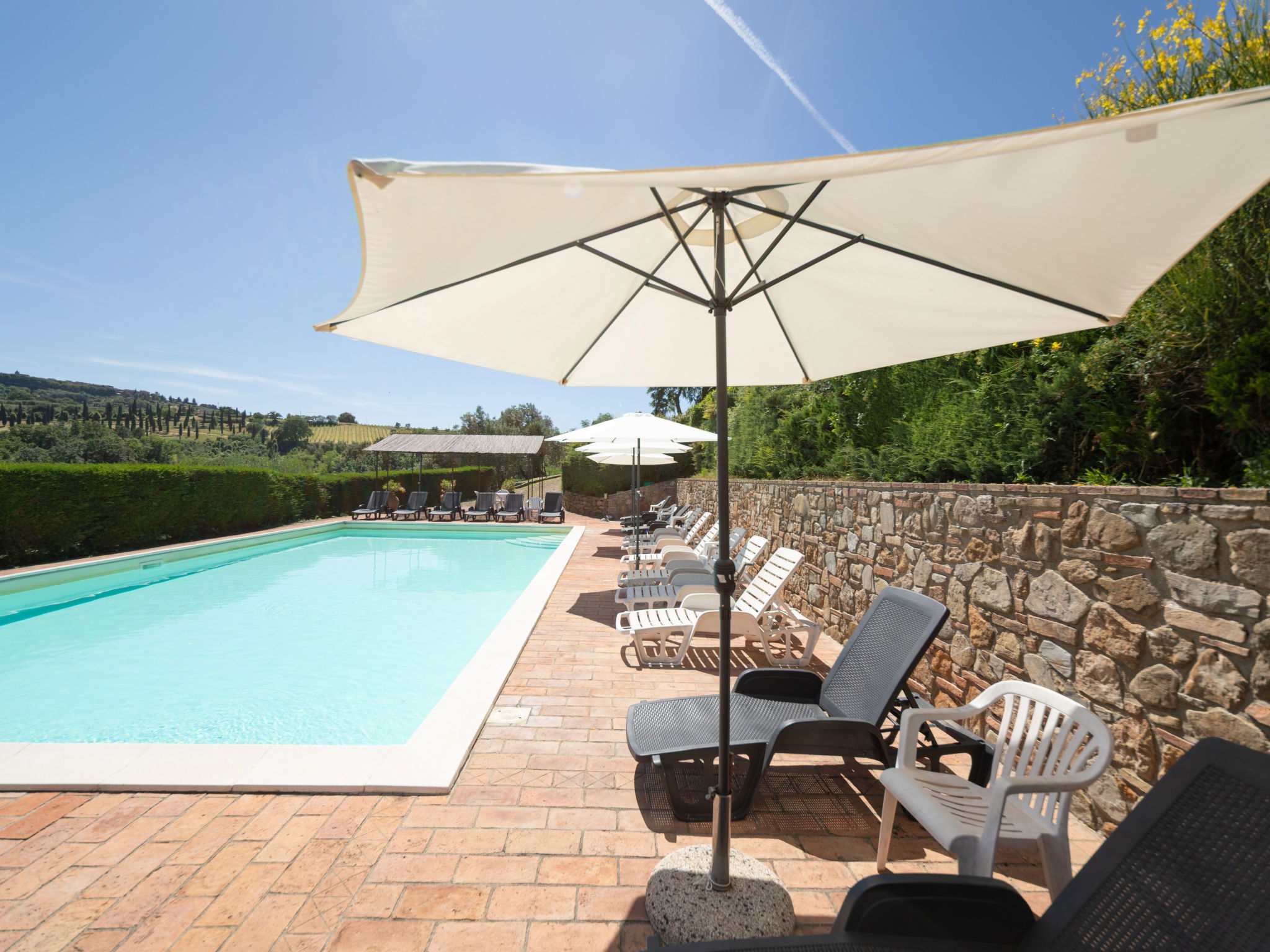 Montaione 19 km from San Gimignano: Agriturismo Casa Bacceli is divided into 7 apartments, one of which is occupied by the owner. The agroturismo is situated on a hill approx. 2 km from the centre of Montaione, in an oasis of peace and tranquility. An ideal place for relaxing holiday walking in the open air and in the Tuscan countryside - a perfect base for visiting the art cities in the region such as Volterra approx. 20 km, Siena and Lucca approx. 50 km, the Etruscan beaches approx. 60 km. Large working farm "Baccelli". 7 apartments in the property. 2 km from the centre of Montaione, 15 km from the centre of San Gimignano, 50 km from the centre of Firenze, in a secluded, quiet, sunny position on top of a hill. For shared use: garden (fenced), swimming pool (15 x 9 m, depth 120 - 200 cm, seasonal availability: 27.Apr. - 28.Sep.). Garden furniture, barbecue. In the complex: WiFi, central heating system, heating to be paid on the spot, heating available only from 01.Nov. - 07.Apr.. Motor access to the house (800 m via unmade road). Parking at the house. Shop 2 km, grocery 2 km, supermarket 2 km, bus stop 2 km, railway station "Castelfiornetino" 12 km. Golf course (18 hole) 17 km, tennis 5 km. Nearby attractions: Certaldo 19 km, San Miniato 30 km, San Casciano in Val di Pesa 40 km, Colle Val d'Elsa 40 km. WI-FI in the pool area and garden.
