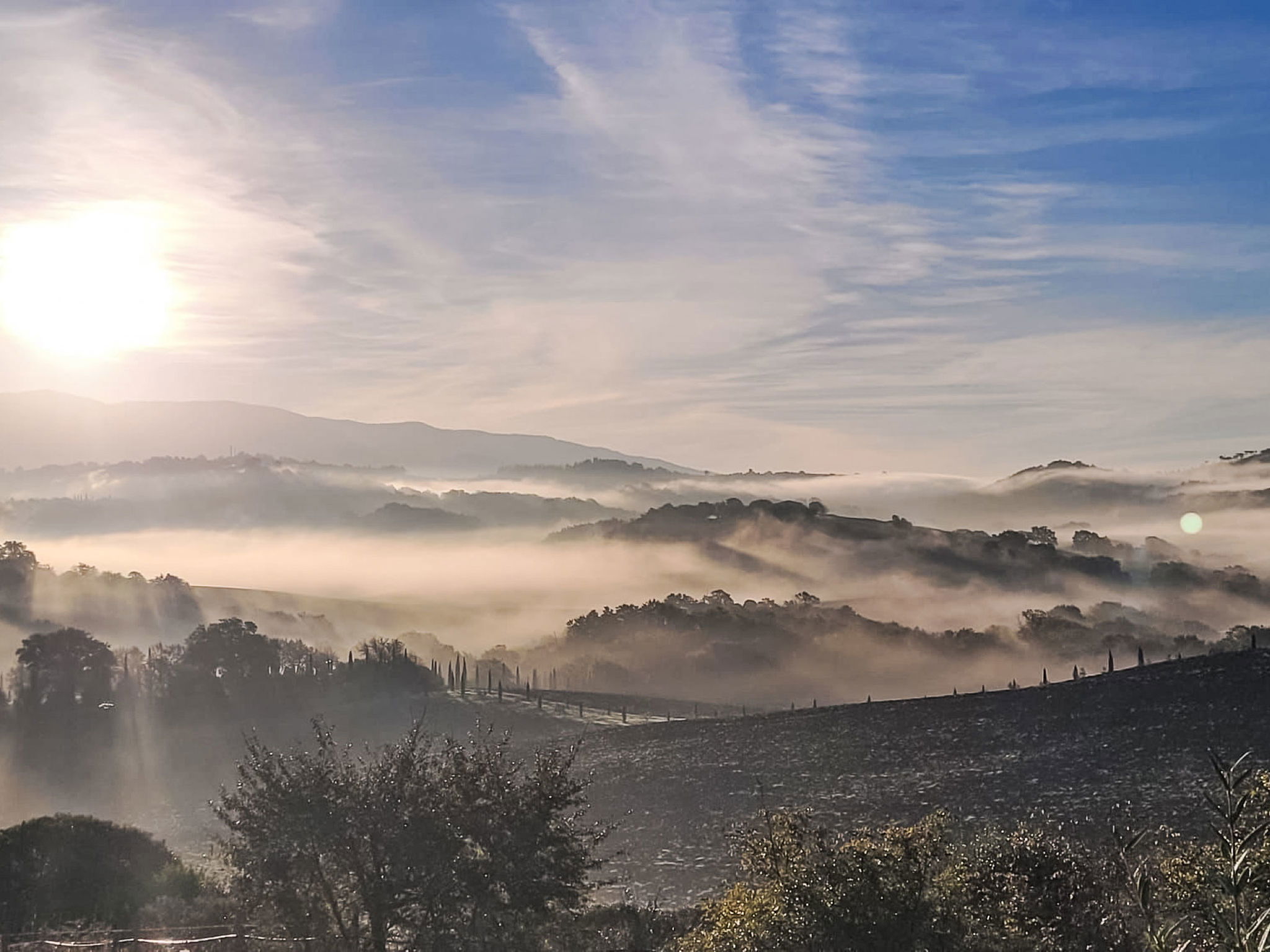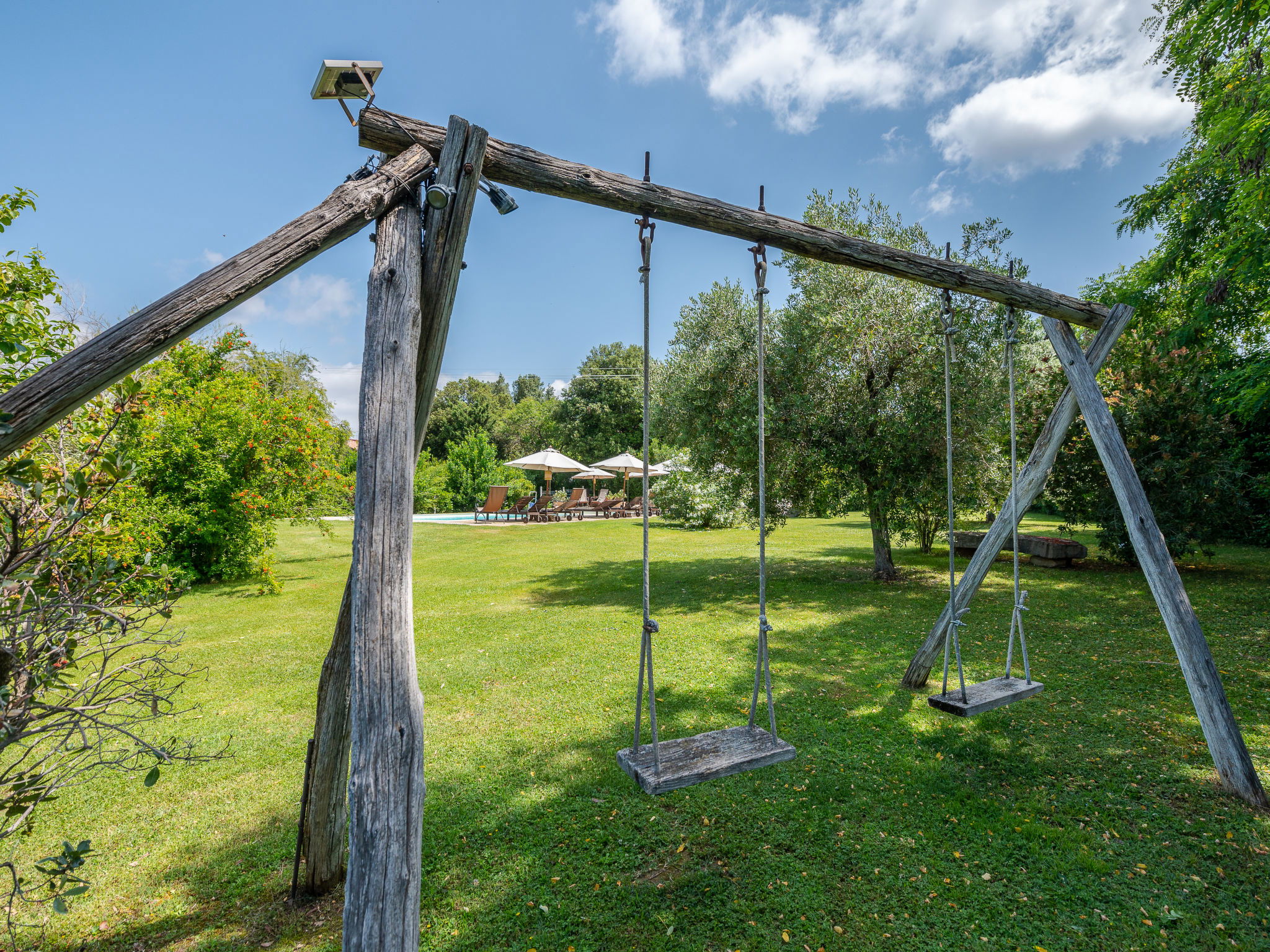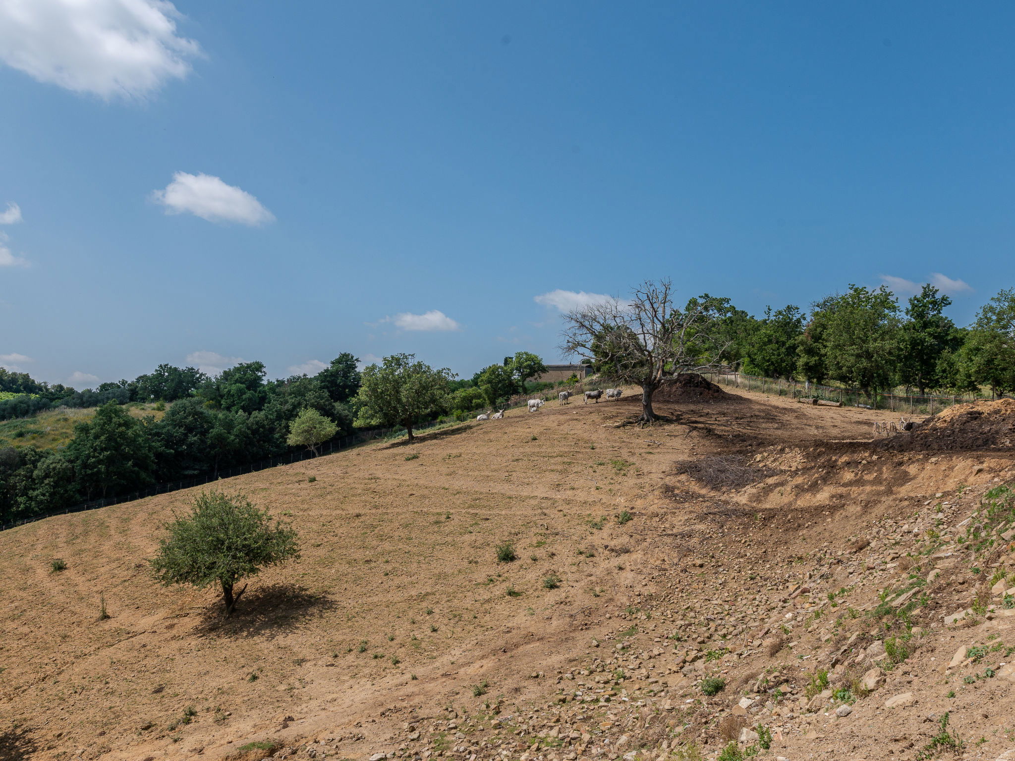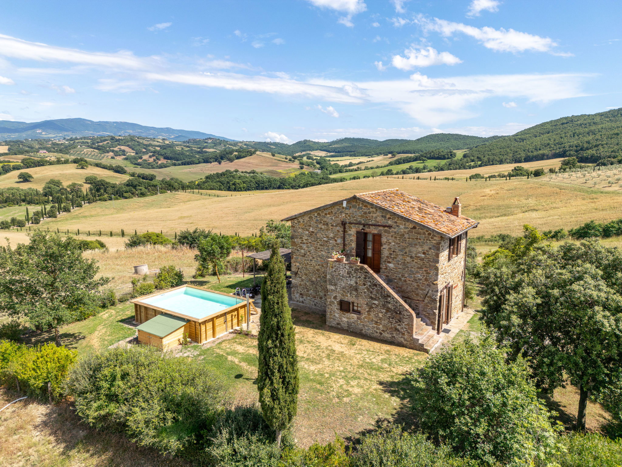 Cosy, rustic house "Le Calle", 2 storeys, detached, surrounded by meadows and vineyards. 13 km from the centre of Cinigiano, in a secluded, quiet, sunny position, 50 km from the sea, in the countryside. For shared use: swimming pool (6 x 12 m, depth 120 - 170 cm, seasonal availability: 01.May. - 30.Oct.). Shower/WC in the pool area, volleyball, barbecue, children's playground, pool maintenance by the owner/gardener. Private: garden (fenced) with lawn and wildlife garden, swimming pool (above ground) (3 x 4 m, seasonal availability: 01.Jun. - 30.Sep.). In the complex: reception. 2.5 km long steep motor access (via unmade road). Parking at the house. Grocery 3.5 km, supermarket 13 km, restaurant 6 km. Riding stable 13 km, walking paths from the house 20 m. Nearby attractions: Montalcino 35 km, Val d´Orcia, Monte Amiata, Castiglione della Pescaia 50 km. Hiking paths: Parco dell´Uccellina 50 km. Please note: car recommended. Local sale of farm products. The big common swimming pool is 2500m from the house, reached by a gravel road. From the 2024 season, a private above-ground pool will be available at the house.