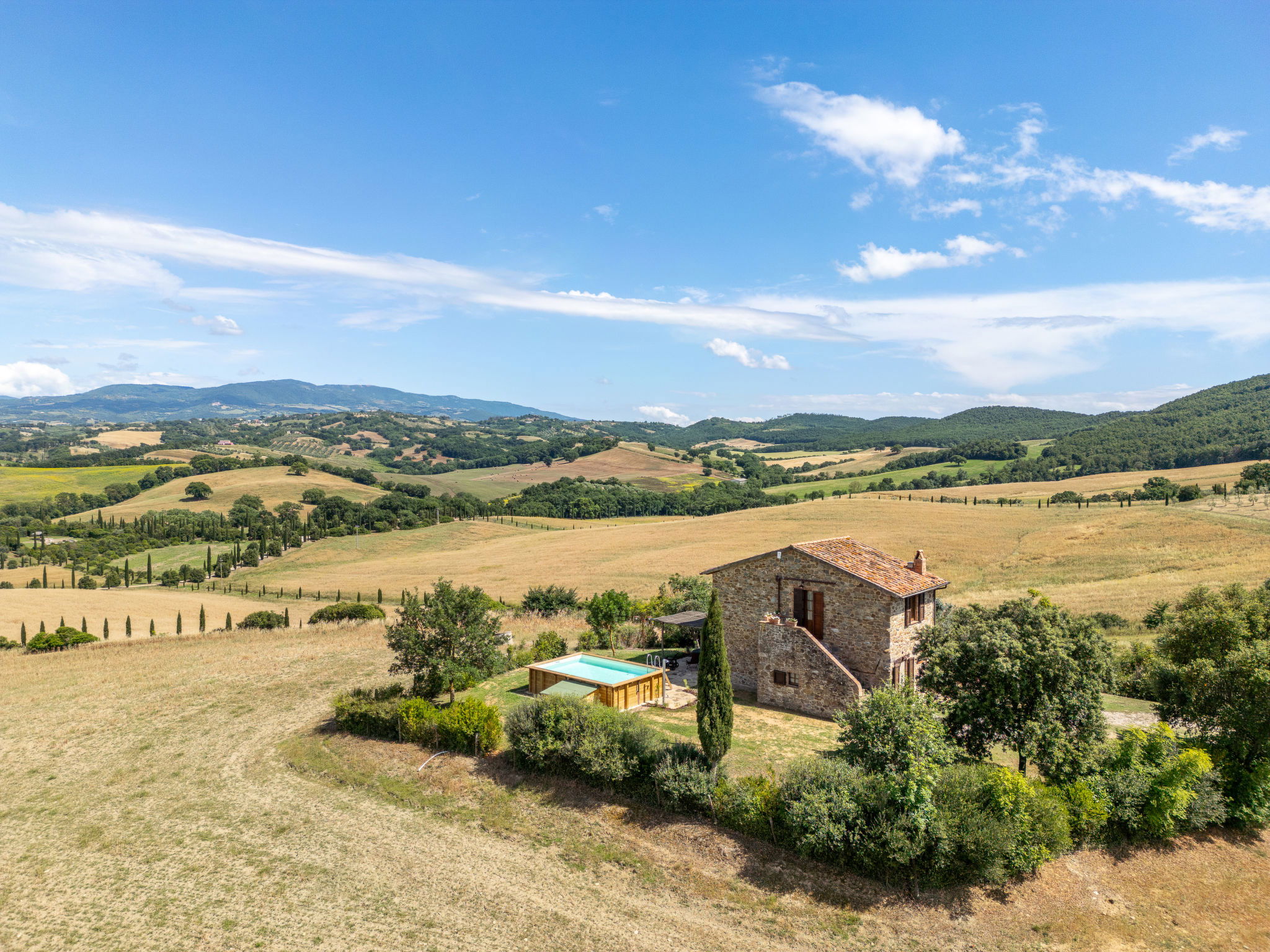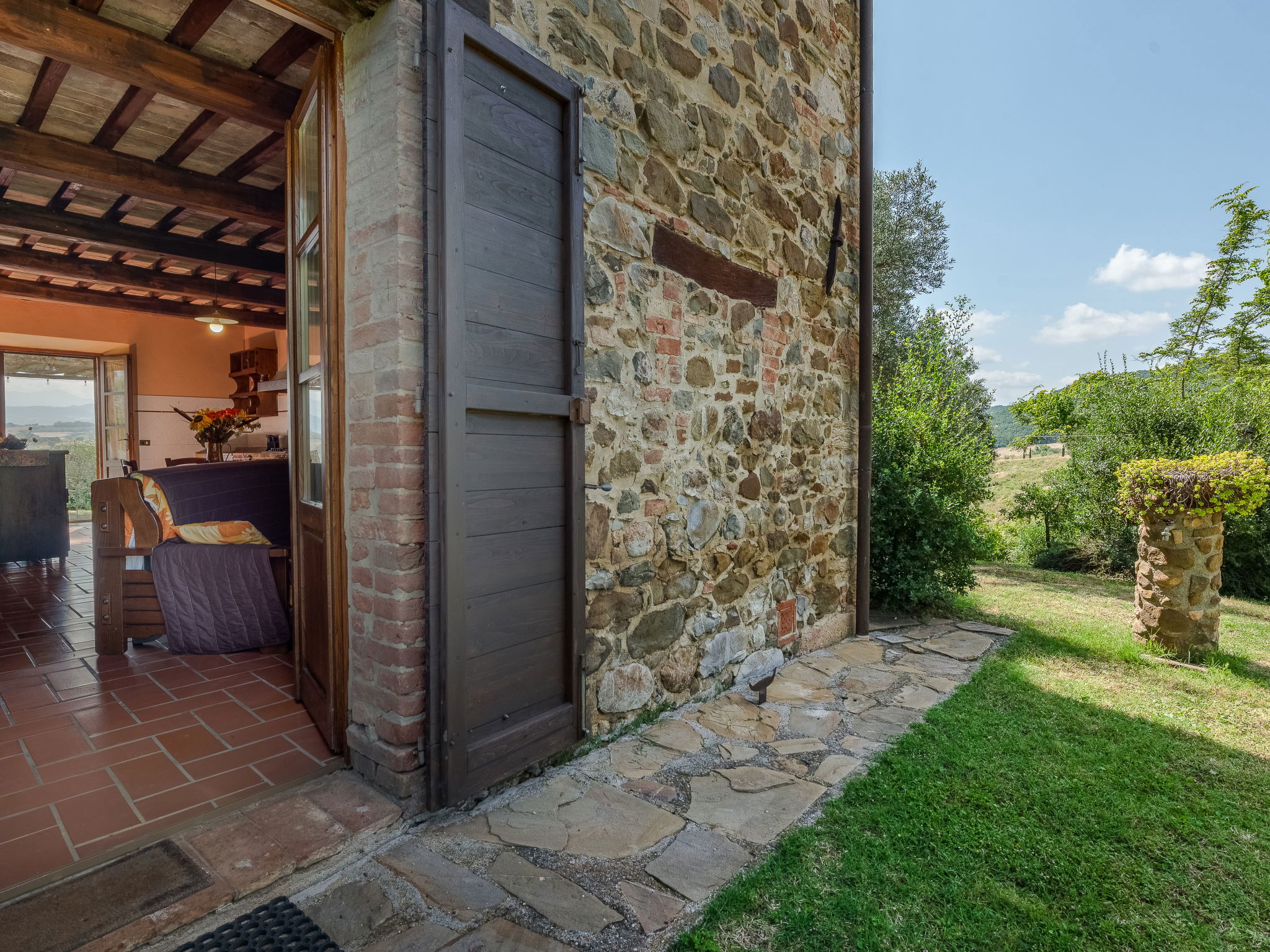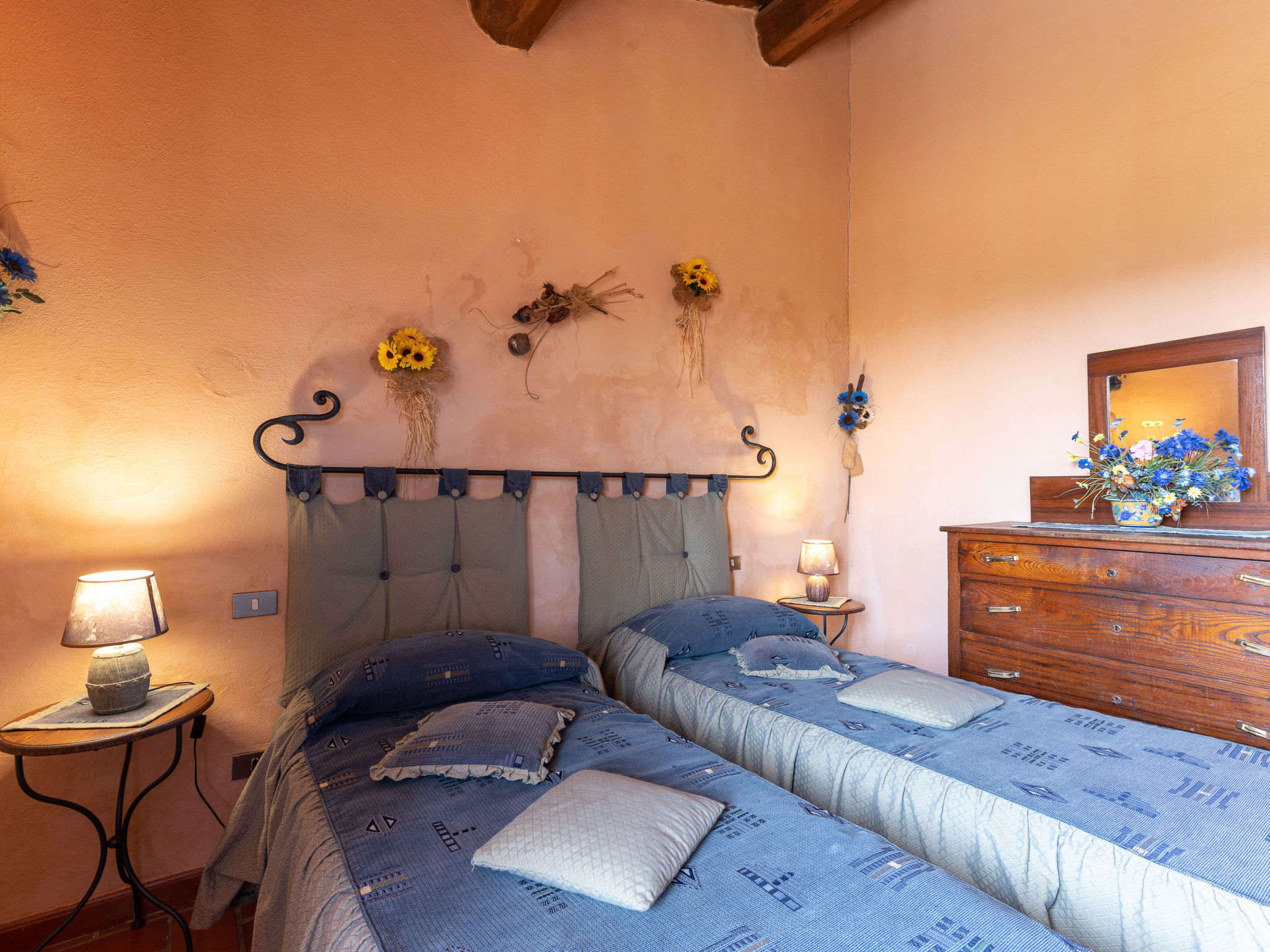 3-room house 100 m2 on 2 levels. Comfortable and rustic furnishings: living/dining room with 1 double sofabed, open-hearth fireplace, dining table and TV. Exit to the garden, pergola. Open kitchen (oven, dishwasher, 5 gas rings, toaster, kettle, microwave, electric coffee machine). Exit to the garden, pergola. Shower/bidet/WC. Upper floor: 1 double bedroom with air conditioning. 1 room with 2 beds and air conditioning. Shower/bidet/WC. Wood heating, forced-air heating. Patio. Barbecue, deck chairs (4). Marvellous panoramic view of the countryside. Facilities: washing machine, iron, mosquito net, baby cot for up to 2 year olds, hair dryer. Internet (WiFi, free). Please note: maximum 2 pets/ dogs allowed. Private entrance. IT053007B5W744KD3C