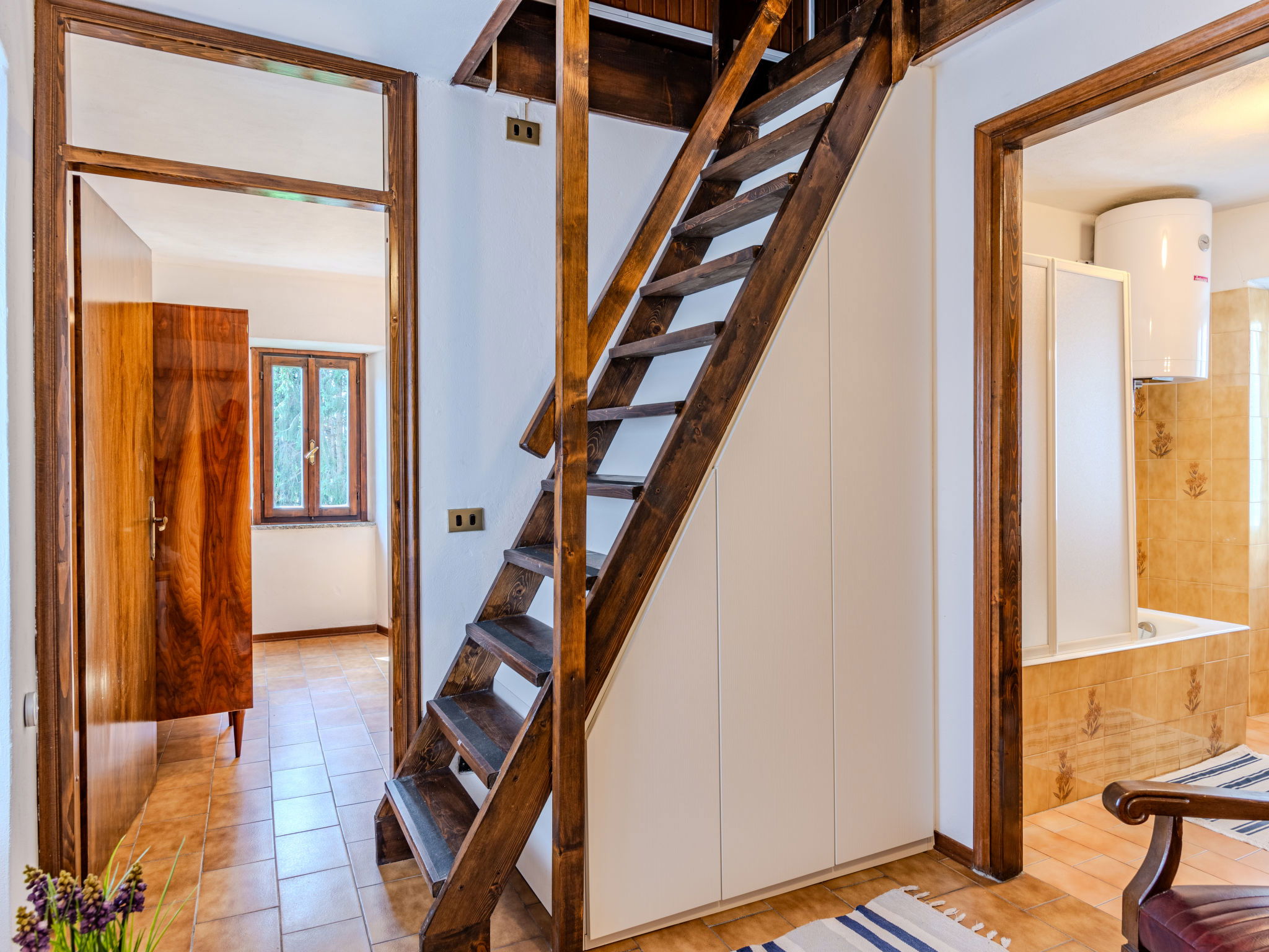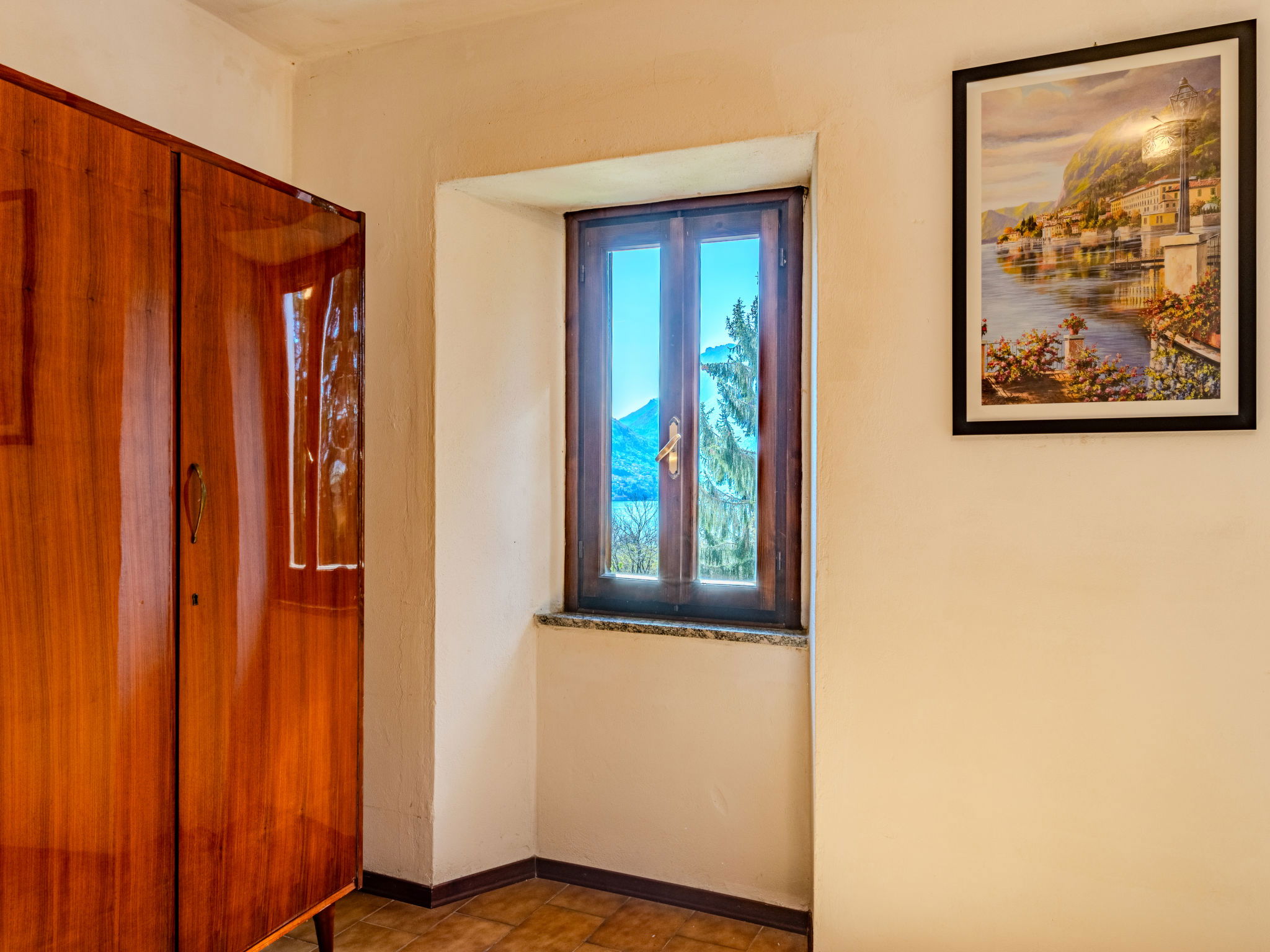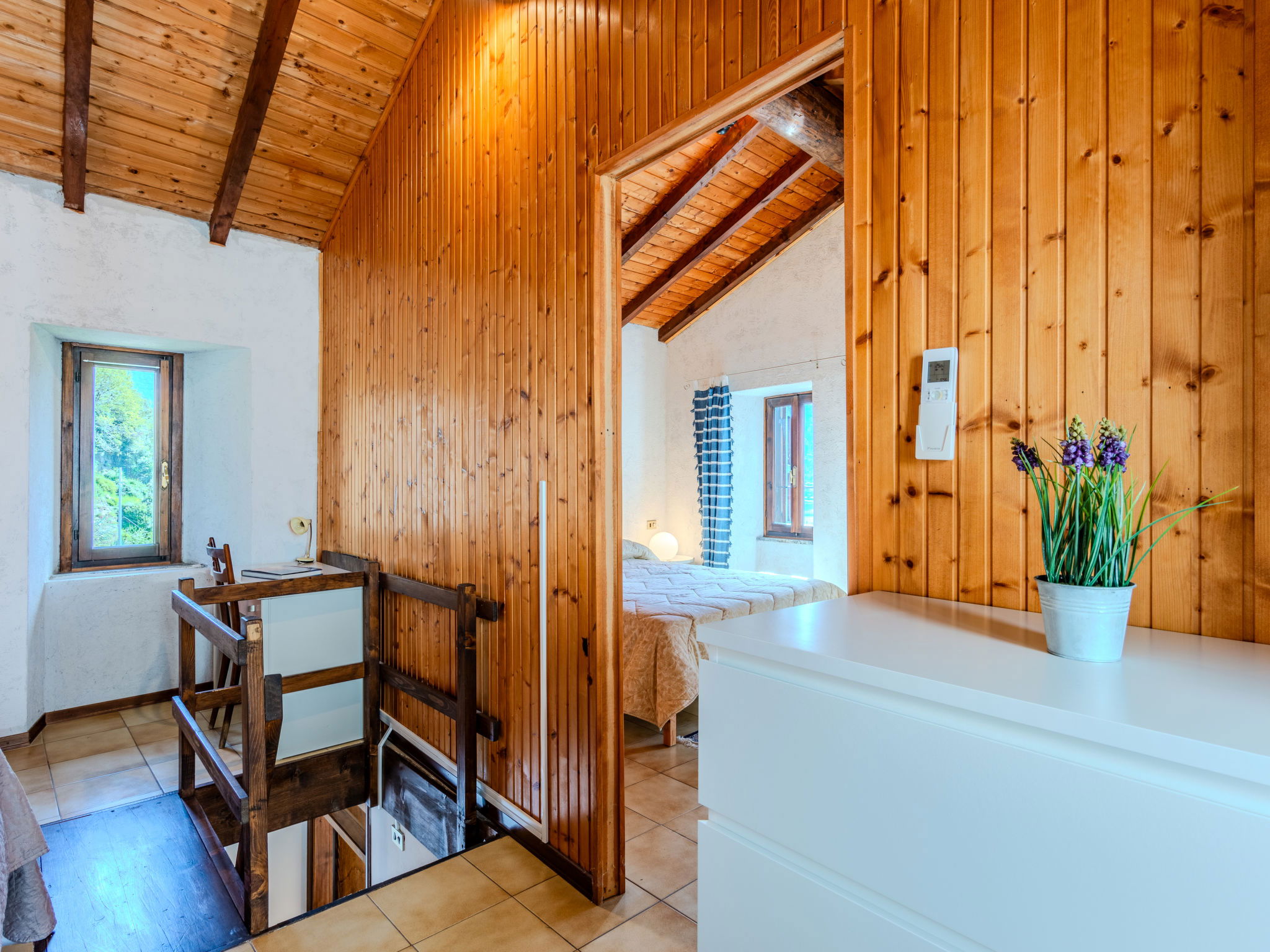 Cosy "rustico" cottage "Casa Sul Torrente", 3 storeys, surrounded by trees. Above Rezzonico, in the hamlet Roncate 1.5 km from the centre of Rezzonico-San Siro, 43 km from the centre of Como, 36 km from the centre of Lugano, in an elevated position on a slope, in the residential district, 1.5 km from the lake, 10 m from the stream, in the countryside. Private: natural state property with lawn and wildlife garden. In the house: air conditioning. 100 m long narrow motor access. 50 m footpath (5 steps) to the house. Public parking 50 m. Grocery 1.3 km, supermarket 8 km, restaurant 1.3 km, bar 2 km, bus stop "C10 (Como-Menaggio-Colico)" 1 km, railway station "Como" 43 km, ferry "Menaggio" 9 km, sandy beach "Lido di Menaggio" 8 km pebble beach "Rezzonico" 1.3 km (small), grass beach "Lido di San Siro" 2 km. Marina 3.5 km, golf course (18 hole) 13 km, surf school 3.5 km, sailing school 3.5 km, minigolf 8 km. Nearby attractions: Museo Barca Lariana-Pianello del Lario, Palazzo Gallio, Bellagio, Menaggio, Varenna, Villa Carlotta-Tremezzo. Well-known lakes can easily be reached: Lago di Lugano, Lago di Mezzola. Please note: car recommended. Nightclub/disco 800 m from the property.