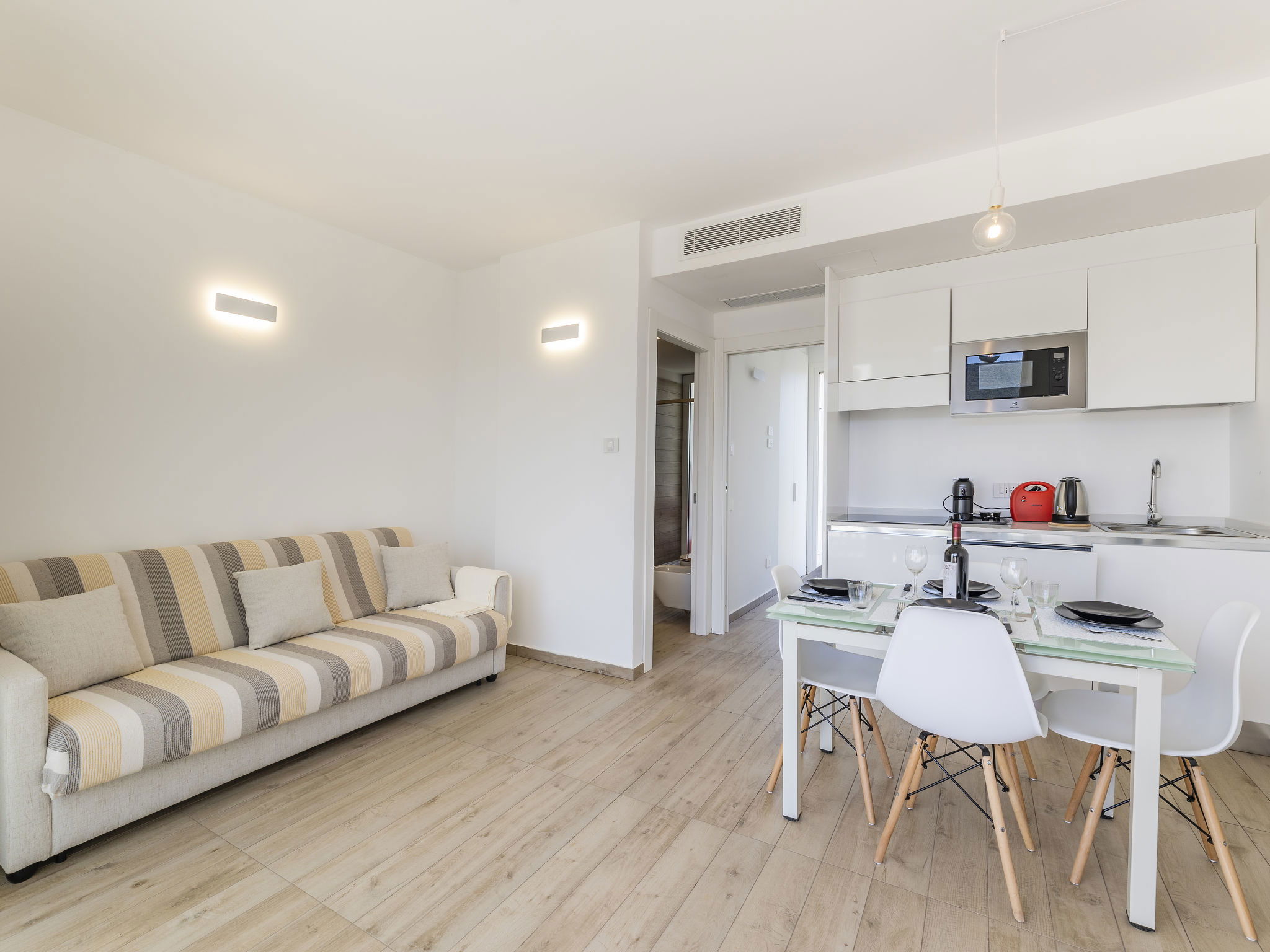 "Capo Falcone Charming Apartment", 2-room apartment 38 m2. Bright, comfortable and stylish furnishings: living/sleeping room with 1 double sofabed, dining table and satellite TV. 1 double bedroom. Kitchenette (dishwasher, 4 induction hot plates, toaster, kettle, microwave). Shower/bidet/WC. Air-conditioning, forced-air heating. Balcony or terrace. Terrace furniture, balcony furniture. Facilities: children's high chair (extra), hair dryer. Internet (WiFi). Please note: non-smokers only. 1 small pet/ dog allowed. Smoke alarm. IT090089B4000F0721