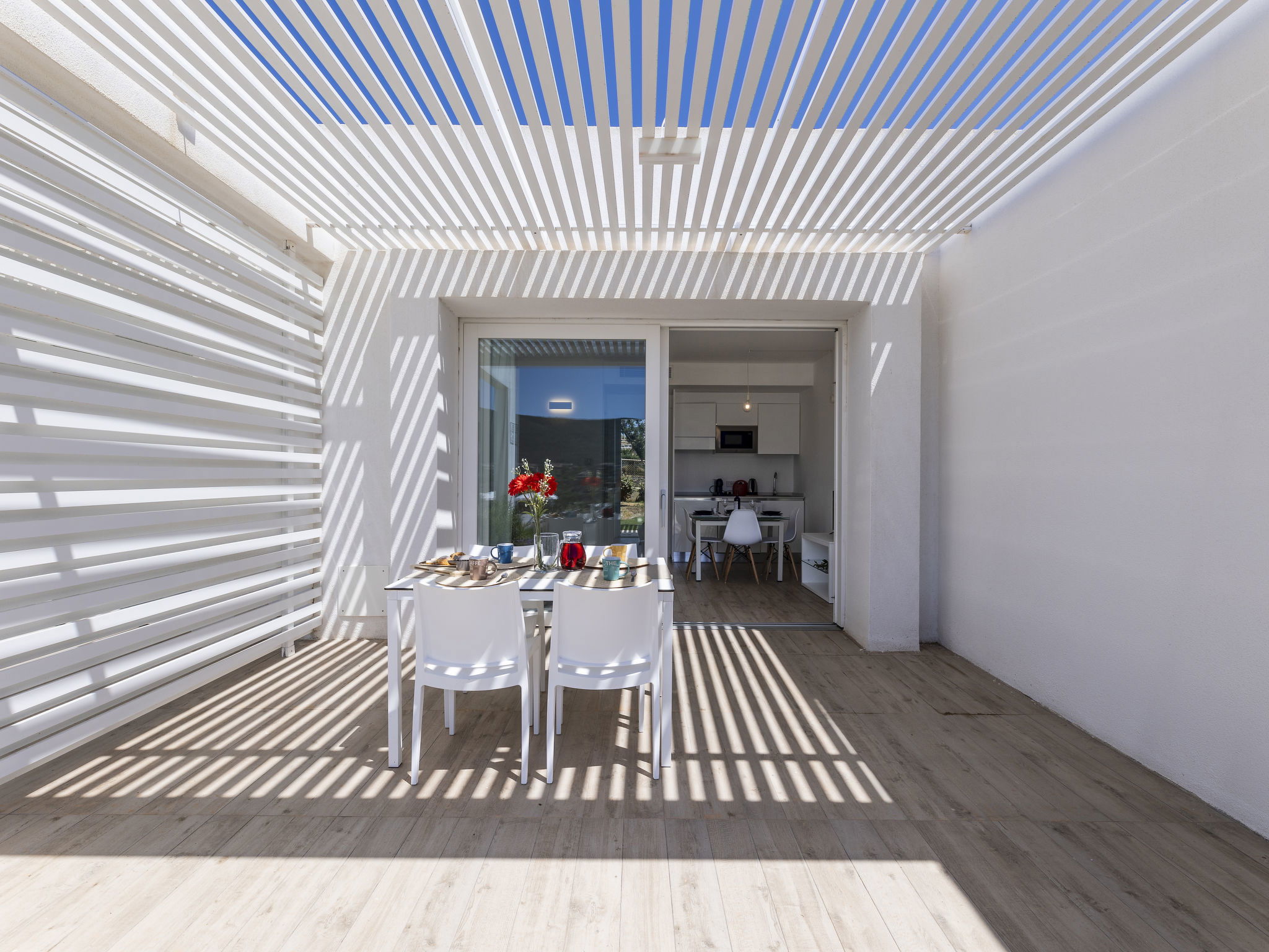 Modern, beautiful residence "Capo Falcone Charming Apartments". 54 apartments in the residence. 4 km from the centre of Stintino, 30 km from the centre of Porto Torres, 250 m from the sea, 250 m from the beach. For shared use: property, garden with lawn and plants, swimming pool (20 x 10 m, depth 150 cm, seasonal availability: 28.Mar. - 30.Oct. pool opening hours: 09:30-19:30). Barbecue, children's playground. In the complex: reception, WiFi, washing machine, tumble dryer (for shared use), bicycle rental. Parking on the premises. Restaurant, bar, café 500 m, bus stop 800 m, ferry "Porto Torres" 30 km, sandy beach "La Pelosa" 250 m, rocky beach "Spiaggia della Pelosetta" 1 km, diving center 3 km. Sports harbour 3 km, surf school 3 km. Nearby attractions: Parco dell'Asinara 13 km. On request: airport transfer to the holiday accommodation. Please note: the photograph shows a typical example. The holiday properties may differ in situation, size and location.