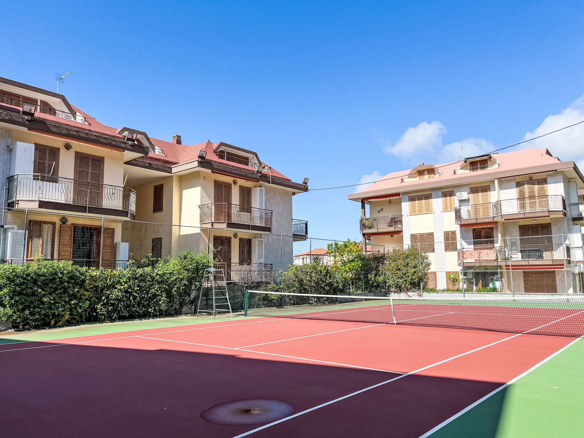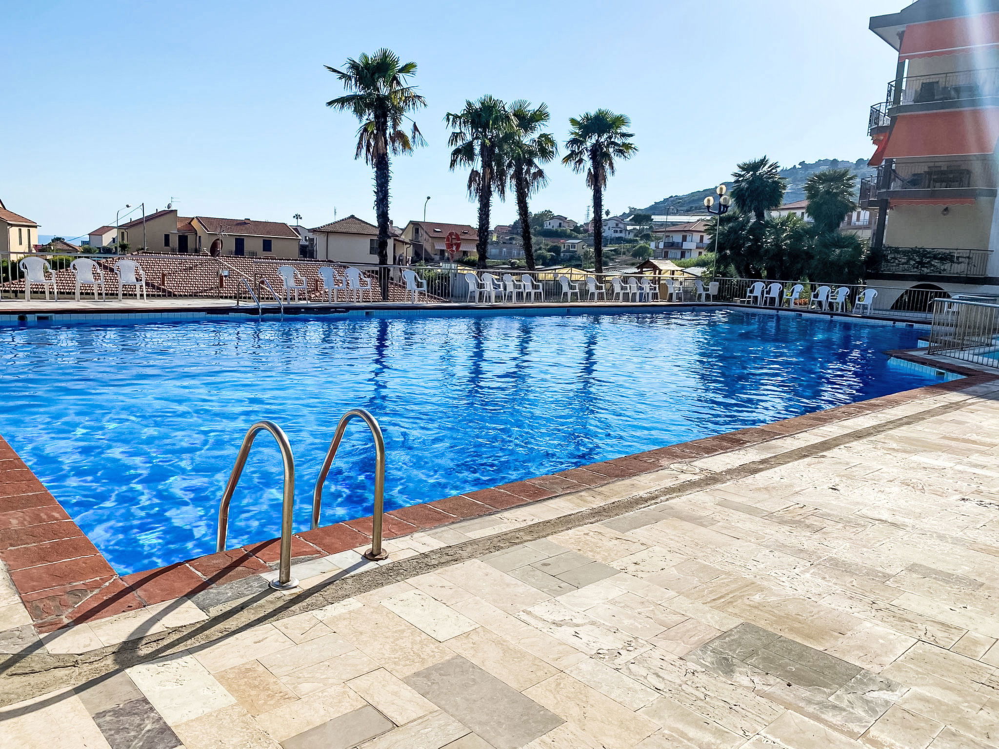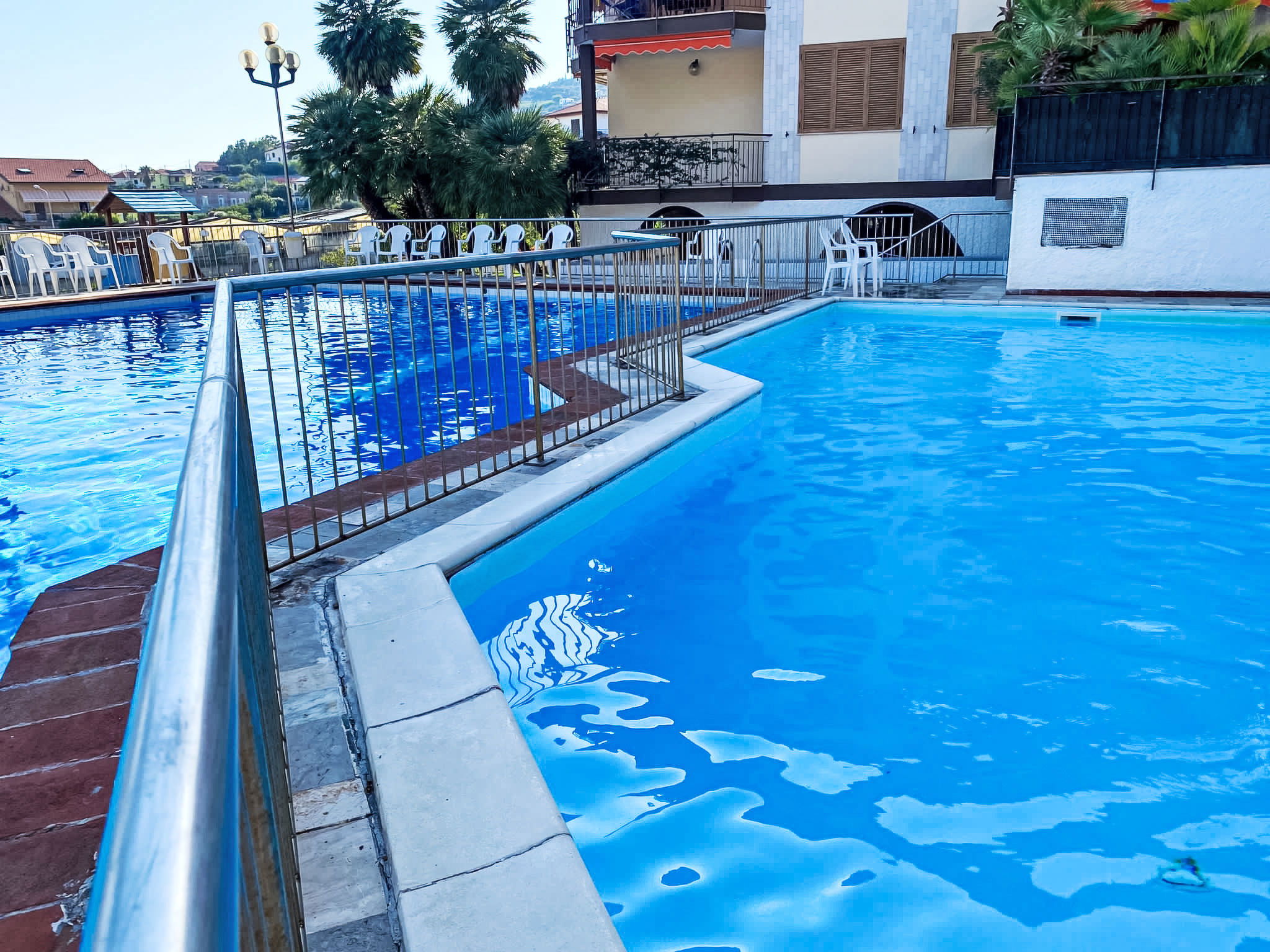 Large, beautiful resort, 3 storeys, renovated, surrounded by trees and meadows. On the outskirts Costarainera, outside the resort, 1.5 km from the centre of San Lorenzo al Mare, in a sunny position on top of a hill, in the residential district, traffic calmed area, 400 m from the sea. For shared use: natural state property, swimming pool fenced (30 x 15 m, depth 200 - 500 cm, seasonal availability: 15.Jun. - 30.Sep. pool opening hours: 09:00-13:00 and 15:00-19:00) with salt water and salt-electrolysis pool-cleaning system. Children's pool, outdoor shower, tennis (1 x hard court), floodlit (extra), boccia. In the house: lift, storage room for bicycles. Steep motor access to 50 m from the house. Public parking. Grocery 2 km, supermarket 2 km, shopping centre 2 km, restaurant 2 km, bar 500 m, bakery 2 km, café 2 km, bicycle rental 2 km, bus stop 4.1 km, sandy beach "San Lorenzo al Mare" 400 m. Tennis 20 m, cycle lane 2 km. Nearby attractions: Radweg auf der alten Bahnlinie am Meer 400 m. Obligation to wear bathing caps.
