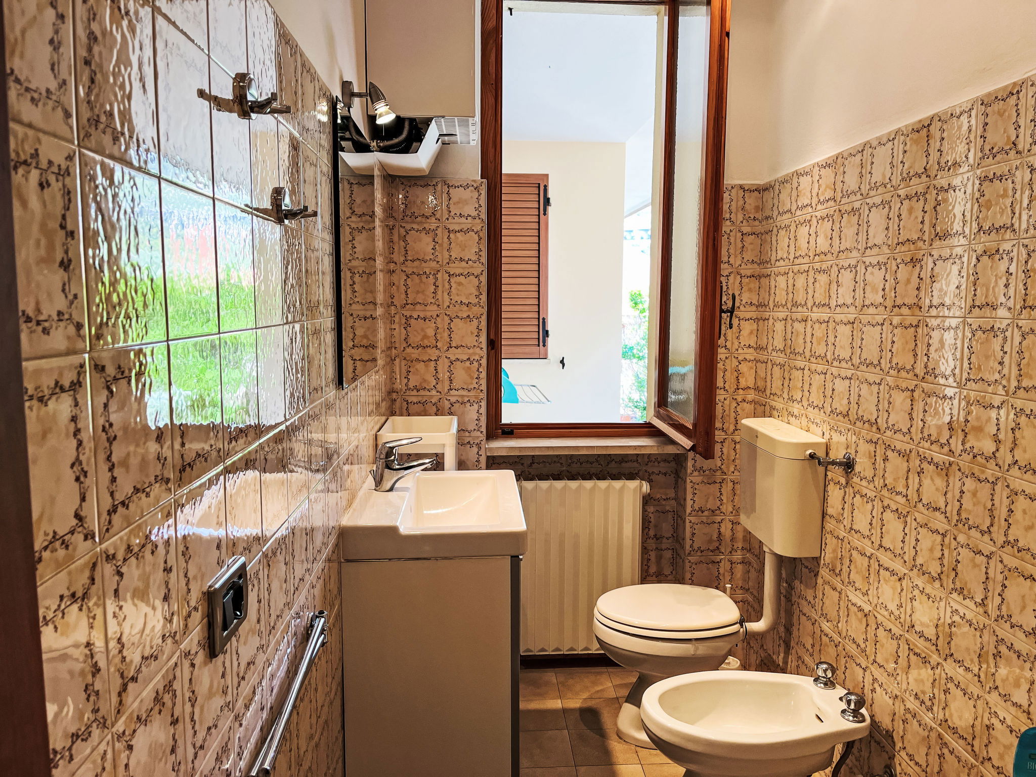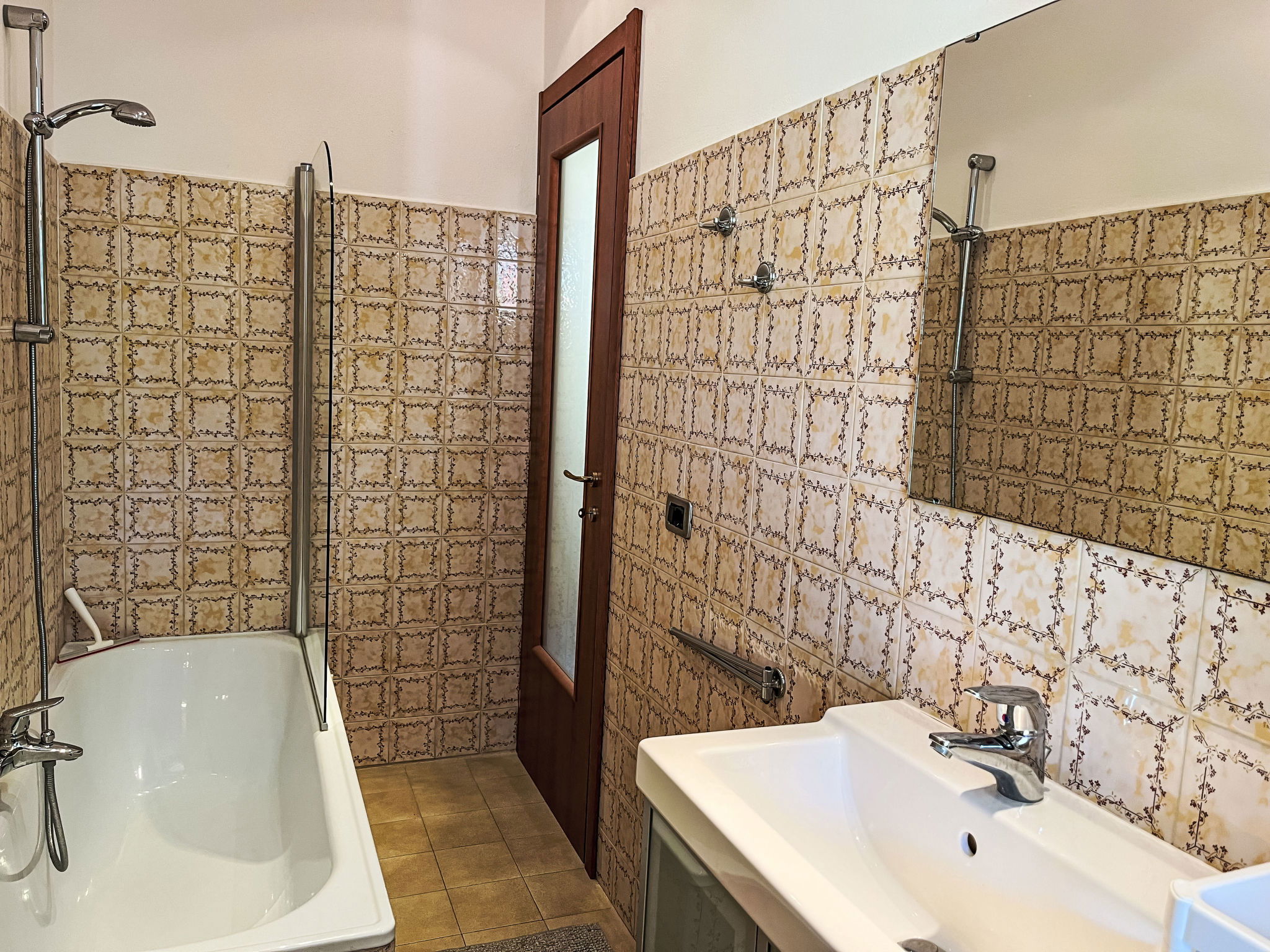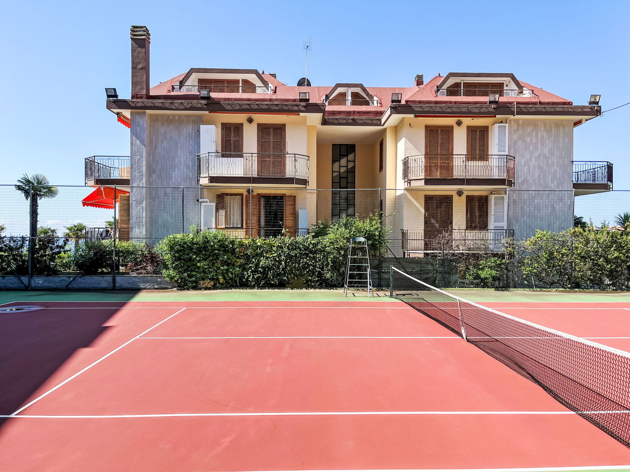 Large, beautiful resort, 3 storeys, renovated, surrounded by trees and meadows. On the outskirts Costarainera, outside the resort, 1.5 km from the centre of San Lorenzo al Mare, in a sunny position on top of a hill, in the residential district, traffic calmed area, 400 m from the sea. For shared use: natural state property, swimming pool fenced (30 x 15 m, depth 200 - 500 cm, seasonal availability: 15.Jun. - 30.Sep. pool opening hours: 09:00-13:00 and 15:00-19:00) with salt water and salt-electrolysis pool-cleaning system. Children's pool, outdoor shower, tennis (1 x hard court), floodlit (extra), boccia. In the house: lift, storage room for bicycles. Steep motor access to 50 m from the house. Public parking. Grocery 2 km, supermarket 2 km, shopping centre 2 km, restaurant 2 km, bar 500 m, bakery 2 km, café 2 km, bicycle rental 2 km, bus stop 4.1 km, sandy beach "San Lorenzo al Mare" 400 m. Tennis 20 m, cycle lane 2 km. Nearby attractions: Radweg auf der alten Bahnlinie am Meer 400 m. Obligation to wear bathing caps.