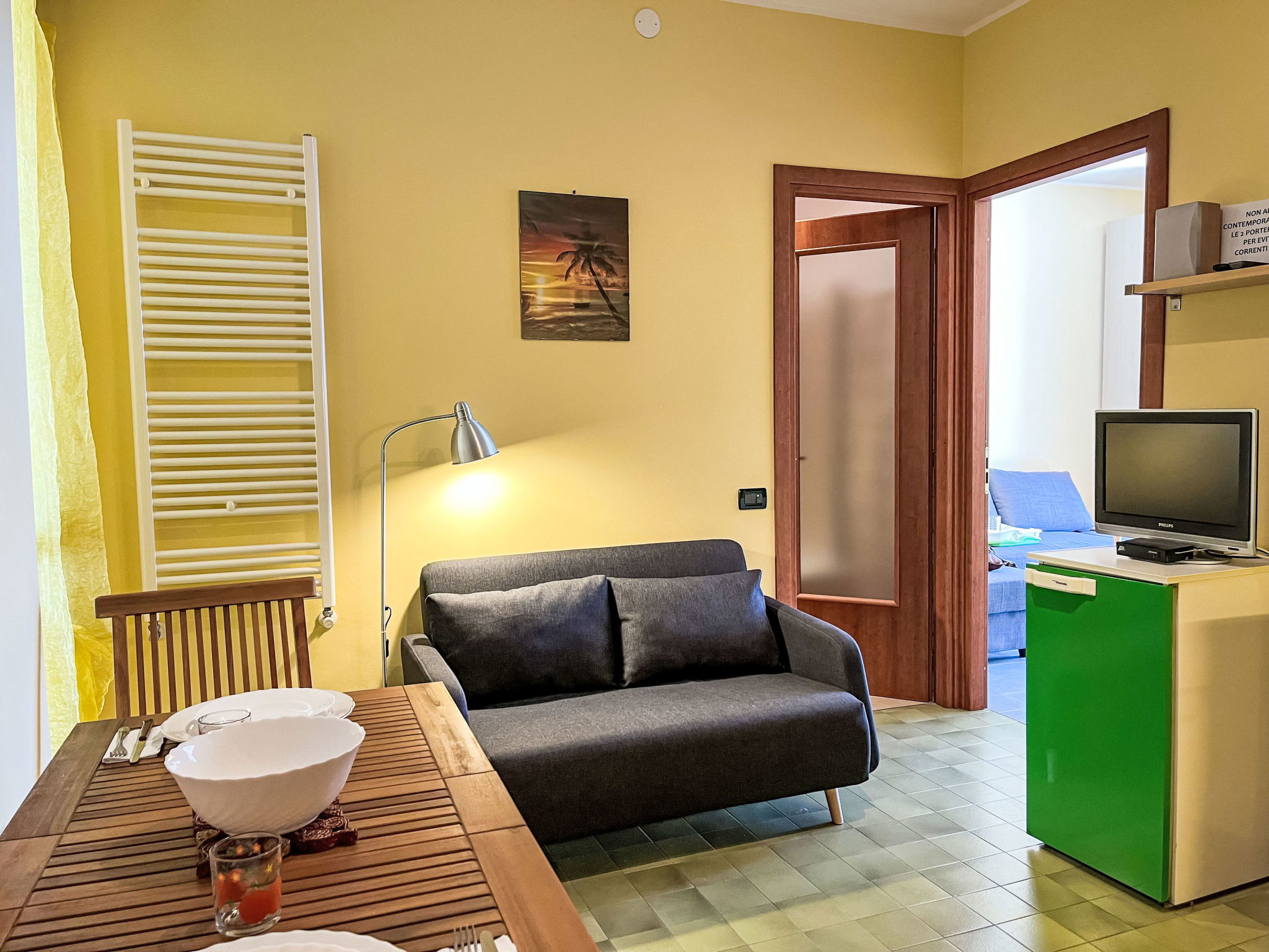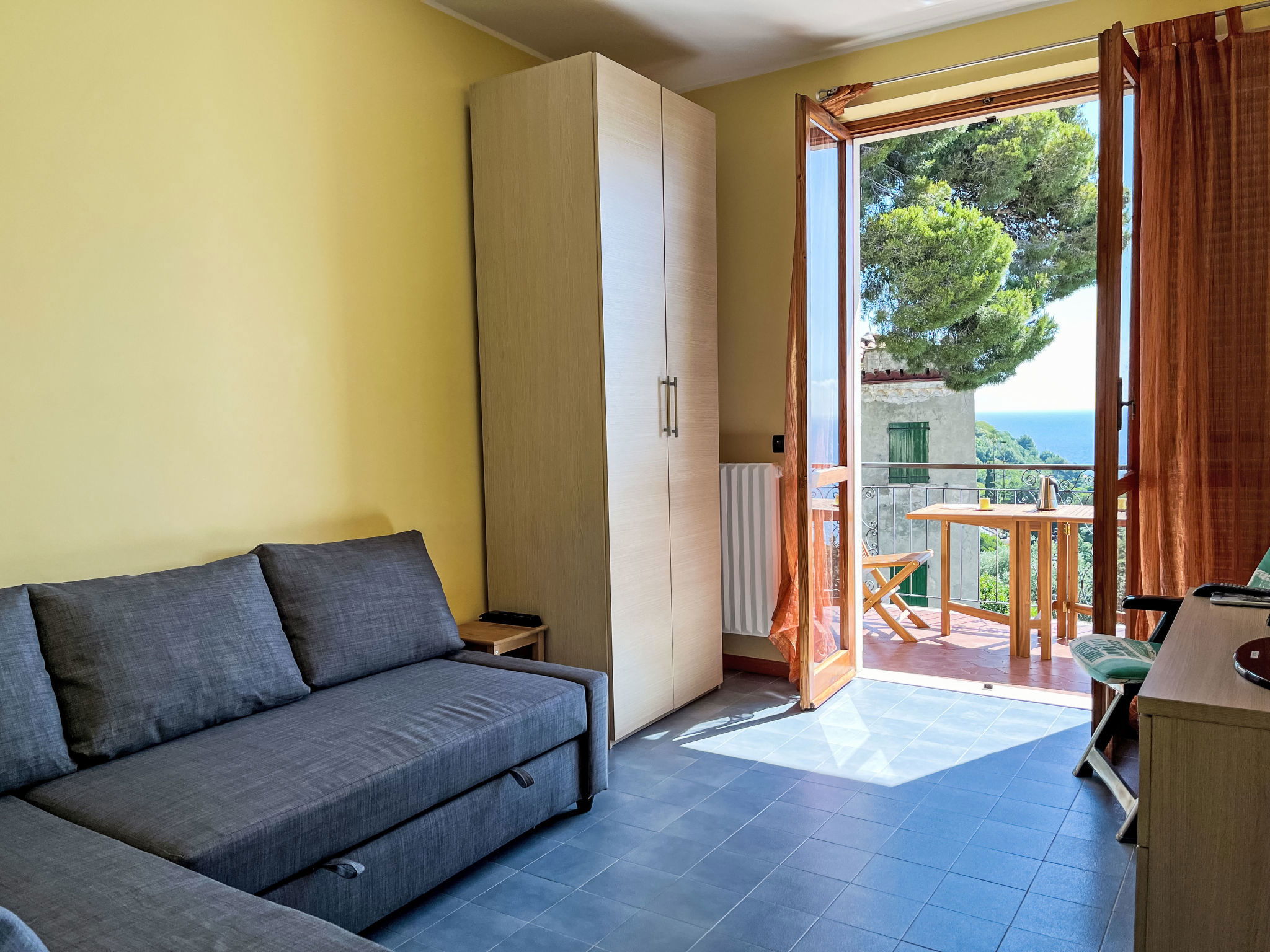 "11 Edera", 2-room apartment 40 m2 on 3rd floor. Practical and beautiful furnishings: living/sleeping room with 1 double sofabed (1 x 160 cm, length 200 cm), satellite TV. Exit to the balcony. Living/sleeping room with 1 sofabed (100 cm, length 190 cm), dining table and digital TV. Kitchenette (2 induction hot plates, toaster, electric coffee machine) with dining table, hi-fi system. Bath/bidet/WC. Gas heating. Heating available only from 01.11. to 01.05. Large balcony 6 m2. Balcony furniture. Beautiful panoramic view of the sea and the mountains. Maximum 1 pet/ dog allowed. IT008024C2CNKNSN63