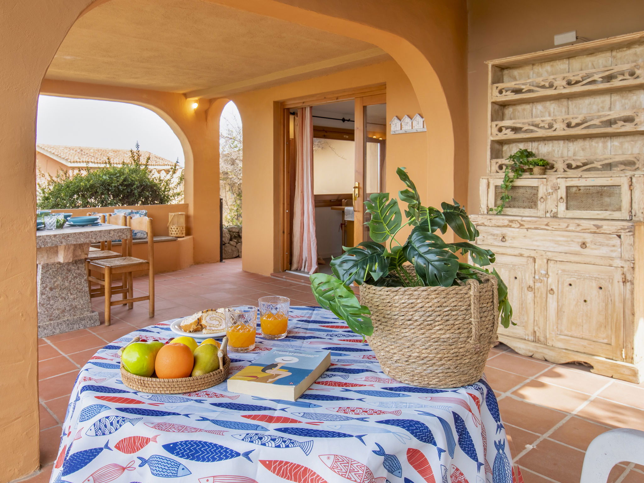 "0/1/M - Marineledda", 4-room apartment 85 m2, on the ground floor. Comfortable and cosy furnishings: living/dining room with dining table and TV. Exit to the terrace. 1 double bedroom with air conditioning and forced-air heating. 1 room with 1 x 2 bunk beds, air conditioning and forced-air heating. 1 small room with 1 bed. Kitchenette (oven, dishwasher, 4 gas rings, toaster, kettle). Exit to the veranda. 2 showers/bidet/WC. Air-conditioning, forced-air heating. Heating not available in all rooms. Terrace roofed. Terrace furniture. Marvellous view of the sea. Facilities: washing machine, iron, hair dryer. Parking. Maximum 1 pet/ dog allowed. Please note: the washing machine for shared use with the other apartments in the building is located in the basement. IT090083B49LW4AY3K