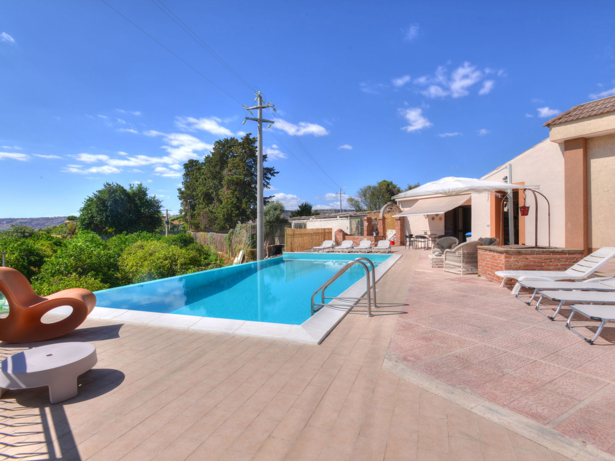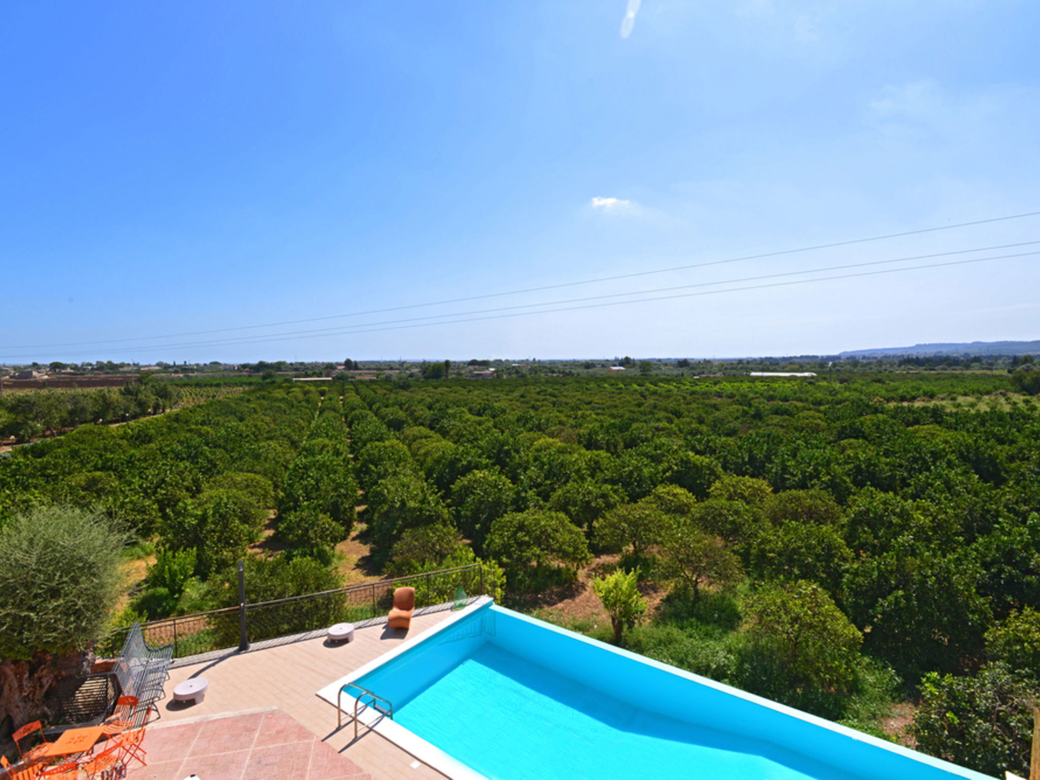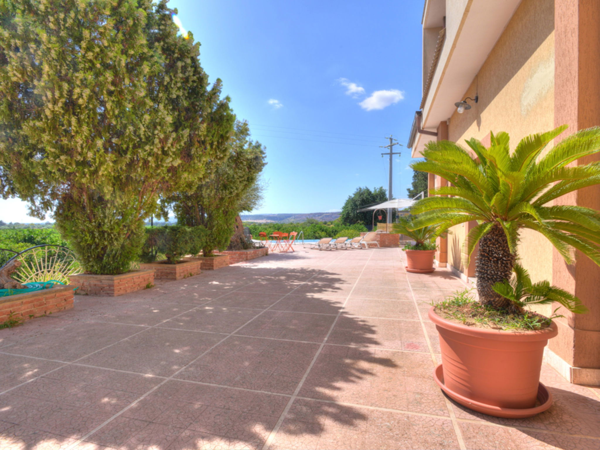 Villa "Smeraldo", surrounded by trees. 16 km from the centre of Siracusa, 4 km from the centre of Floridia, in a secluded, sunny position, 18 km from the sea. Private: property 500 m2, swimming pool (11 x 5 m, depth 140 - 200 cm, seasonal availability: 13.Jun. - 03.Oct.). Outdoor shower, pool maintenance by the owner/gardener. Stepped path to the house. Parking (for 3 cars) on the premises. Grocery 4 km, supermarket 5 km, restaurant 4 km, bar 4 km, bus stop "Floridia" 4 km, sandy beach "Fontane Bianche" 15 km. Nearby attractions: Necropoli di Pantalica 32 km, Noto 34 km, Riserva Naturale Faunistica Vendicari 40 km, Modica 68 km, Ragusa 70 km, Catania 70 km. Please note: car recommended. Animals in the neighbourhood. The property has a citrus grove, workers will occasionally be present for maintenance. The owner will be on the property daily to look after the animals in an enclosure.
