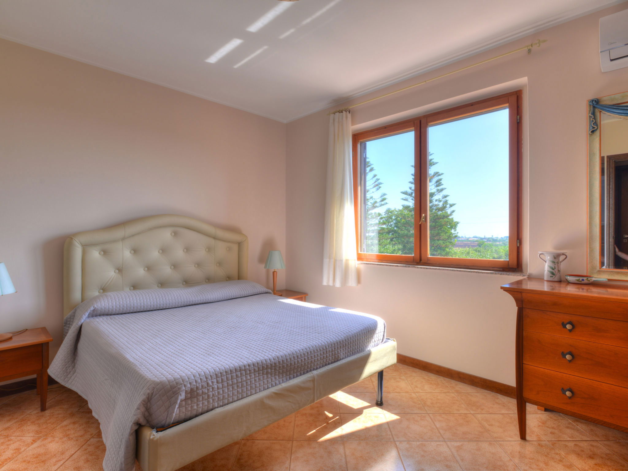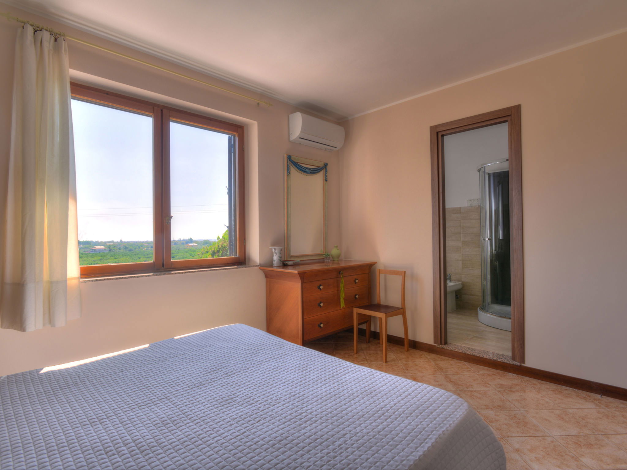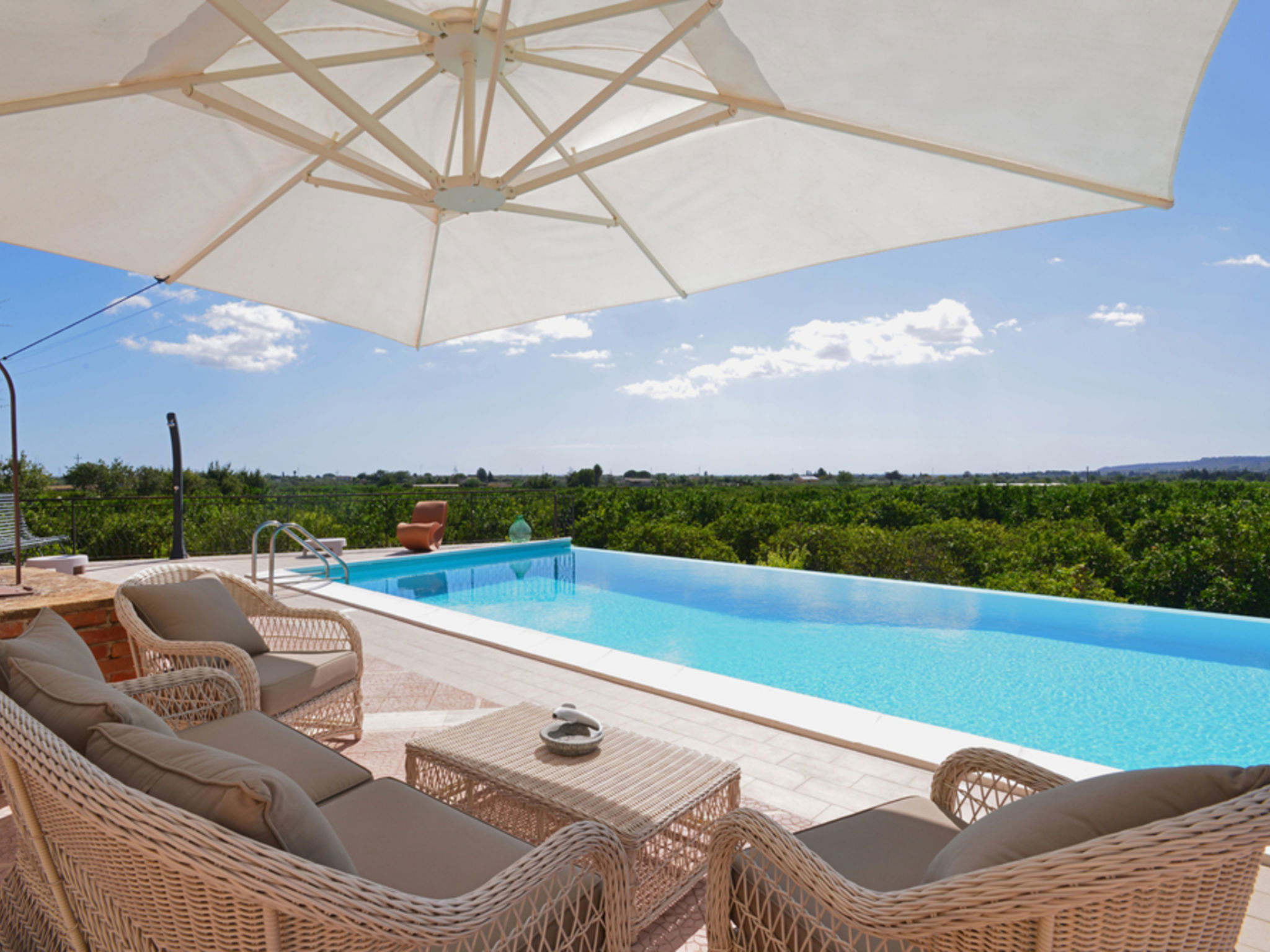 Villa "Smeraldo", surrounded by trees. 16 km from the centre of Siracusa, 4 km from the centre of Floridia, in a secluded, sunny position, 18 km from the sea. Private: property 500 m2, swimming pool (11 x 5 m, depth 140 - 200 cm, seasonal availability: 13.Jun. - 03.Oct.). Outdoor shower, pool maintenance by the owner/gardener. Stepped path to the house. Parking (for 3 cars) on the premises. Grocery 4 km, supermarket 5 km, restaurant 4 km, bar 4 km, bus stop "Floridia" 4 km, sandy beach "Fontane Bianche" 15 km. Nearby attractions: Necropoli di Pantalica 32 km, Noto 34 km, Riserva Naturale Faunistica Vendicari 40 km, Modica 68 km, Ragusa 70 km, Catania 70 km. Please note: car recommended. Animals in the neighbourhood. The property has a citrus grove, workers will occasionally be present for maintenance. The owner will be on the property daily to look after the animals in an enclosure.