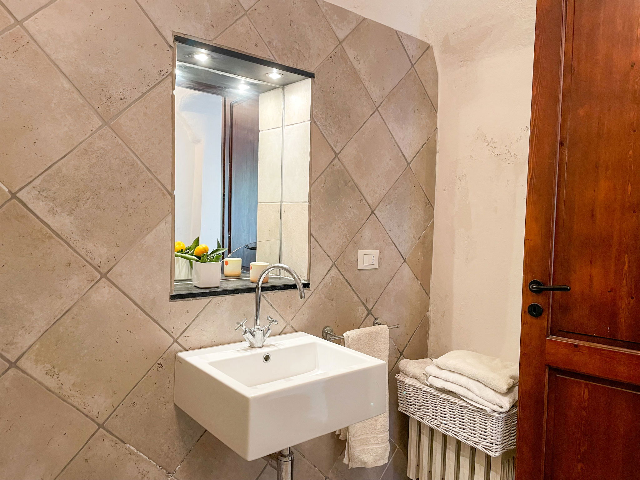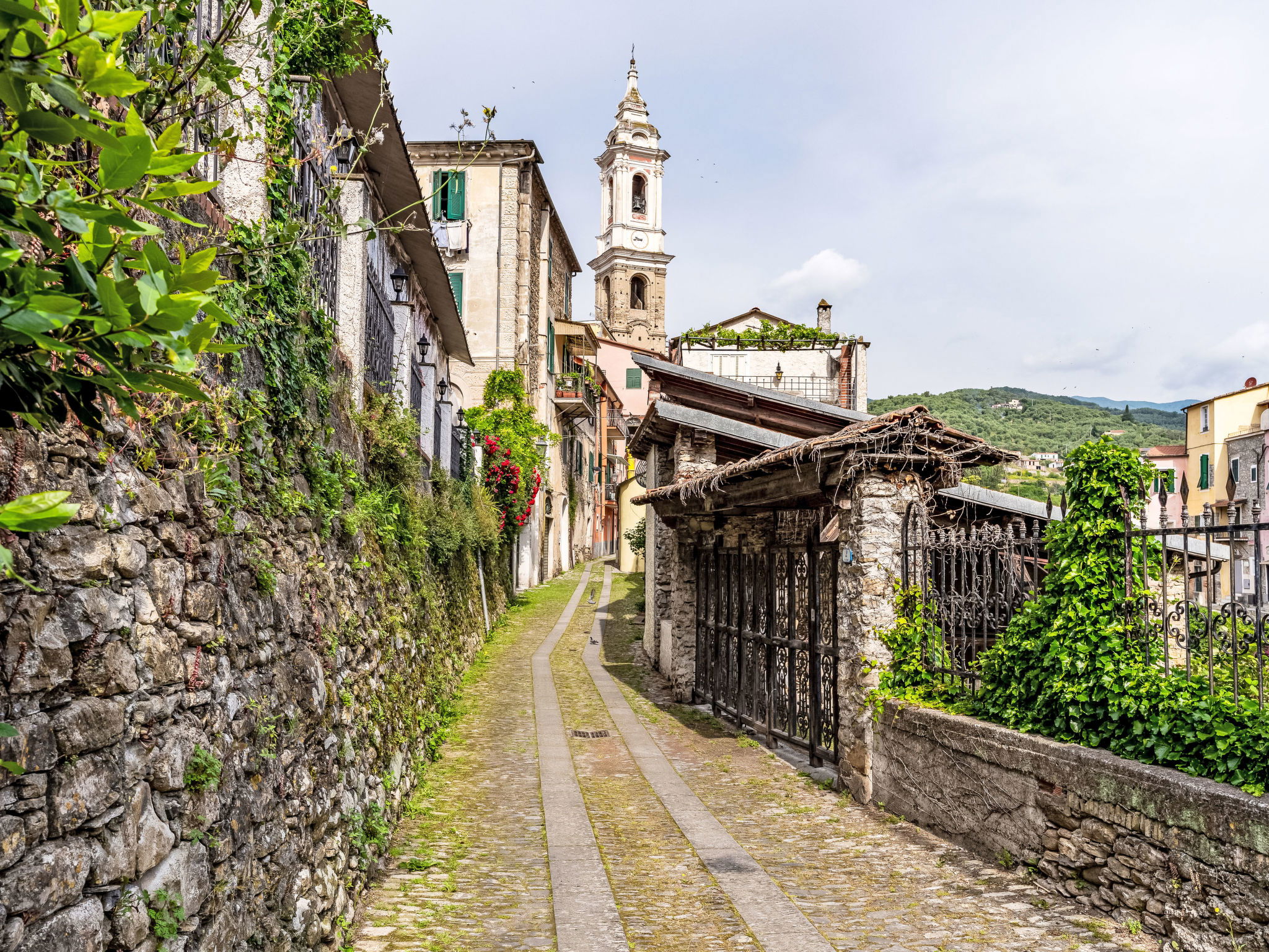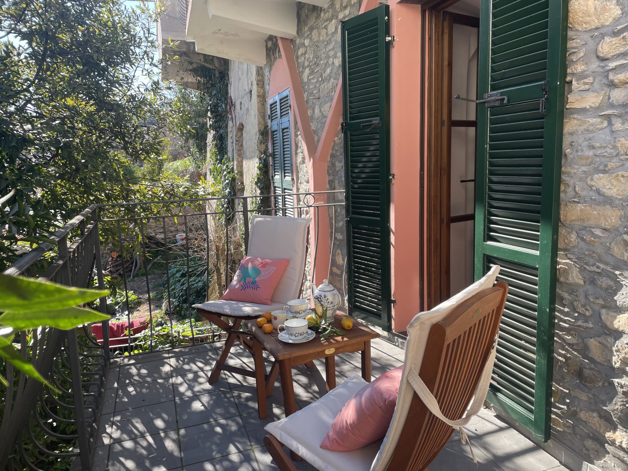 Historical 2-family house, 2 storeys, semi-detached, renovated. In the centre of Dolcedo 10 km from the centre of Imperia Porto Maurizio, 30 km from the centre of San Remo, excellent location: right in the centre but still quiet, 9 km from the sea. 20 m steep footpath to the house. Public parking 50 m. Shop 50 m, supermarket 9 km, restaurant, bar, café 50 m, bus stop 100 m. Riding stable 4 km, cycle lane 9 km. Hiking paths: Monte Faudo, Val Prino. Please note: car recommended.