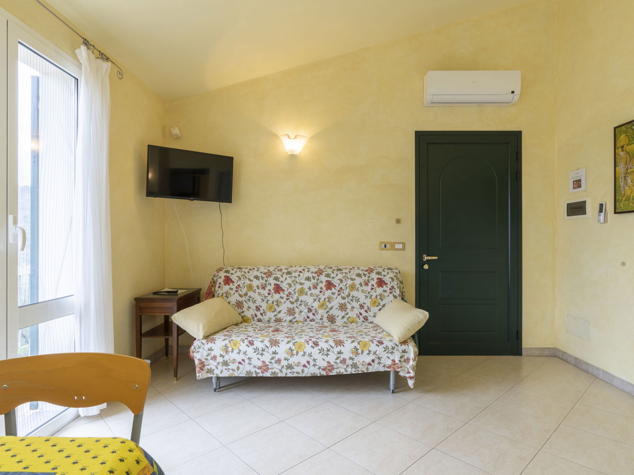 "Joy ", 3-room apartment 50 m2 on 1st floor. Object suitable for 5 adults + 1 child. Bright, modern and cosy furnishings: living/sleeping room with 1 double sofabed, dining table and satellite TV. Exit to the balcony. 1 room with 1 double bed (160 cm), shower/WC. 1 room with 2 beds (80 cm), shower/WC. Open kitchen (2 gas rings, toaster, microwave, electric coffee machine). Air-conditioning, underfloor heating. Heating available only from 01.11. to 01.04. Balcony. Balcony furniture. Very beautiful panoramic view of the valley and the countryside. Facilities: children's high chair, hair dryer. Internet (WiFi, free). Parking (fenced). Please note: non-smokers only. Maximum 1 pet/ dog allowed. Private entrance. IT008031C2LV7D68ZO