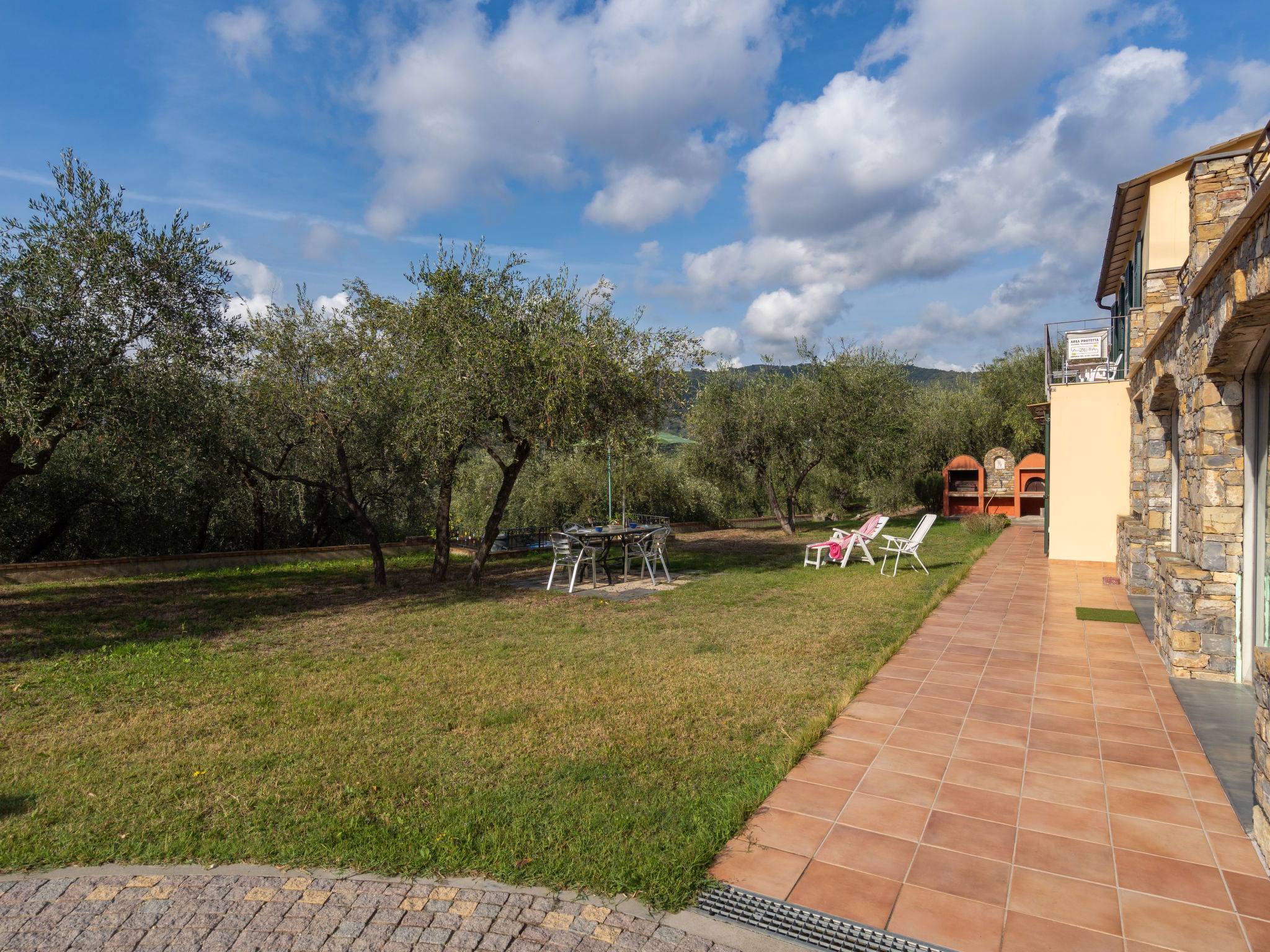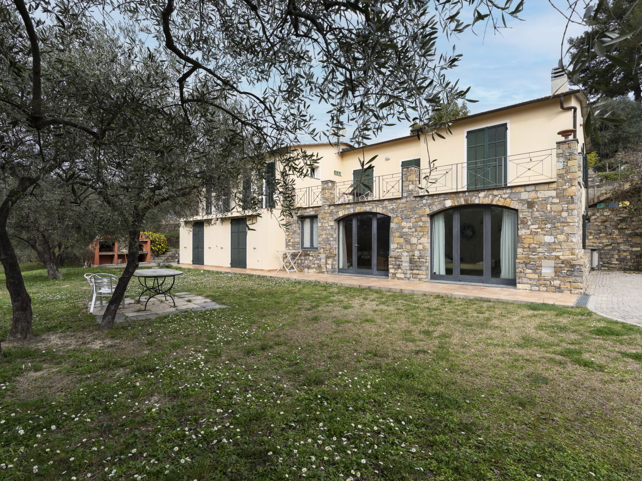 Villa "Costadoro", surrounded by trees and meadows. 4 apartments in the residence. In the district of Costadoro 3.5 km from the centre of Imperia, 8 km from the centre of Diano Marina, 30 km from the centre of San Remo, in a secluded, sunny, elevated position on top of a hill, 4 km from the sea, in the countryside. For shared use: large, beautiful, well-kept garden 12'000 m2 (fenced) with plants and flowers, orchard. Patio, garden furniture, barbecue. In the house: washing machine (for shared use). Parking (for 6 cars) on the premises. Grocery 200 m, supermarket 2.5 km, bar 200 m, bus stop 1.9 km, sandy beach "Imperia" 4 km. Walking paths from the house 100 m, cycle lane 4 km. Nearby attractions: Monte Carlo Monacco 52 km, Cervo 8 km. Please note: car recommended.