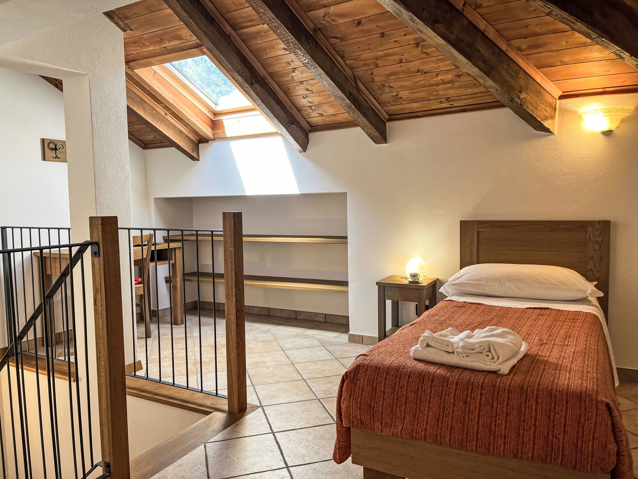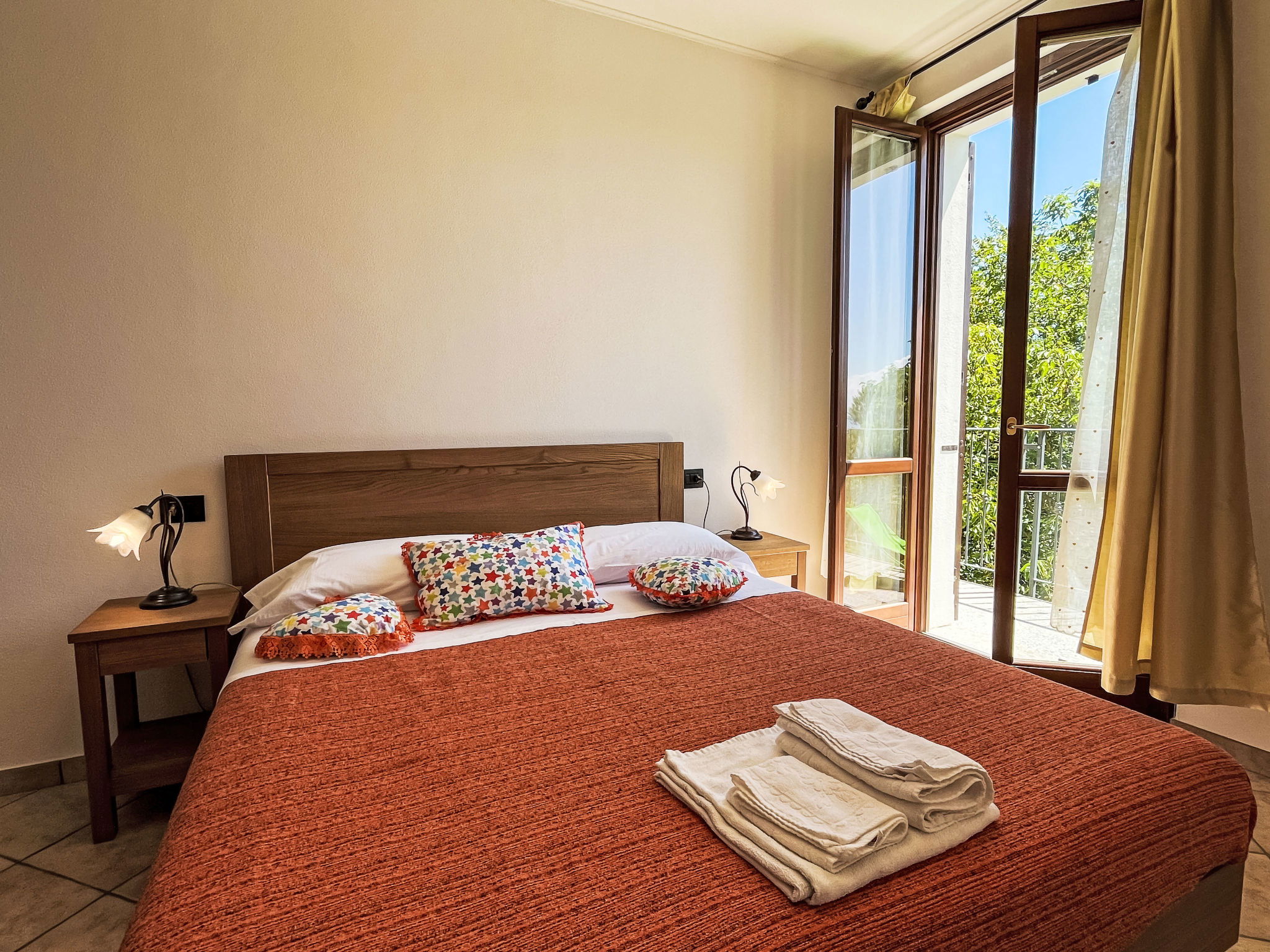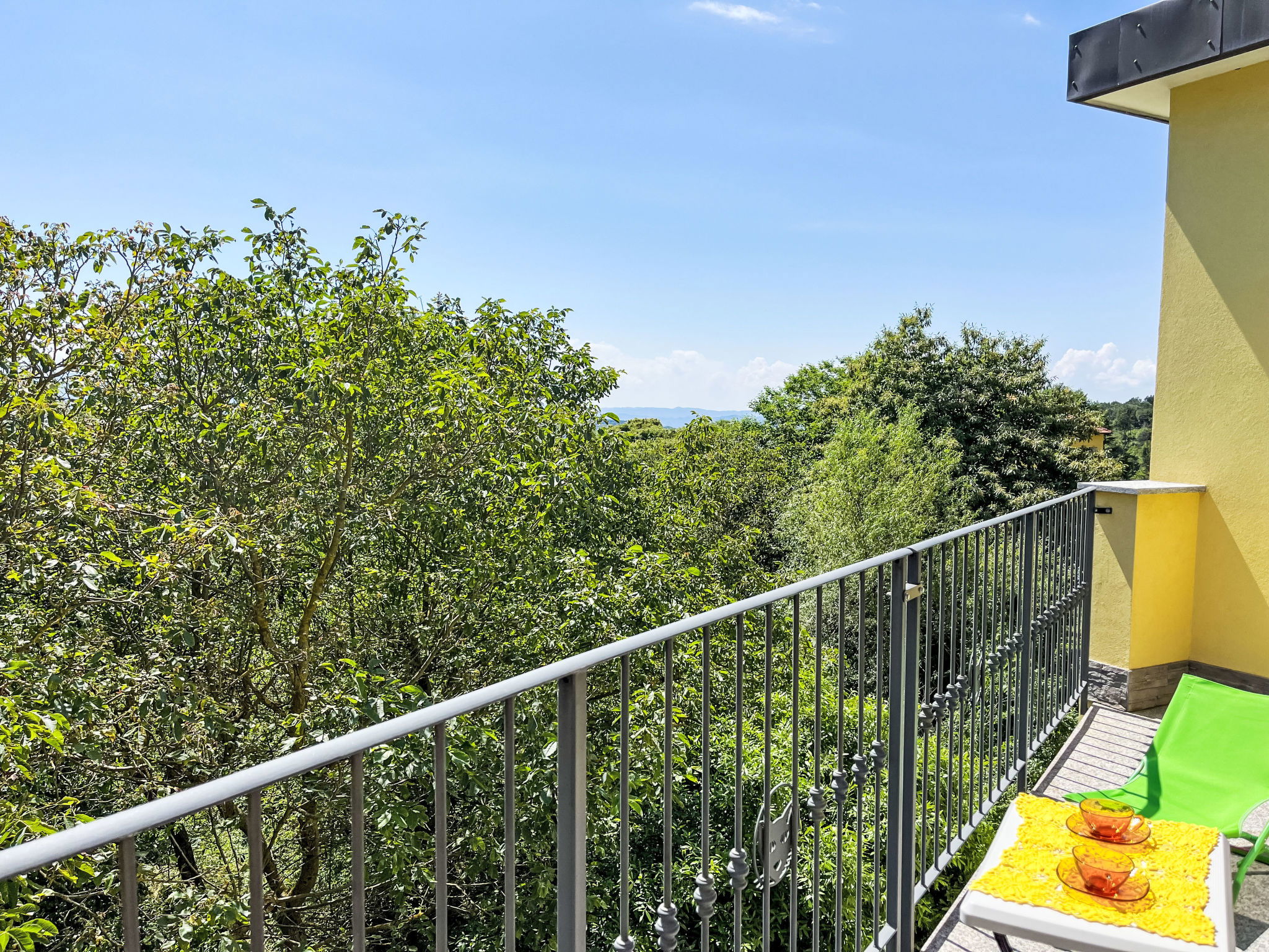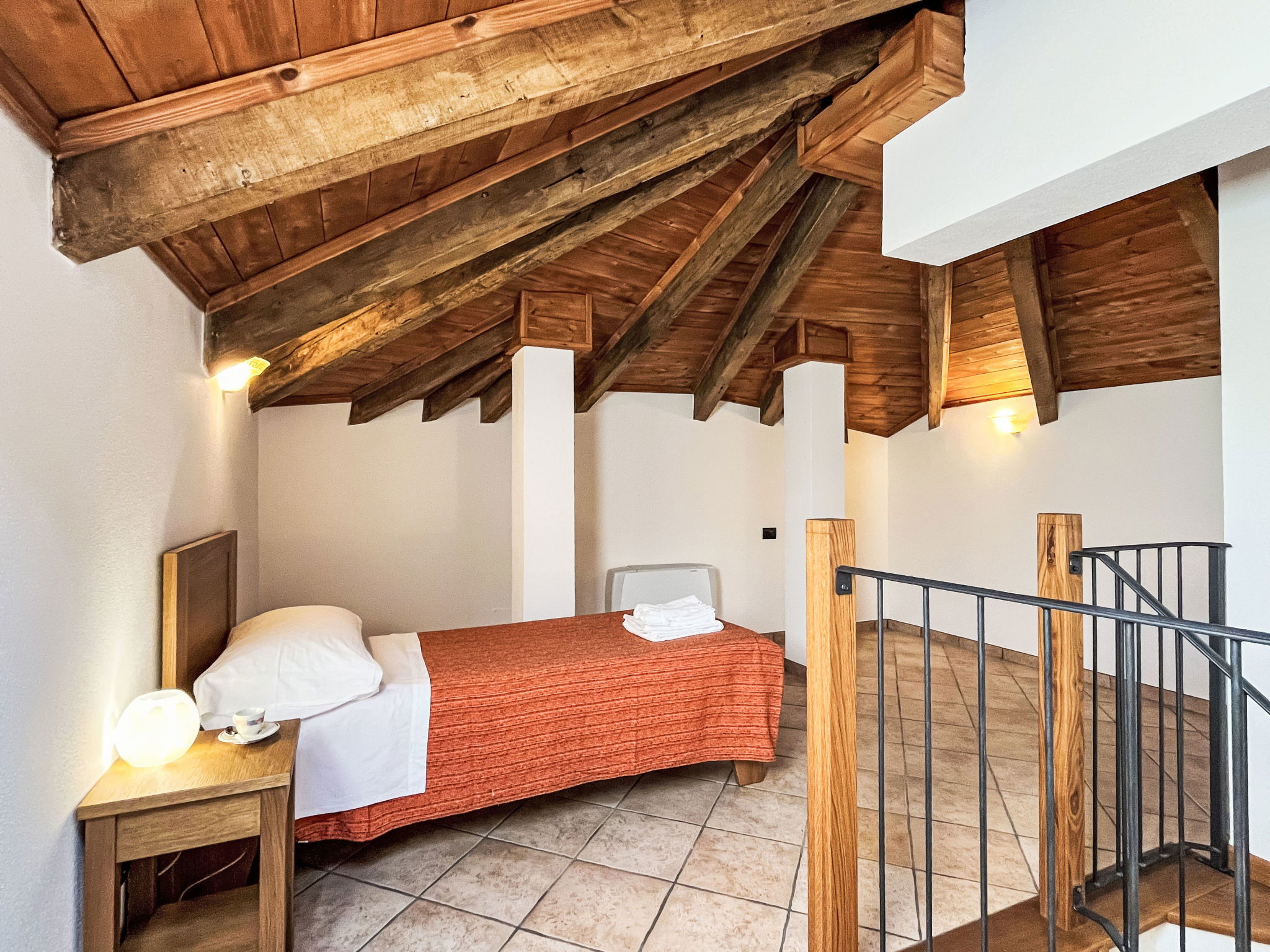 "Noce ", 3-room apartment 55 m2 on 2 levels, on the upper floor. Beautiful and cosy furnishings: living/sleeping room with 1 double sofabed (160 cm), dining table and satellite TV. Exit to the balcony. 1 room with 1 french bed (160 cm). Open kitchen (oven, dishwasher, 4 gas rings, kettle, freezer, electric coffee machine). Shower/bidet/WC. Heating available only from 01.10. to 15.05. Top floor: 1 room with sloping ceilings with rooflight with 1 bed (80 cm), separate WC. Heating. Balcony. Balcony furniture. Beautiful panoramic view of the mountains and the countryside. Facilities: washing machine, iron, children's high chair, baby cot. Internet (WiFi, free). Please note: non-smokers only. Maximum 2 pets/ dogs allowed. Private entrance. IT009056B452IYH6GR