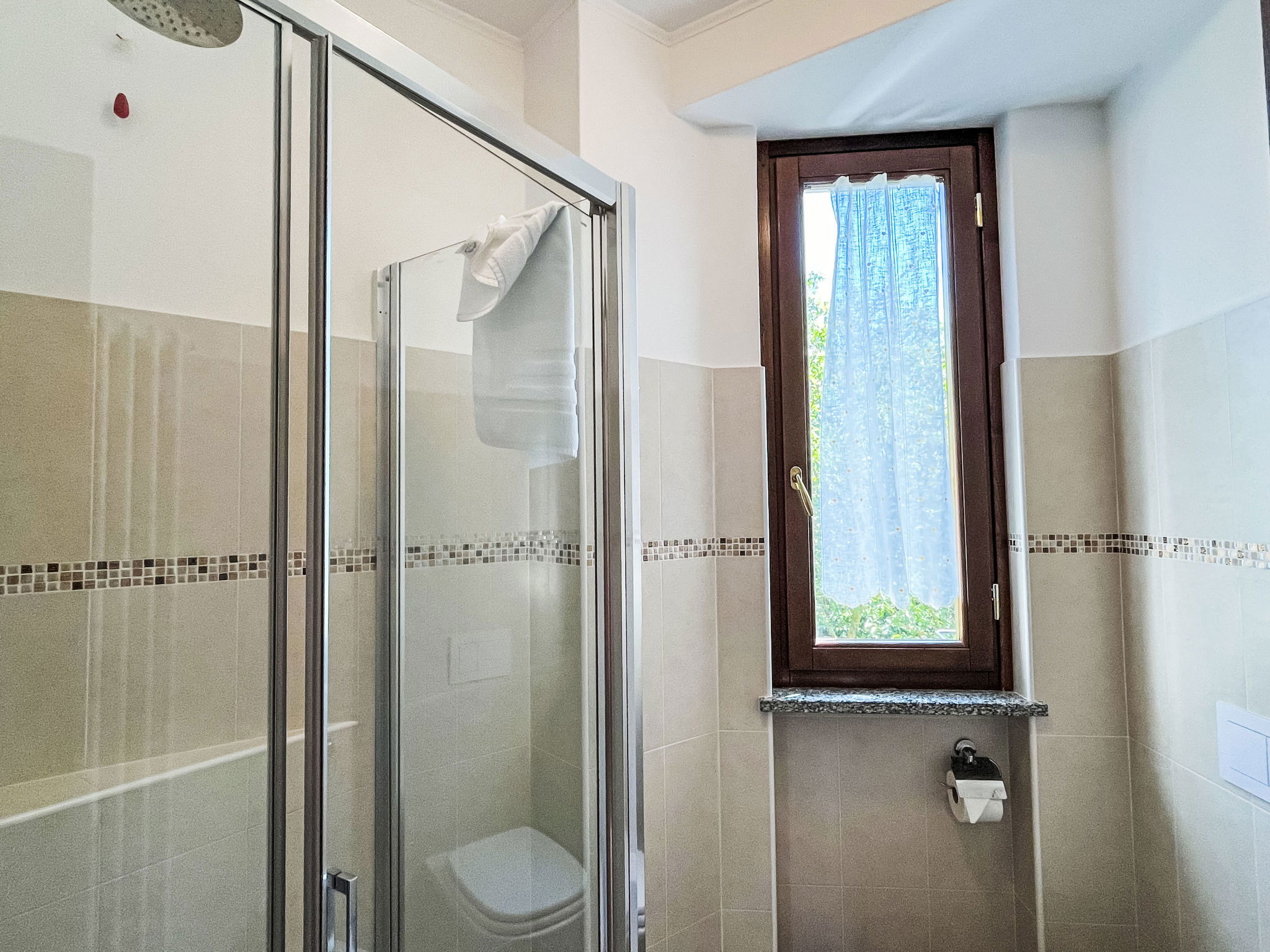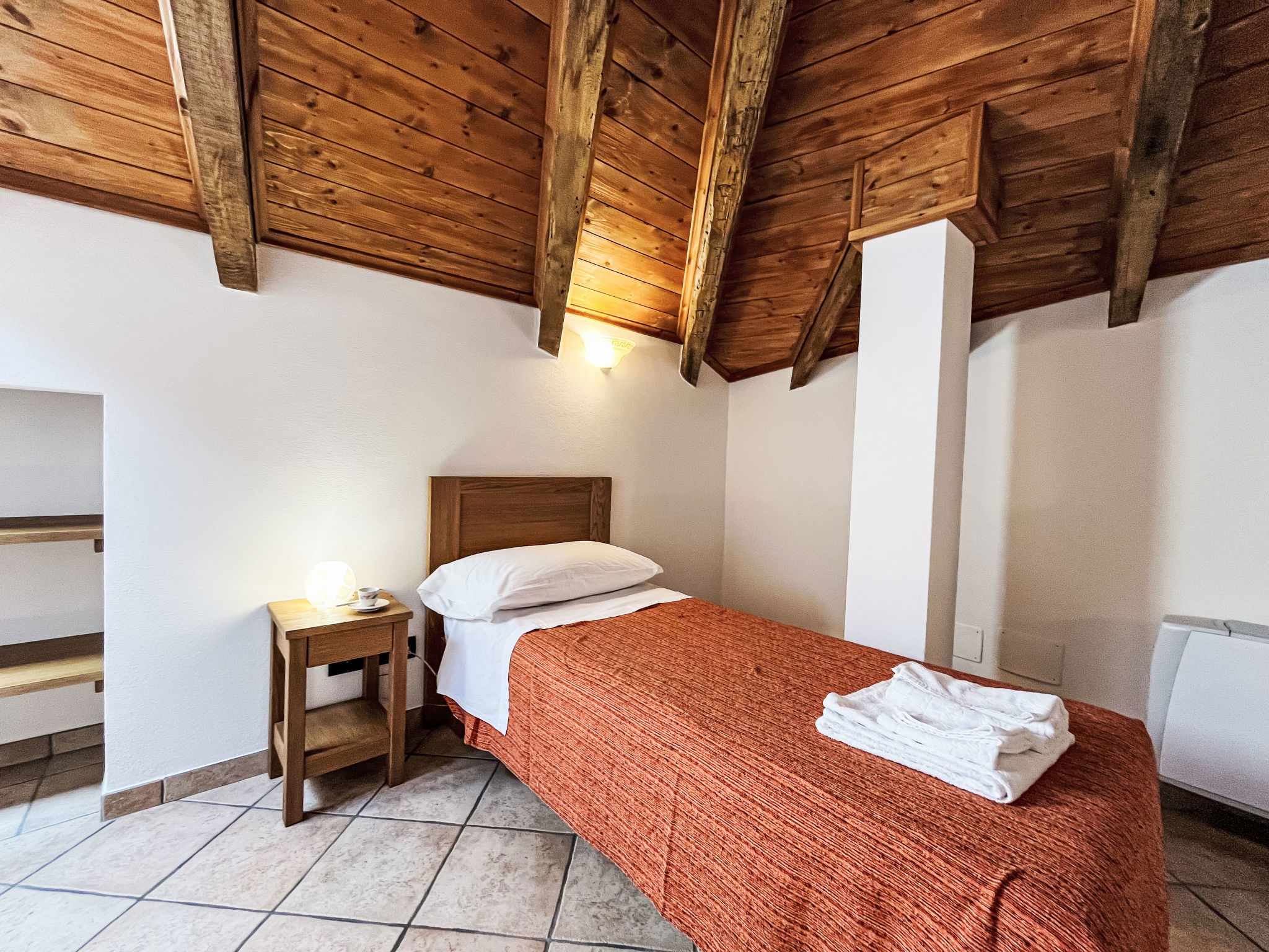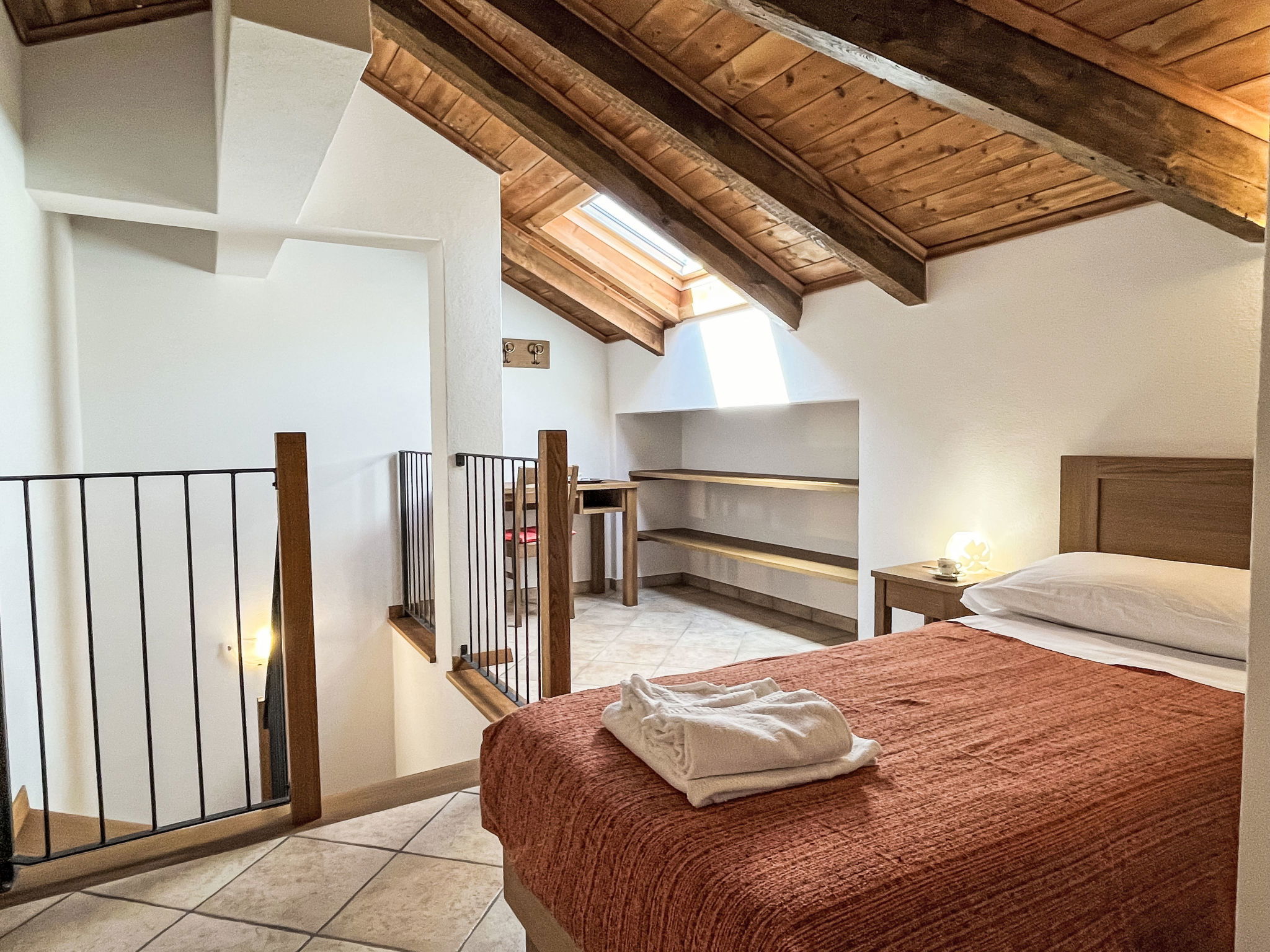 "Noce ", 3-room apartment 55 m2 on 2 levels, on the upper floor. Beautiful and cosy furnishings: living/sleeping room with 1 double sofabed (160 cm), dining table and satellite TV. Exit to the balcony. 1 room with 1 french bed (160 cm). Open kitchen (oven, dishwasher, 4 gas rings, kettle, freezer, electric coffee machine). Shower/bidet/WC. Heating available only from 01.10. to 15.05. Top floor: 1 room with sloping ceilings with rooflight with 1 bed (80 cm), separate WC. Heating. Balcony. Balcony furniture. Beautiful panoramic view of the mountains and the countryside. Facilities: washing machine, iron, children's high chair, baby cot. Internet (WiFi, free). Please note: non-smokers only. Maximum 2 pets/ dogs allowed. Private entrance. IT009056B452IYH6GR