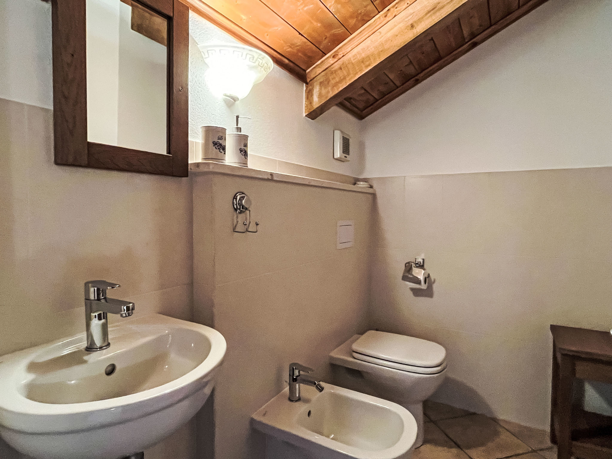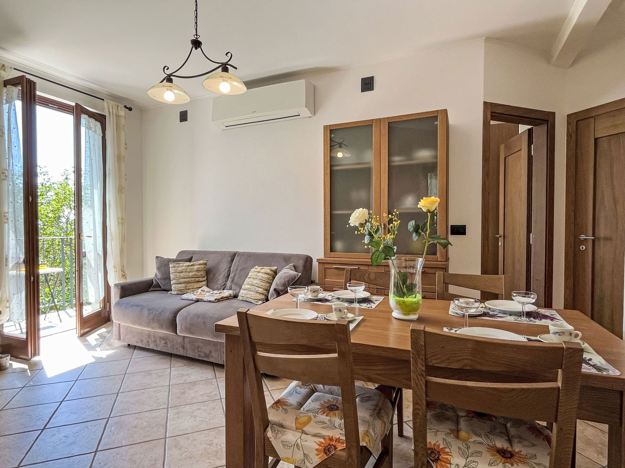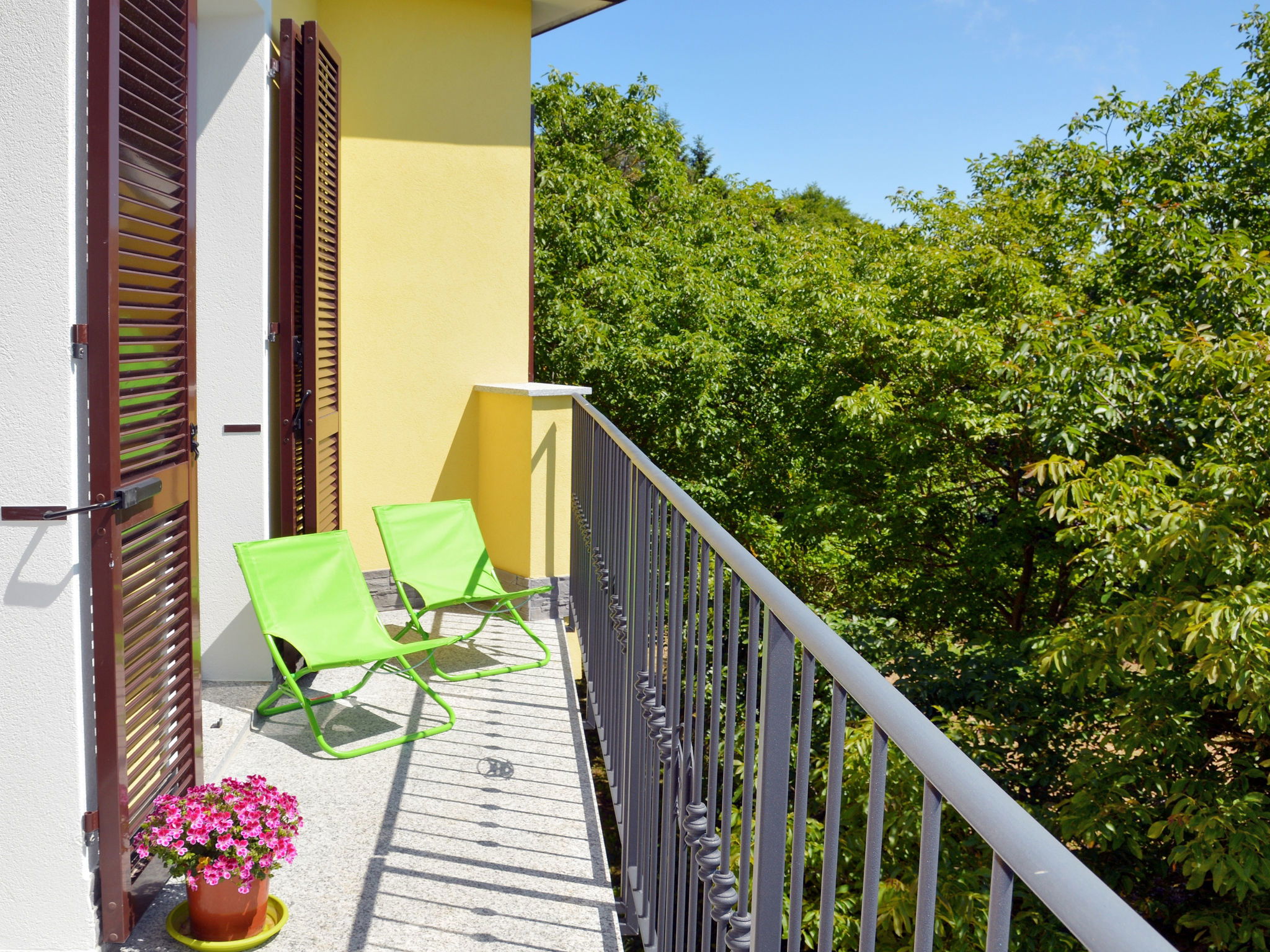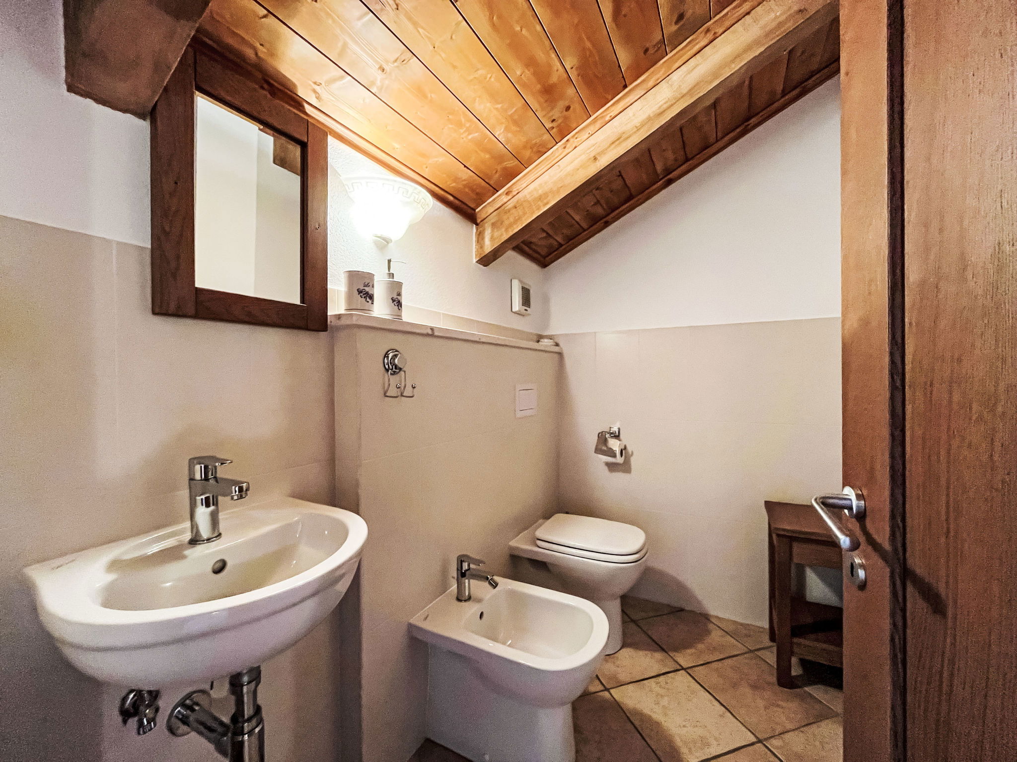 "Noce ", 3-room apartment 55 m2 on 2 levels, on the upper floor. Beautiful and cosy furnishings: living/sleeping room with 1 double sofabed (160 cm), dining table and satellite TV. Exit to the balcony. 1 room with 1 french bed (160 cm). Open kitchen (oven, dishwasher, 4 gas rings, kettle, freezer, electric coffee machine). Shower/bidet/WC. Heating available only from 01.10. to 15.05. Top floor: 1 room with sloping ceilings with rooflight with 1 bed (80 cm), separate WC. Heating. Balcony. Balcony furniture. Beautiful panoramic view of the mountains and the countryside. Facilities: washing machine, iron, children's high chair, baby cot. Internet (WiFi, free). Please note: non-smokers only. Maximum 2 pets/ dogs allowed. Private entrance. IT009056B452IYH6GR