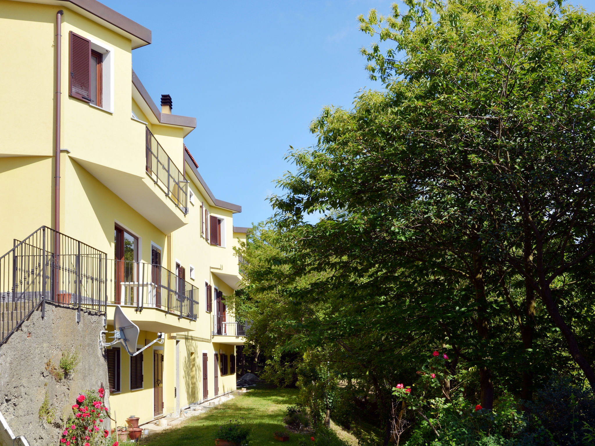 Beautiful residence "Naso di Gatto", 700 m a.s.l., 2 storeys, detached, surrounded by trees and meadows. 7 apartments in the residence. Above San Bartolomeo al Bosco, outside the resort, 16 km from the centre of Savona, 1 km from the edge of the forest, 17 km from the sea, 8 km from the lake, located by a road, in the countryside. For shared use: natural state property 6 ha, large garden with lawn and trees, lawn for sunbathing. Patio, arbour, garden furniture, barbecue, fireplace. In the house: WiFi, storage room for bicycles. Parking (for 15 cars) on the premises. Shop 12 km, grocery 12 km, supermarket 16 km, restaurant 12 km, bar 12 km, bakery 12 km, café 12 km, bus stop 17.9 km, railway station "Savona" 16 km, sandy beach "Savona/Spiaggia delle Fornaci" 17 km. Nearby attractions: Albisola 17 km, Pontinvrea 12 km. Please note: car recommended.