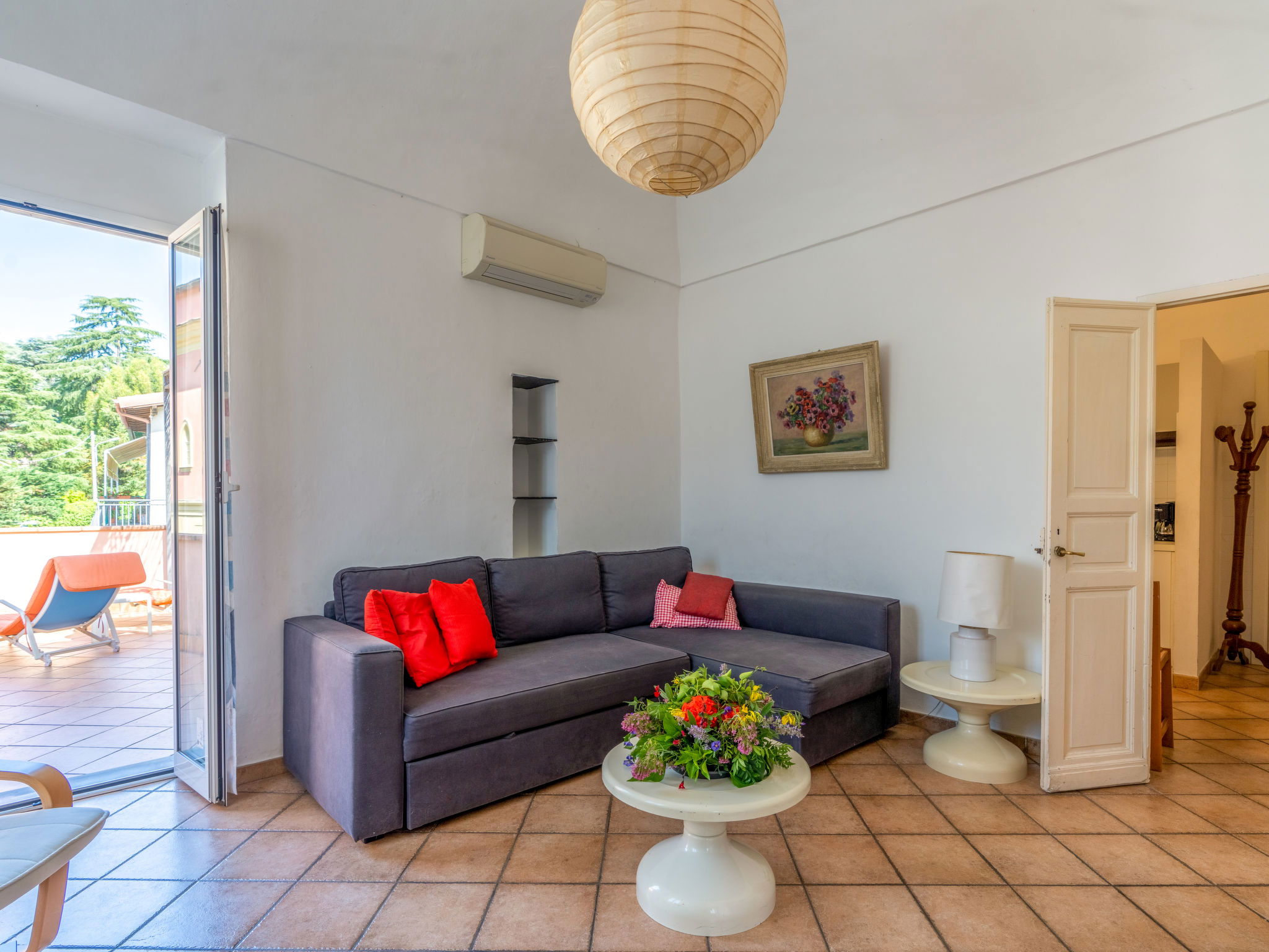 "Sorei", 3-room apartment 80 m2 on 1st floor. Bright, beautiful and cosy furnishings: living/sleeping room with 1 double sofabed (160 cm), satellite TV. Exit to the terrace. 1 room with 1 french bed (160 cm). Exit to the terrace. 1 room with 2 beds. Kitchen (mini-oven, oven, 4 gas rings, toaster, kettle, freezer, electric coffee machine) with dining table. Bath/WC, shower/WC. Electric heating, gas heating, air-conditioning (extra). Terrace partly roofed. Terrace furniture, deck chairs. Beautiful view of the countryside and the resort. Facilities: washing machine, iron, children's high chair, baby cot. Internet (WiFi, free). Maximum 1 pet/ dog allowed. IT008030C25P3SVW65