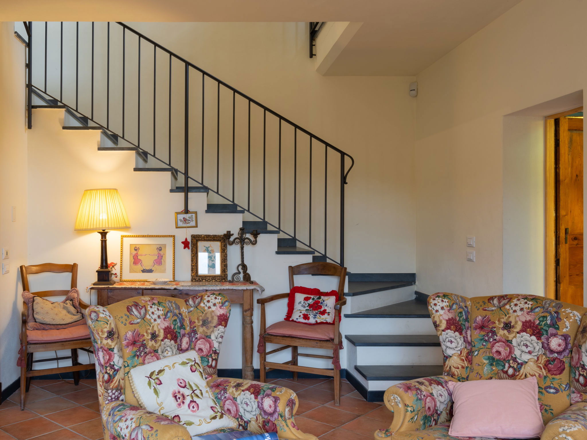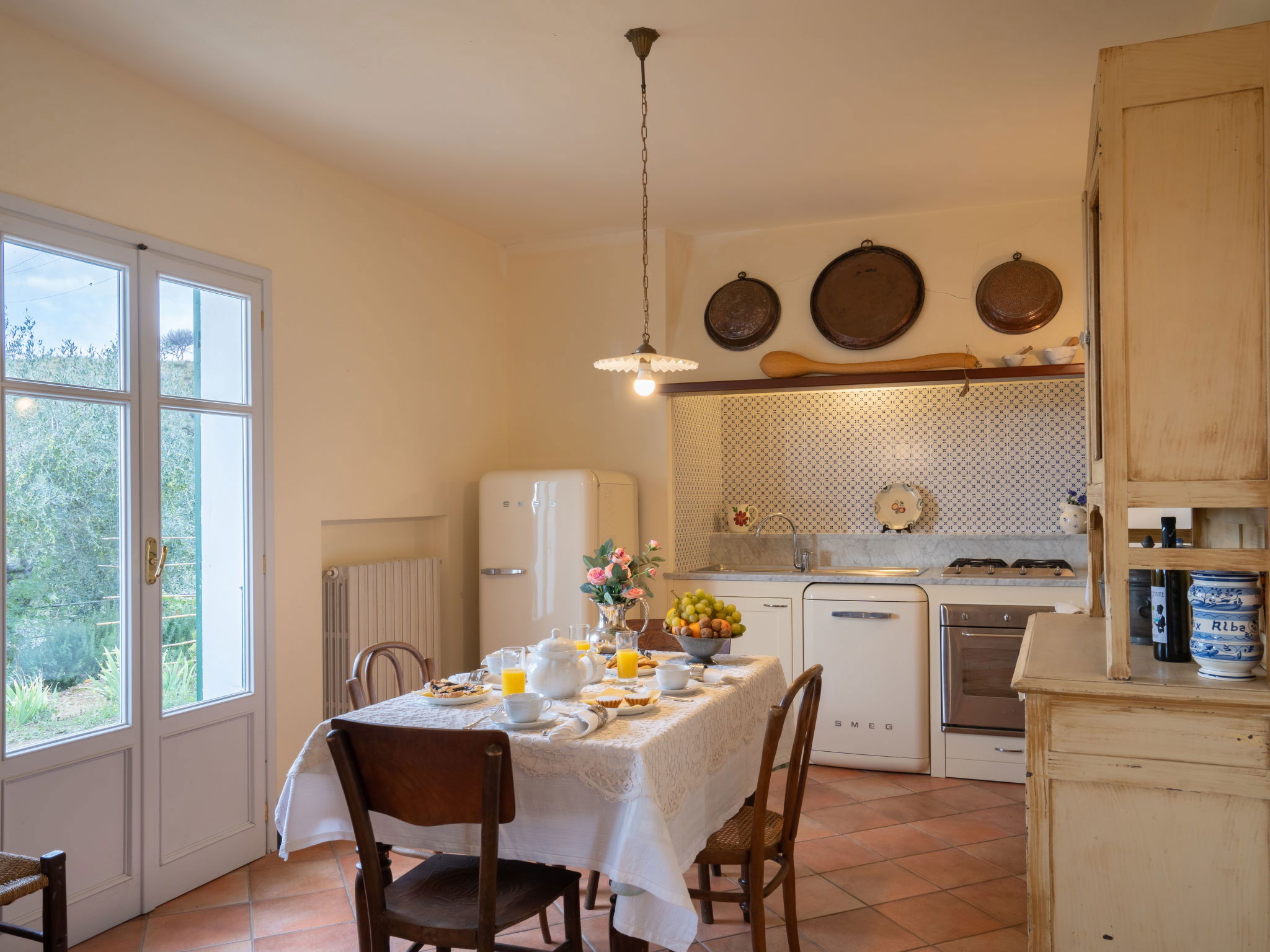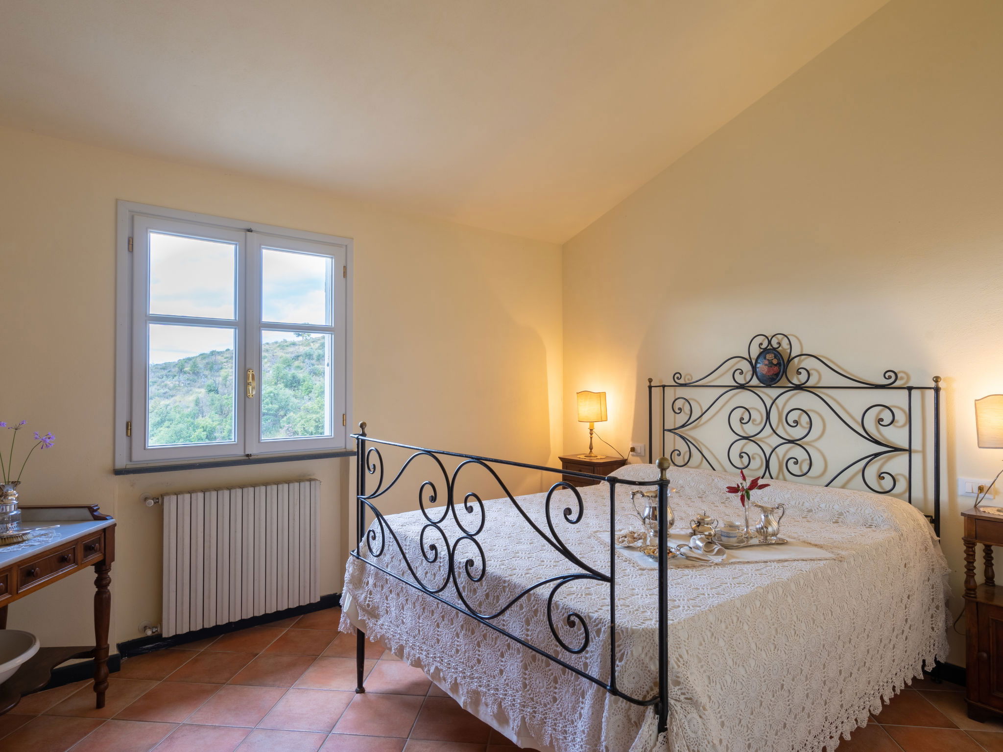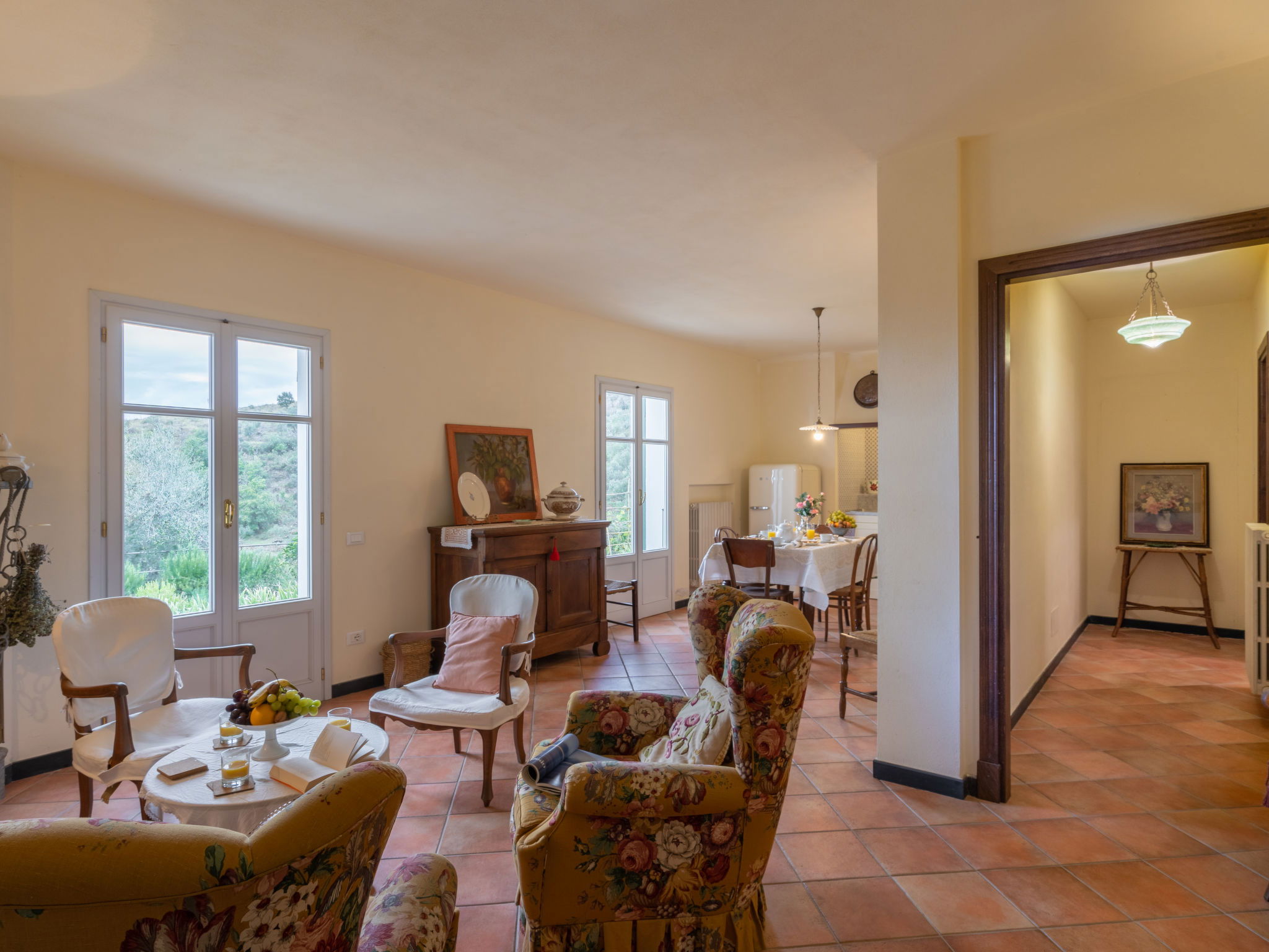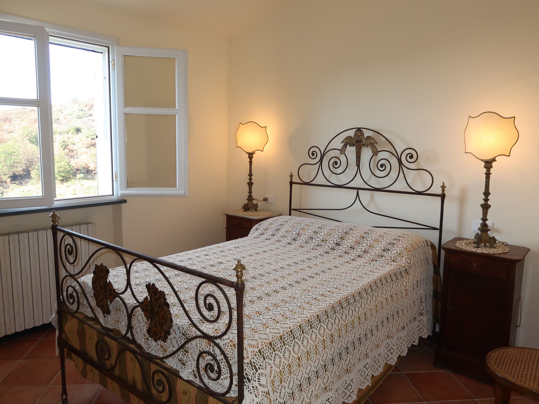 "Il Terebinto ", 3-room house 100 m2 on 2 levels. Beautiful and cosy furnishings: open large living room with open-hearth fireplace (only for decoration). Exit to the garden. Open kitchen (oven, dishwasher, 4 gas rings, toaster, kettle, electric coffee machine) with dining table. Exit to the garden. Shower/WC. Upper floor: 1 room with 1 french bed (150 cm). 1 room with 1 french bed (140 cm), 1 sleeping facility. Bath/WC. No heating option. Terrace 40 m2, patio. Terrace furniture, barbecue (portable), deck chairs (2). Very beautiful panoramic view of the valley, the countryside, the forest and the ocean. Facilities: washing machine, iron, children's high chair, baby cot, hair dryer. Internet (WiFi, free). Please note: non-smoking house. Maximum 1 pet/ dog allowed. IT008031B5HEQ9RKHH