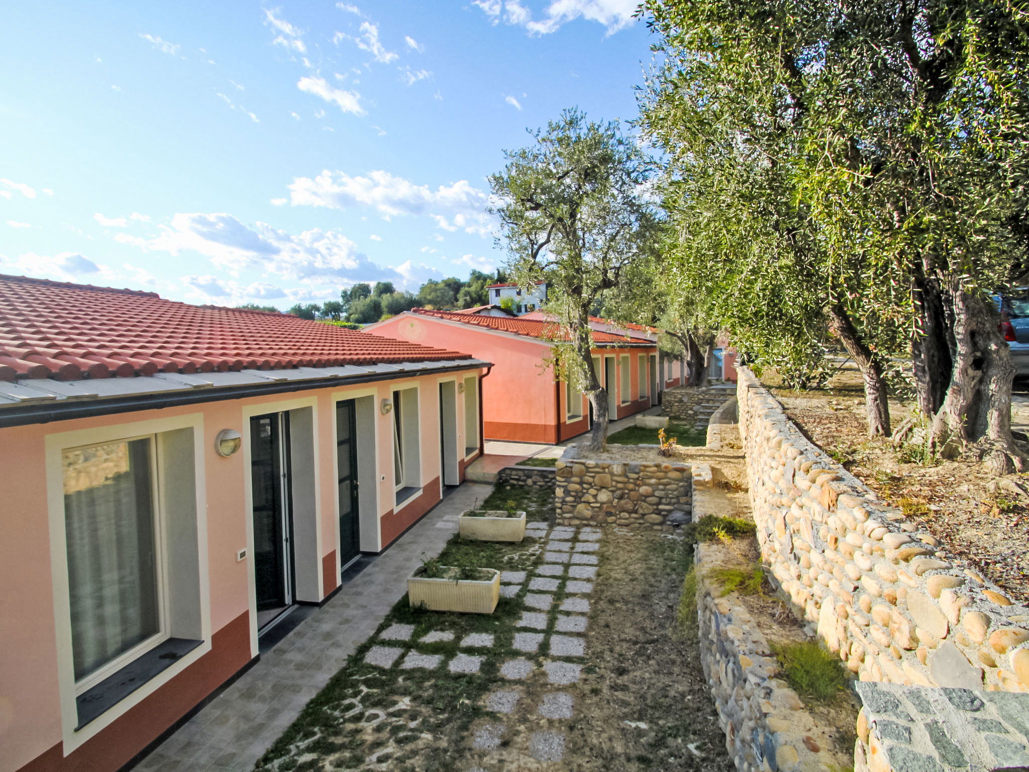 Large, child friendly holiday development "Borgoverde", surrounded by trees. 32 apartments in the property. In the district of Porto Maurizio, 1 km from the centre, 3.5 km from the centre of Imperia Oneglia, in a quiet, elevated position, 1.2 km from the sea, 1.2 km from the beach. For shared use: swimming pool (14 x 7 m, seasonal availability: 27.May. - 15.Sep. pool opening hours: 09:00-19:00). Children's pool, outdoor shower. In the complex: reception, bar, internet access, solarium. Room cleaning on request (extra). Parking on the premises. Grocery, restaurant 600 m, bus stop 850 m, railway station "Imperia" 2.7 km, sandy beach 1.2 km, shingle beach "Prino" 2 km. Marina 1.1 km. Nearby attractions: San Lorenzo al Mare 7 km, Sanremo 30 km. Please note: car recommended. The photograph shows a typical example.