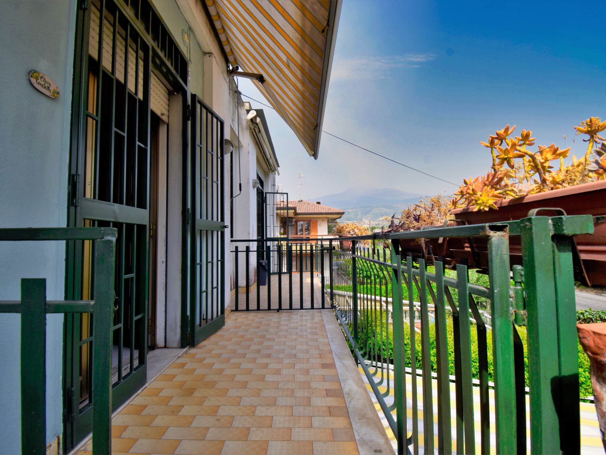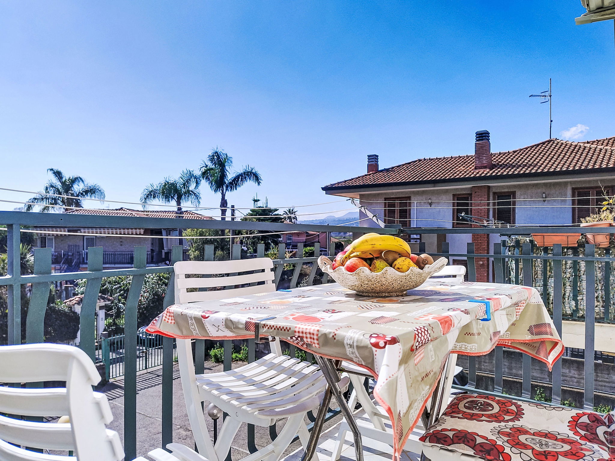 Small apartment block. In the hamlet Fondachello 500 m from the centre of Mascali, in a sunny position, 400 m from the sea, 400 m from the beach, on a main road. For shared use: small garden. Outdoor shower. Private: barbecue, parking on the premises. Grocery 200 m, supermarket, restaurant, bar 400 m, bus stop 2 km, shingle beach "Fondachello" 400 m. Nearby attractions: Giardini Naxos 13 km, Punto escursioni per l'Etna 14 km, Taormina 25 km, Parco Geologico/Botanico Gole Alcantara 20 km, Catania 33 km, Siracusa 99 km. Please note: car recommended. On request: airport transfer to the holiday accommodation.