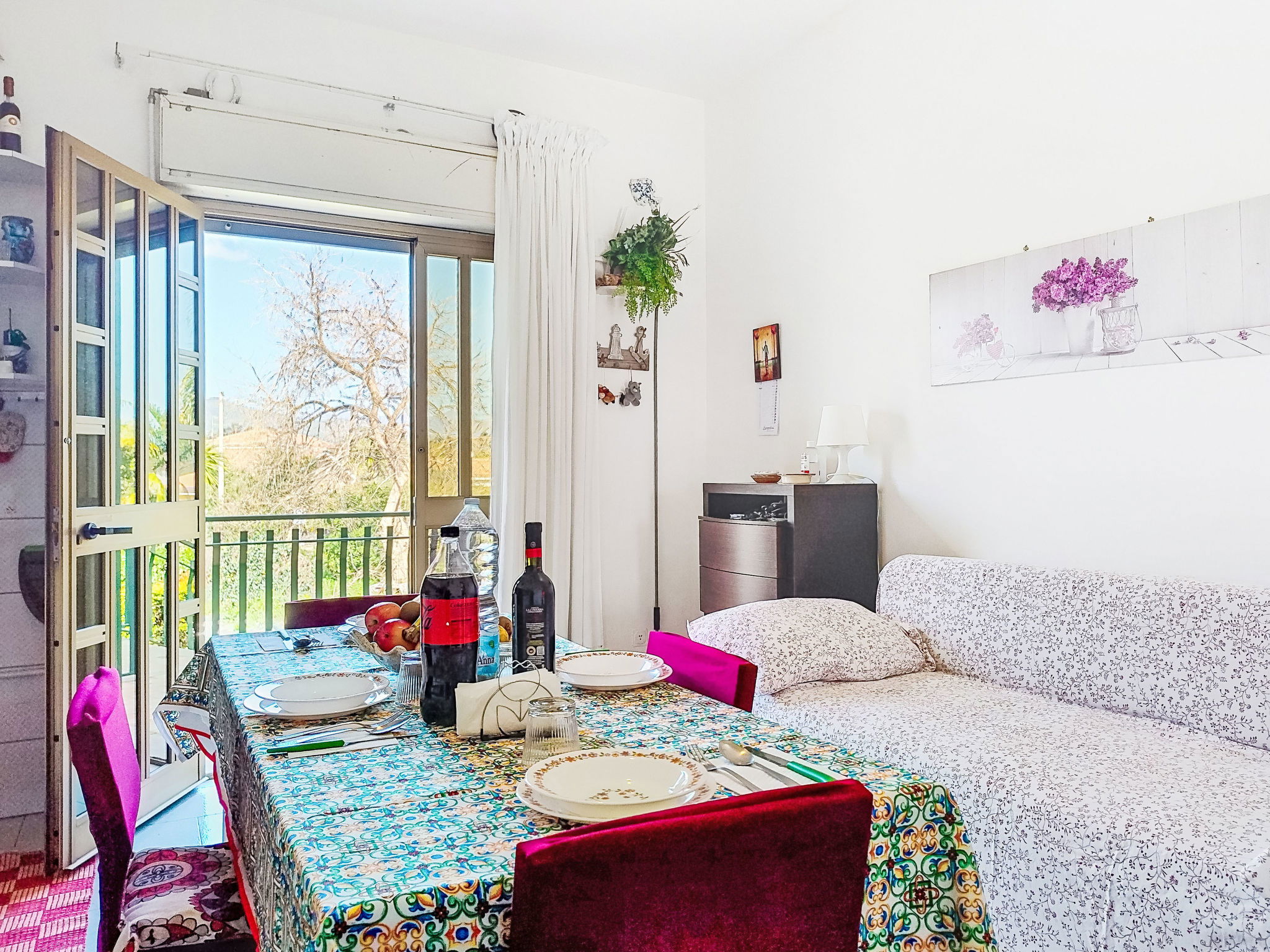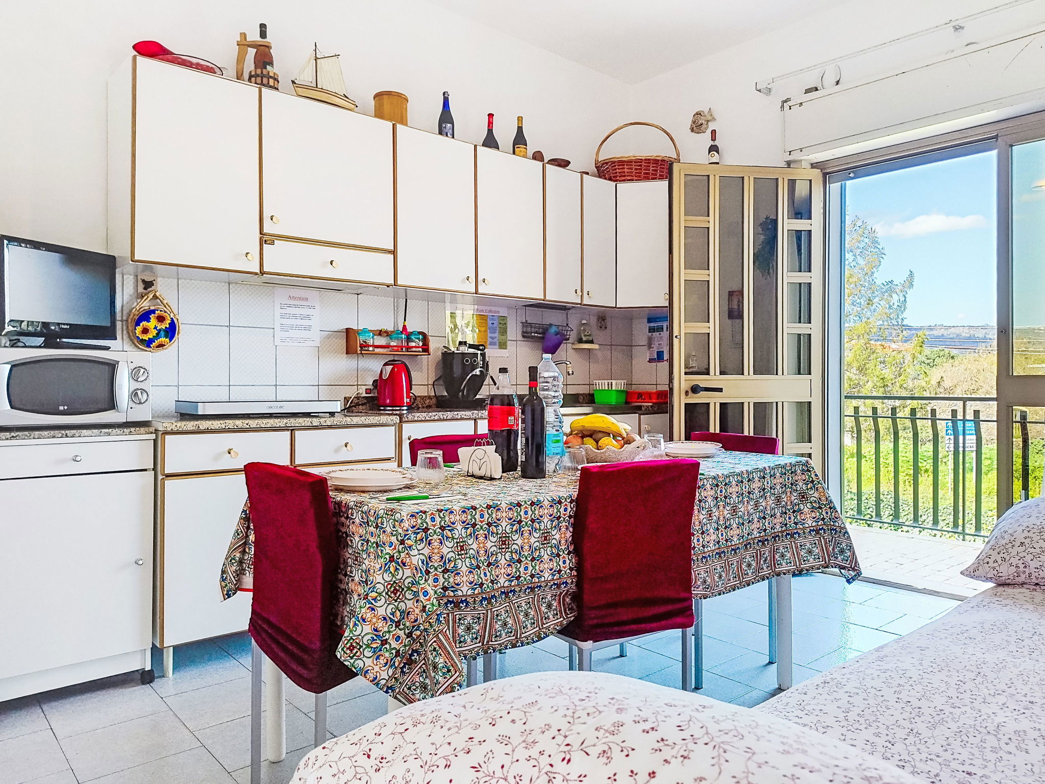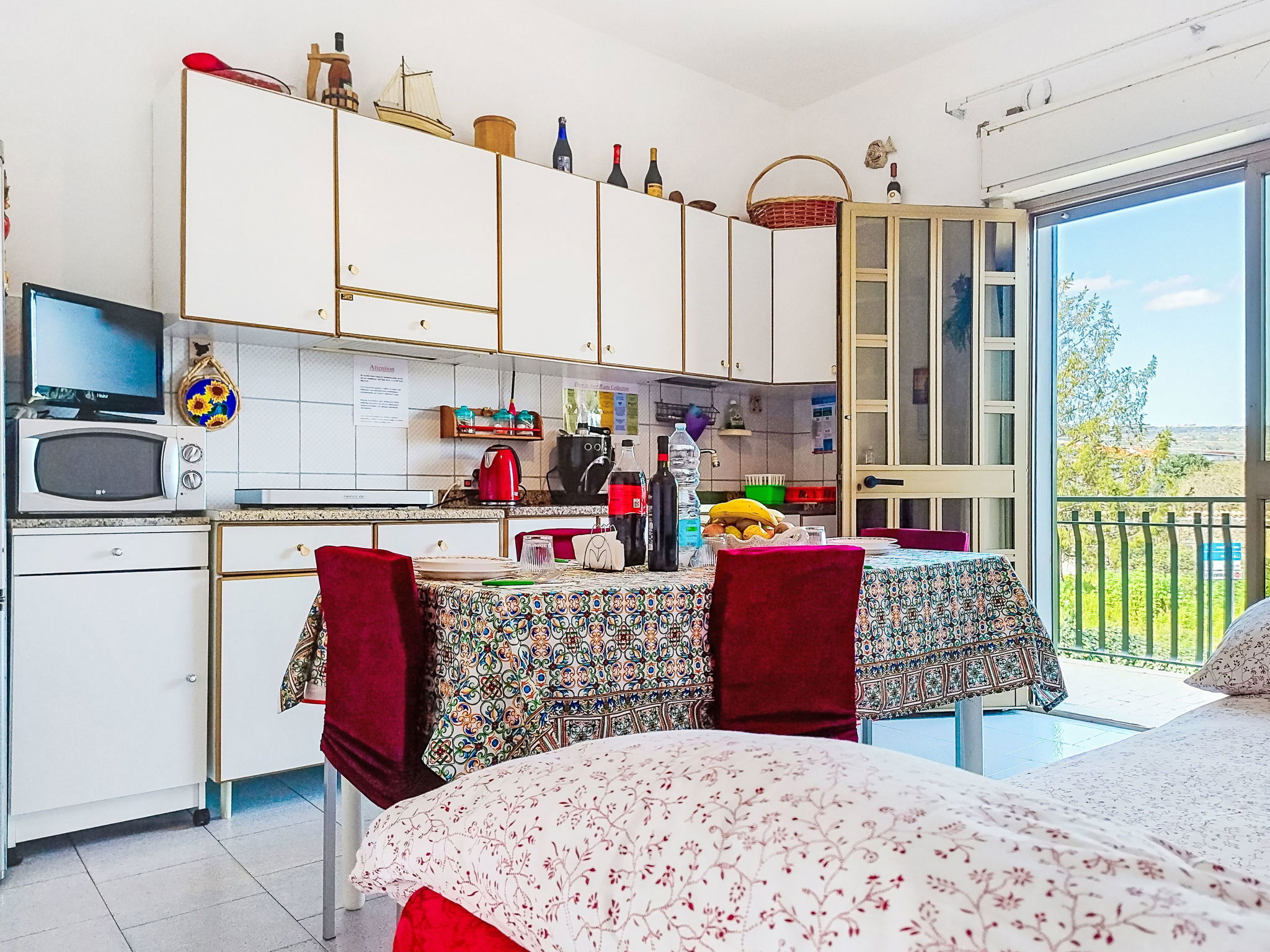 "Clara", 2-room apartment 45 m2 on 1st floor. Renovated in 2022, practical and comfortable furnishings: living/dining room with 1 double bed and TV (flat screen). Exit to the balcony. 1 double bedroom with TV (flat screen), air conditioning and forced-air heating. Exit to the balcony. Kitchenette (2 induction hot plates, toaster, kettle, electric coffee machine, combination microwave) with fan. Shower/bidet/WC. Air-conditioning, forced-air heating, boiler (50 litres). Heating available only from 01.12. to 31.03. Balcony 5 m2, balcony 7 m2. Balcony furniture. Panoramic view of. Facilities: washing machine, iron, mosquito net, children's high chair, baby cot for up to 2 year olds (extra), hair dryer. Internet (WiFi, free). Parking (fenced 1 car). Please note: maximum 1 pet/ dog allowed. Smoke alarm, no lift. IT087023C22UX8A4LA