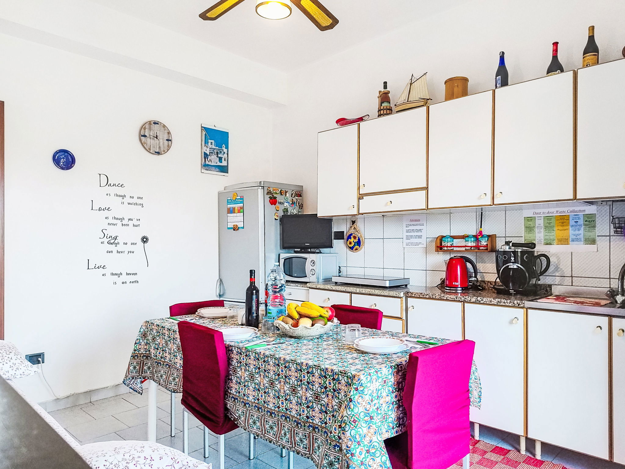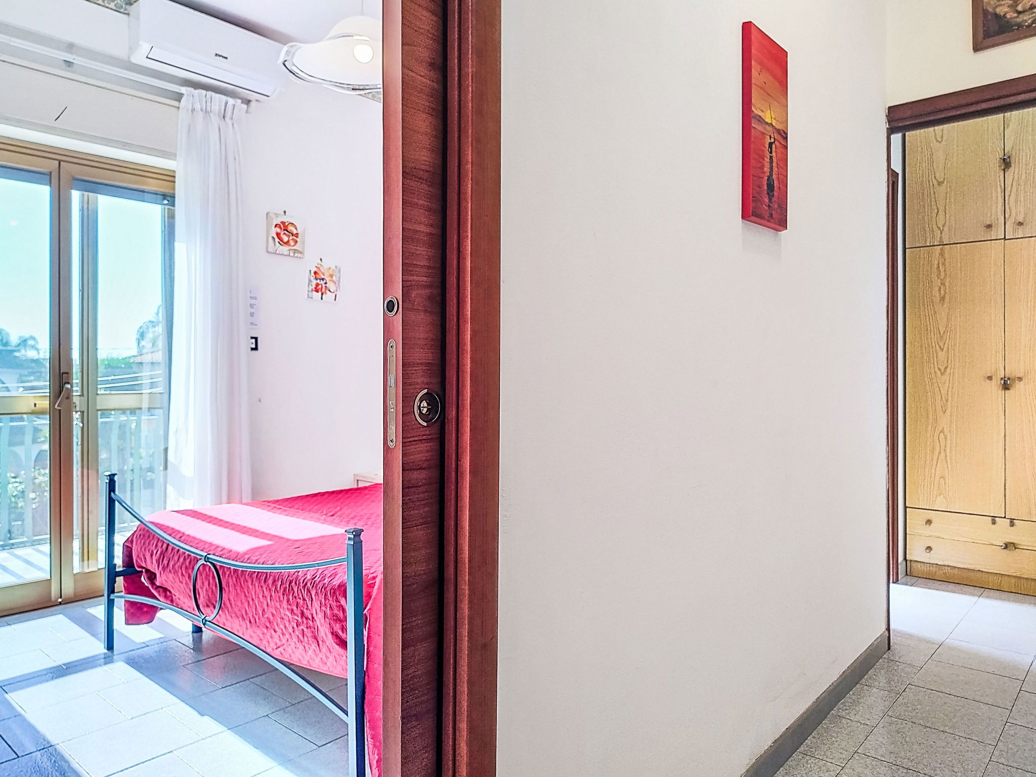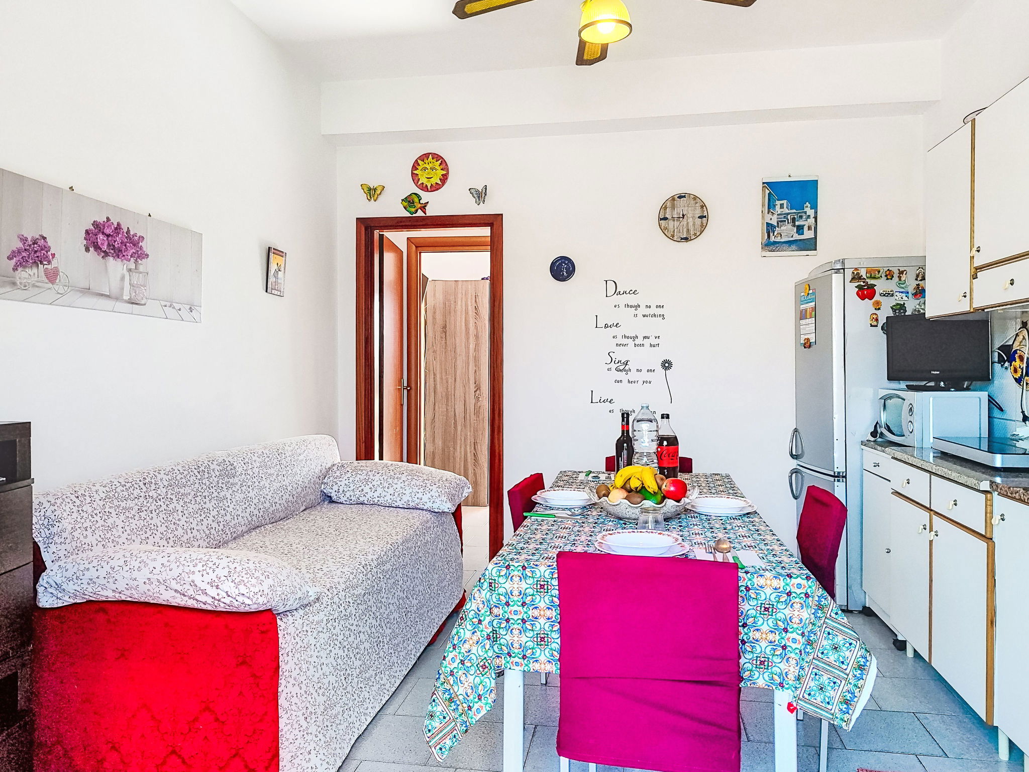 "Clara", 2-room apartment 45 m2 on 1st floor. Renovated in 2022, practical and comfortable furnishings: living/dining room with 1 double bed and TV (flat screen). Exit to the balcony. 1 double bedroom with TV (flat screen), air conditioning and forced-air heating. Exit to the balcony. Kitchenette (2 induction hot plates, toaster, kettle, electric coffee machine, combination microwave) with fan. Shower/bidet/WC. Air-conditioning, forced-air heating, boiler (50 litres). Heating available only from 01.12. to 31.03. Balcony 5 m2, balcony 7 m2. Balcony furniture. Panoramic view of. Facilities: washing machine, iron, mosquito net, children's high chair, baby cot for up to 2 year olds (extra), hair dryer. Internet (WiFi, free). Parking (fenced 1 car). Please note: maximum 1 pet/ dog allowed. Smoke alarm, no lift. IT087023C22UX8A4LA