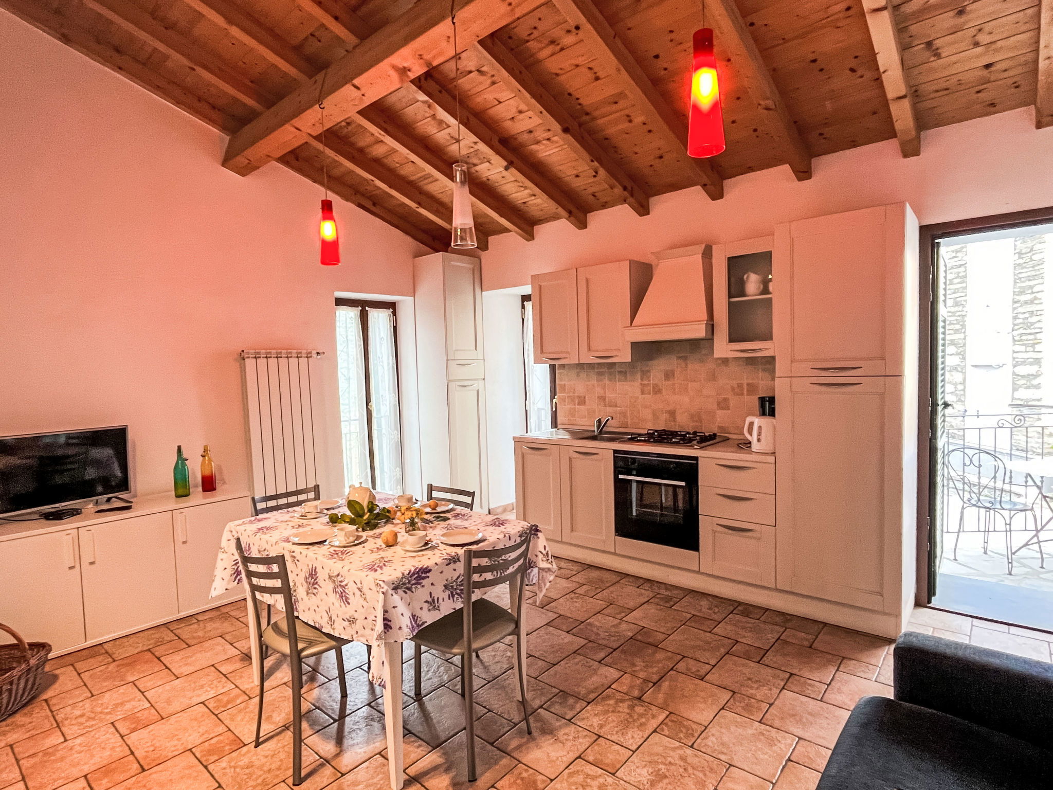 "Ca' da Ciassa ", 2-room house 45 m2. Stylish and cosy furnishings: living/sleeping room with 1 double sofabed (125 cm), dining table and satellite TV. Exit to the balcony. 1 room with 1 french bed (160 cm), shower/WC. Open kitchen (oven, 4 gas rings, toaster, kettle, freezer, electric coffee machine). Gas heating. Heating available only from 05.10. to 02.05. Natural stone floors. Small balcony. Balcony furniture. Beautiful view of the resort. Facilities: washing machine, baby cot. Internet (WiFi, free). Please note: maximum 2 pets/ dogs allowed. Private entrance, smoke alarm, fire extinguisher. IT008047B588IMG3Z6