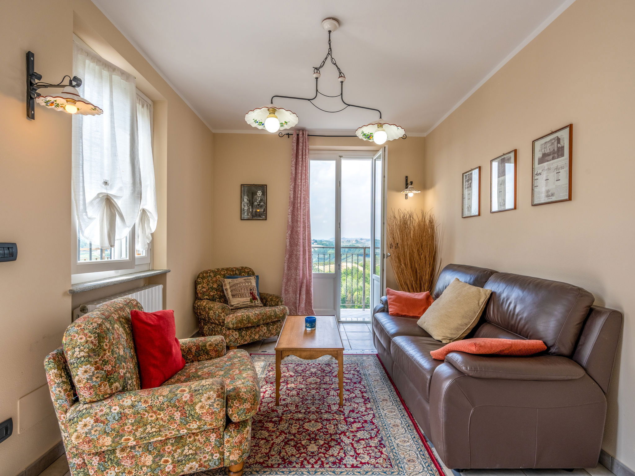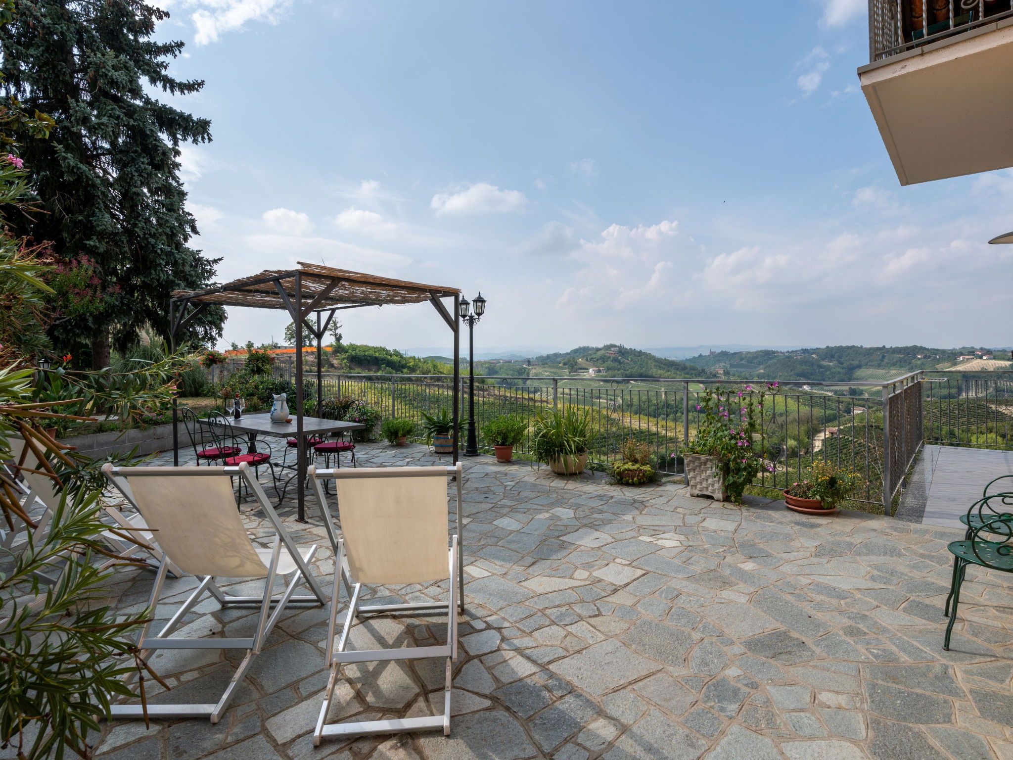 On a vinyard "Agriturismo Colle di San Michele", surrounded by vineyards. 2 apartments in the residence. 800 m from the centre of Vinchio, 3 km from the centre of Mombercelli, 23 km from the centre of Asti, on a slope, in the countryside. For shared use: property with lawn, lawn for sunbathing, courtyard, swimming pool fenced (12 x 6 m, depth 140 cm, seasonal availability: 15.May. - 15.Sep. pool opening hours: 10:00-18:00). Outdoor shower, terrace. In the complex: restaurant, bar, breakfast room. Breakfast and half board possible on request (extra). Parking at the house on the premises. Shop 800 m, supermarket 7 km, bus stop "Vinchio" 1 km, railway station "Asti" 23 km. Please note: car recommended. Local sale of farm products.