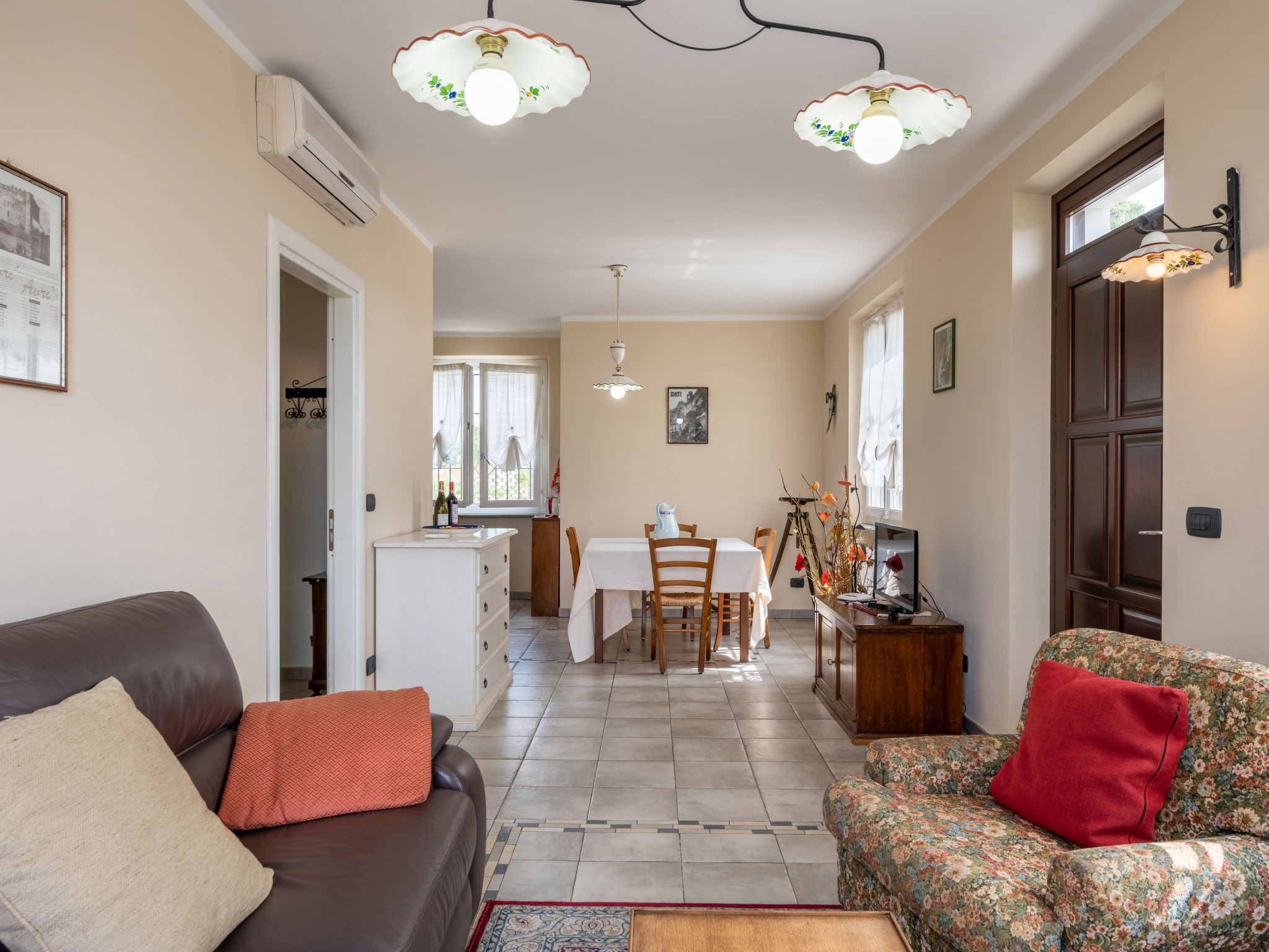 "Sole", 3-room apartment 80 m2, on the ground floor, south-west facing position. Rustic furnishings: living room with satellite TV. 1 room with 1 bed and 1 french bed (160 cm, length 190 cm), shower/WC. 1 room with 1 french bed (160 cm, length 190 cm), shower/WC. Open kitchen (oven, 4 gas rings, freezer) with dining table. Exit to the balcony. Heating, air-conditioning. Heating available only from 01.10. to 15.04. Natural stone floors. Large terrace 20 m2. Terrace furniture. Panoramic view of the countryside. Facilities: baby cot for up to 2 year olds. Internet (WiFi, free). Please note: maximum 2 pets/ dogs allowed. Private entrance. IT005120B5LYTZMKOS