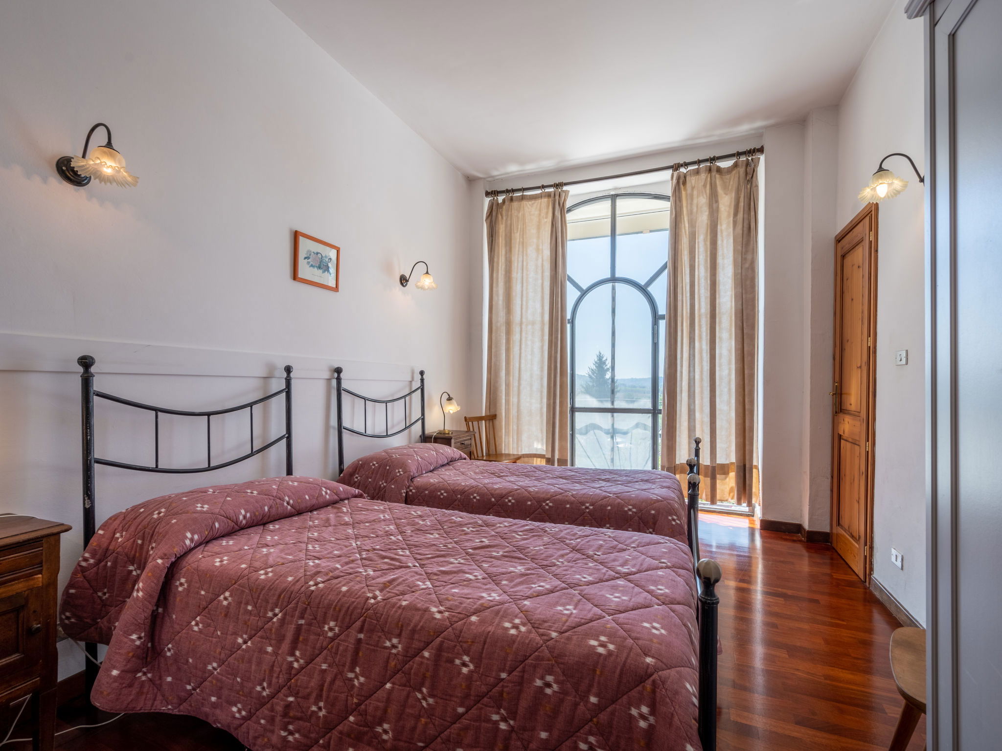 "Paolo", 4-room apartment 80 m2 on 1st floor. Rustic furnishings: 1 room with 2 beds, shower/WC and air conditioning. 1 room with 1 double bed and air conditioning. 1 room with 1 double bed and shower/bidet/WC. Small kitchen-/living room (dishwasher, 4 gas rings, toaster, kettle, microwave, freezer, electric coffee machine) with dining table, TV can be hired. Shower/WC. Heating, air-conditioning. Heating available only from 10.10. to 30.04. Wooden floors. Terrace 40 m2. Terrace furniture, barbecue, deck chairs (4). Panoramic view. Facilities: Internet (WiFi, free). Please note: one double bedroom is outside the apartment. Non-smokers only. Maximum 1 pet/ dog allowed. Private entrance. When there are less than the maximum number of guests staying at the property, not all of the bedrooms will be available for use. IT005006B5HEGCMXWH