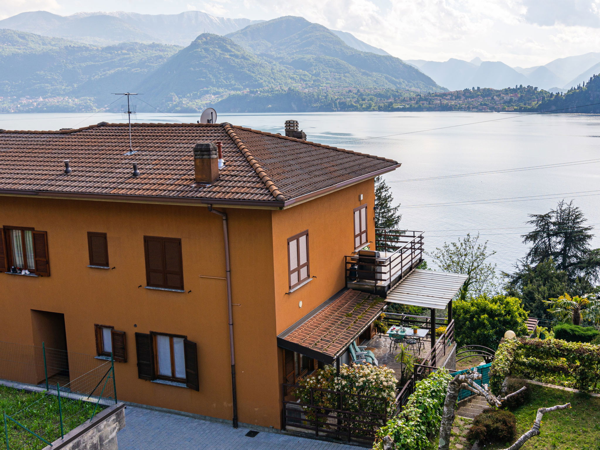 "Stefania ", 2-room apartment 55 m2, on the ground floor. Renovated in 2015, beautiful furnishings: living/dining room with open-hearth fireplace (only for decoration), dining table, satellite TV and air conditioning. Exit to the terrace. 1 room with 1 french bed (160 cm), 1 folding bed. Open kitchen (oven, dishwasher, 4 gas rings, toaster, kettle, microwave, freezer, electric coffee machine). Shower/WC. Gas heating, air-conditioning. Terrace 20 m2 partly roofed. Terrace furniture, deck chairs (2), box-room. Marvellous panoramic view of the lake, the mountains and Bellagio. Facilities: washing machine, iron, children's high chair, baby cot for up to 2 year olds. Internet (WiFi, free). Please note: non-smokers only. Maximum 2 pets/ dogs allowed. Private entrance. IT097084C2XJVM4ZSQ