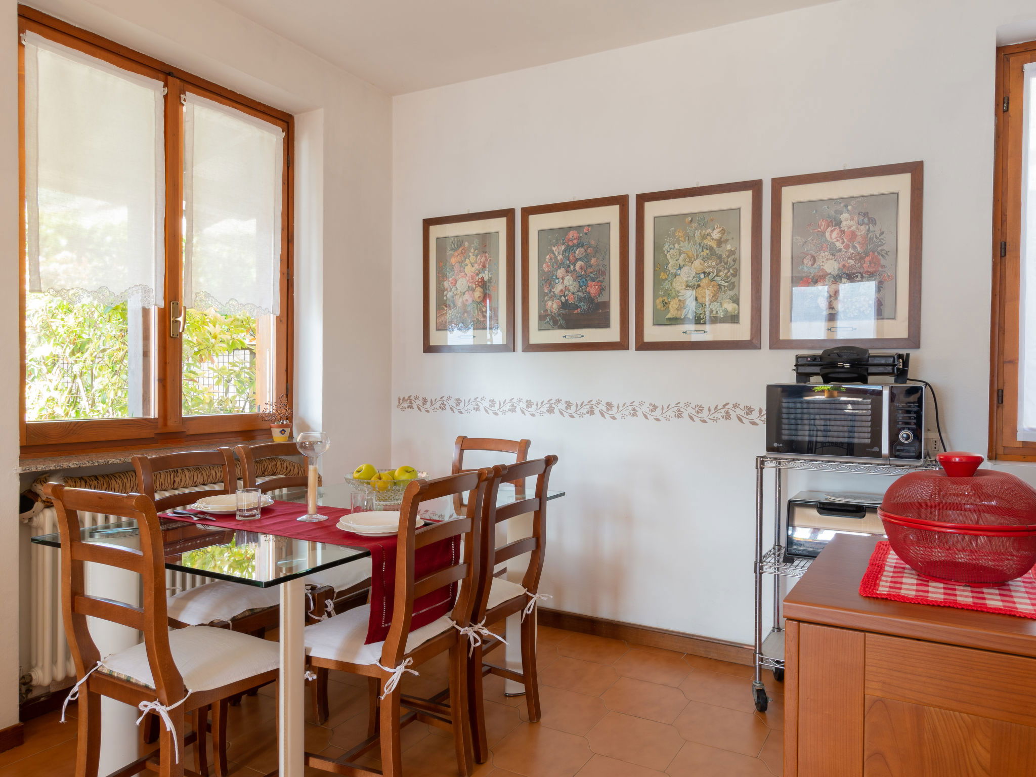 Apartment house. 7 apartments in the property. In the district of Pino 2.5 km from the centre of Varenna, 6.5 km from the centre of Bellano, 50 km from the centre of Como, on a slope, in the residential district, 1 km from the lake. Motor access to 100 m from the house. Footpath to the house. Public parking 100 m. Shop 2 km, supermarket 6.5 km, restaurant 500 m, bus stop "varenna" 3.3 km, railway station "Varenna" 3.5 km, pebble beach 2.5 km. Please note: Loading and unloading of baggage is possible at the holiday house. Railway line closeby.