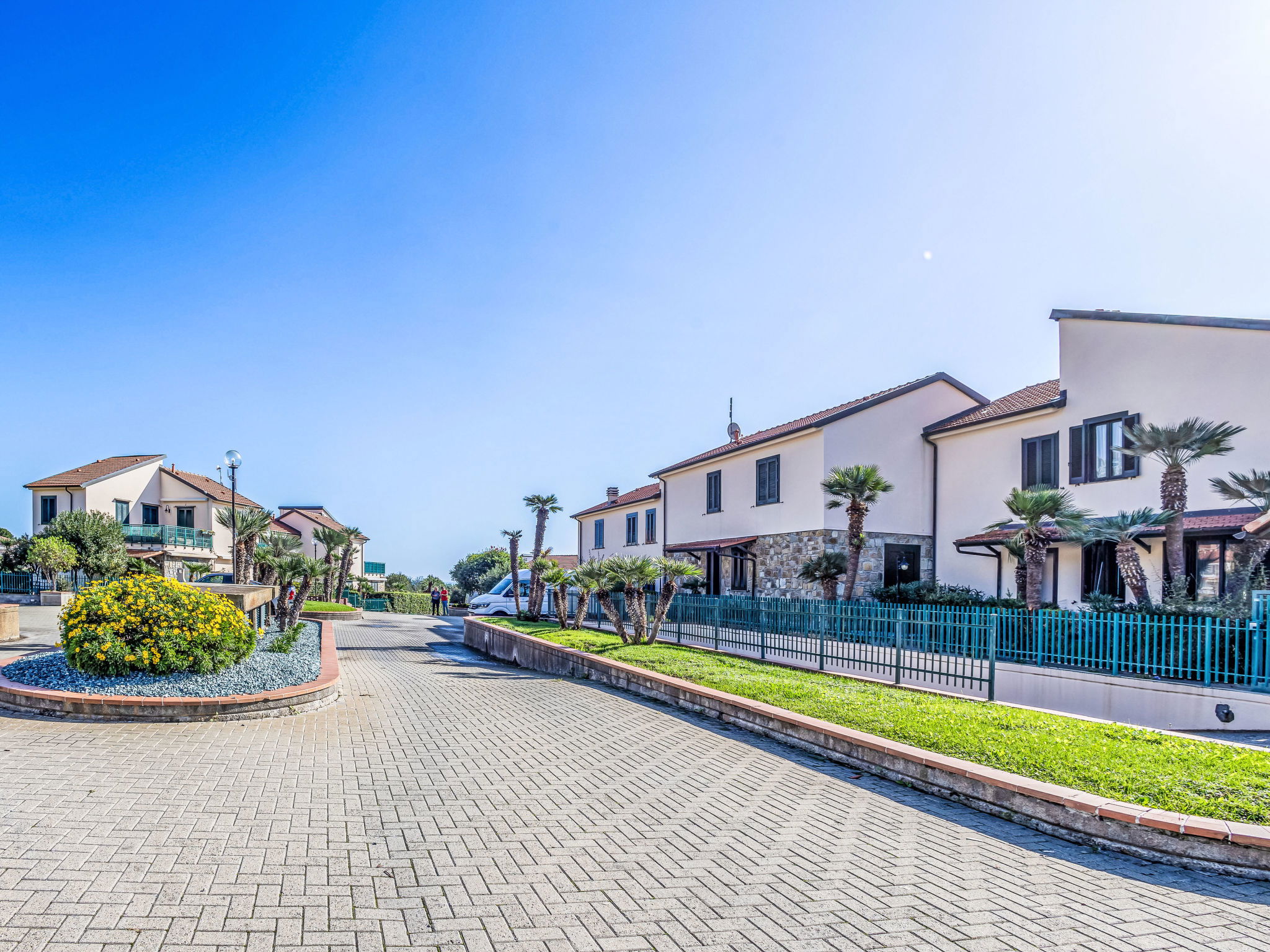 Child friendly, beautiful holiday village "Le Margherite". 40 apartments in the residence. In the district of Piani di Cipressa 2 km from the centre of San Lorenzo al Mare, 7 km from the centre of Imperia, 13 km from the centre of San Remo, in an elevated position in the residential district, 700 m from the sea. For shared use: swimming pool (20 x 10 m, depth 100 - 300 cm, seasonal availability: 17.Jun. - 15.Sep. pool opening hours: 09:30-13:00 and 15:00-19:00). WC in the pool area, outdoor shower, terrace, garden furniture, pool maintenance by the owner/gardener. In the complex: sun terrace. Parking on the premises. Central parking spaces. Grocery 2.7 km, supermarket 2.7 km, restaurant 2.7 km, bar 2.7 km, bakery 2 km, café 2.5 km, bicycle rental 2.7 km, bus stop 700 m, railway station "Imperia / Porto Maurizio" 7 km, sandy beach "San Lorenzo al Mare" 2.5 km, indoor swimming pool 7 km, bathing lake "Laghetti di Torre Papone" 7 km. Marina 3 km, cycle lane 700 m. Nearby attractions: Pista ciclabile lungo mare 700 m, Porto Maurizio Altstadt Parasio 7 km, Bussana Vecchio Erdbebendorf 23 km, Triora Hexendorf 40 km, Finale Ligure Mountainbike Paradies 55 km, Monaco 60 km.