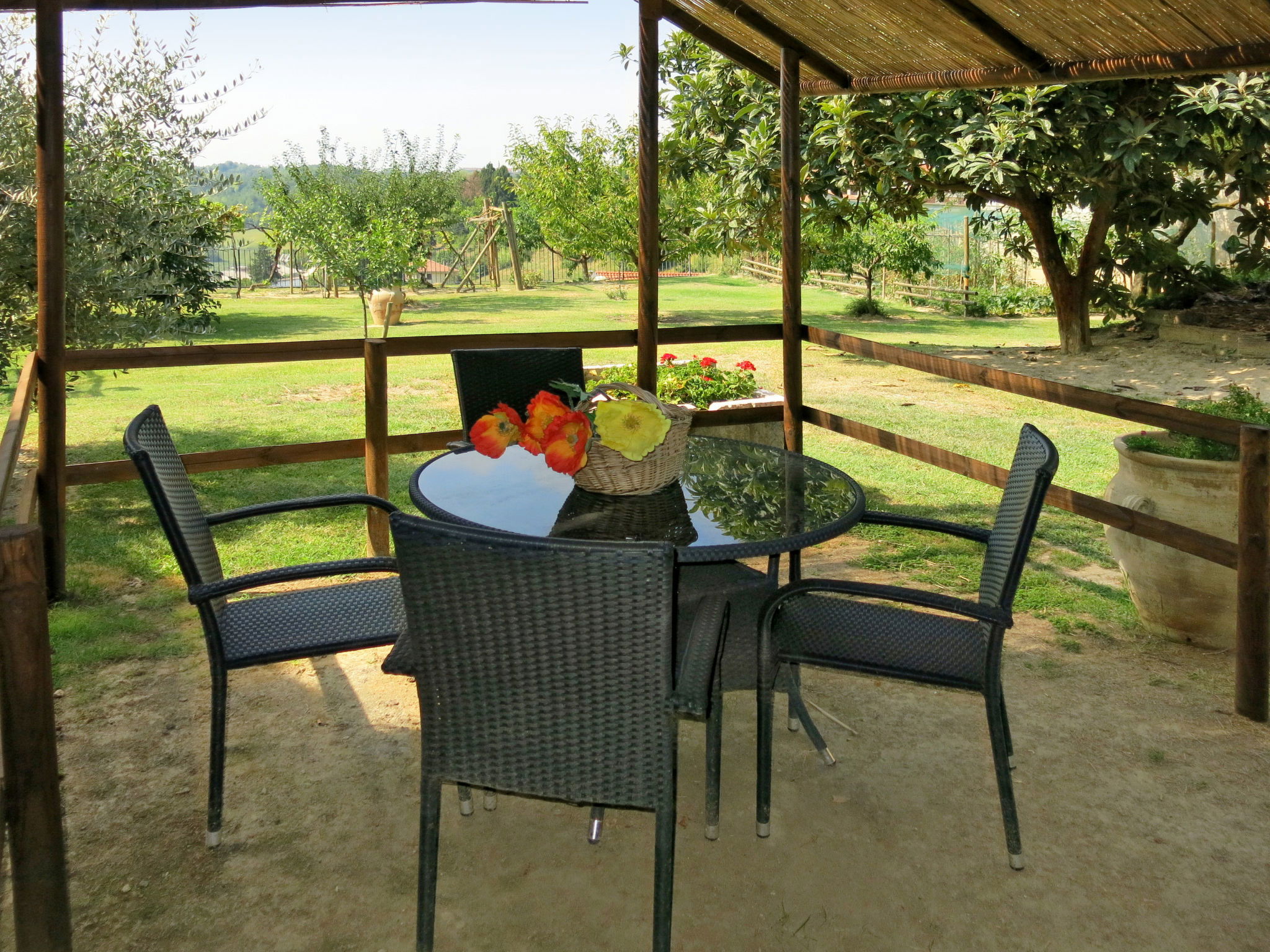 Very beautiful, cosy 2-family house "Il Ghiro", 300 m a.s.l.. In the centre of Montechiaro d'Asti 16 km from the centre of Asti. For shared use: property 1'500 m2 (fenced), garden with lawn and plants, parking at the house. Supermarket 100 m, shopping centre 3 km, restaurant 100 m, bus stop 400 m, railway station "Asti-Montechiaro" 2 km. Nearby attractions: Turin 65 km, Alba 40 km, Moncalvo 25 km. Please note: car recommended. The owner lives in the same residence.